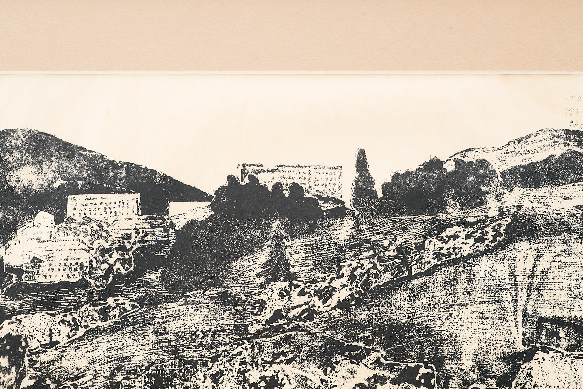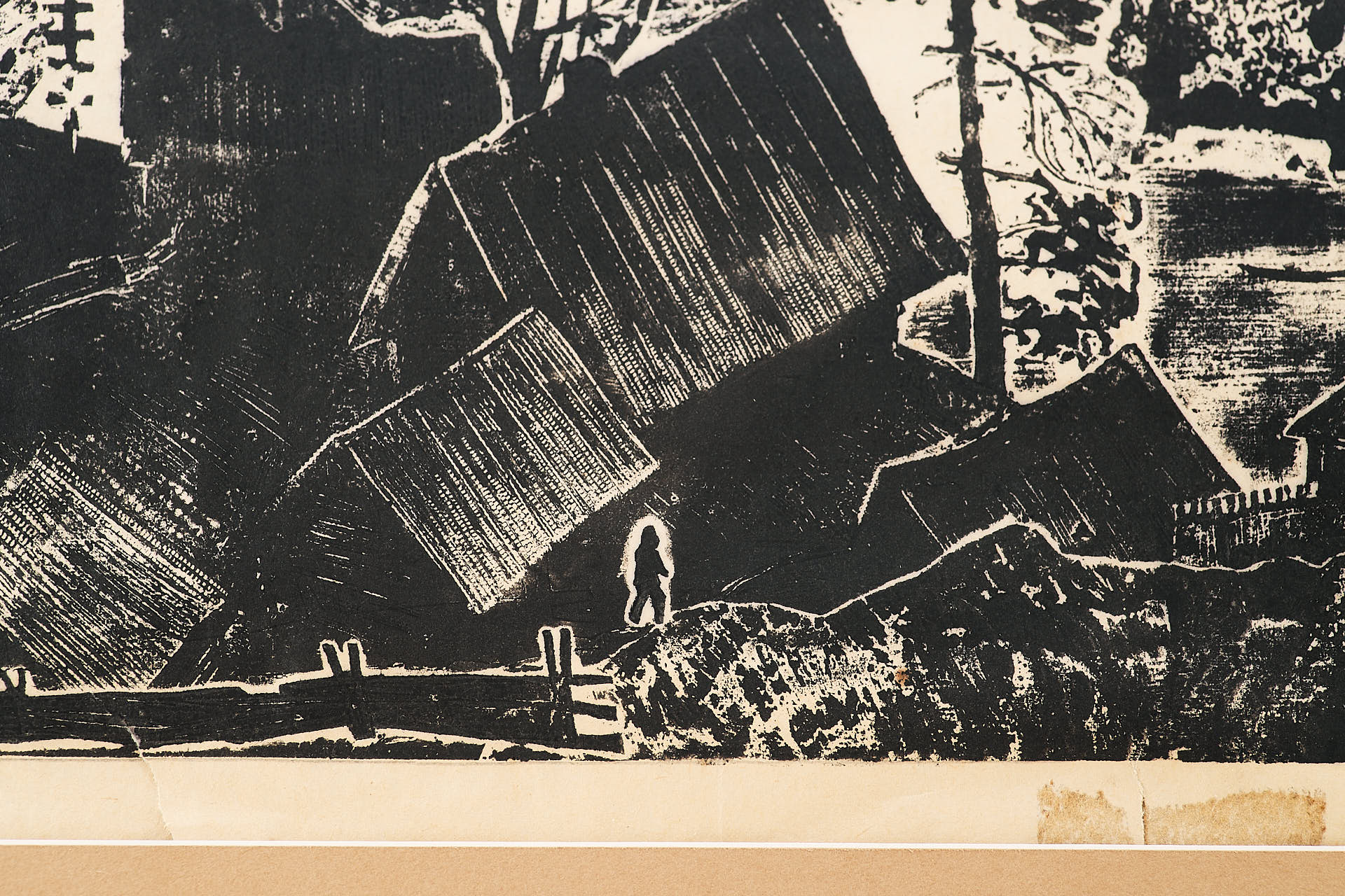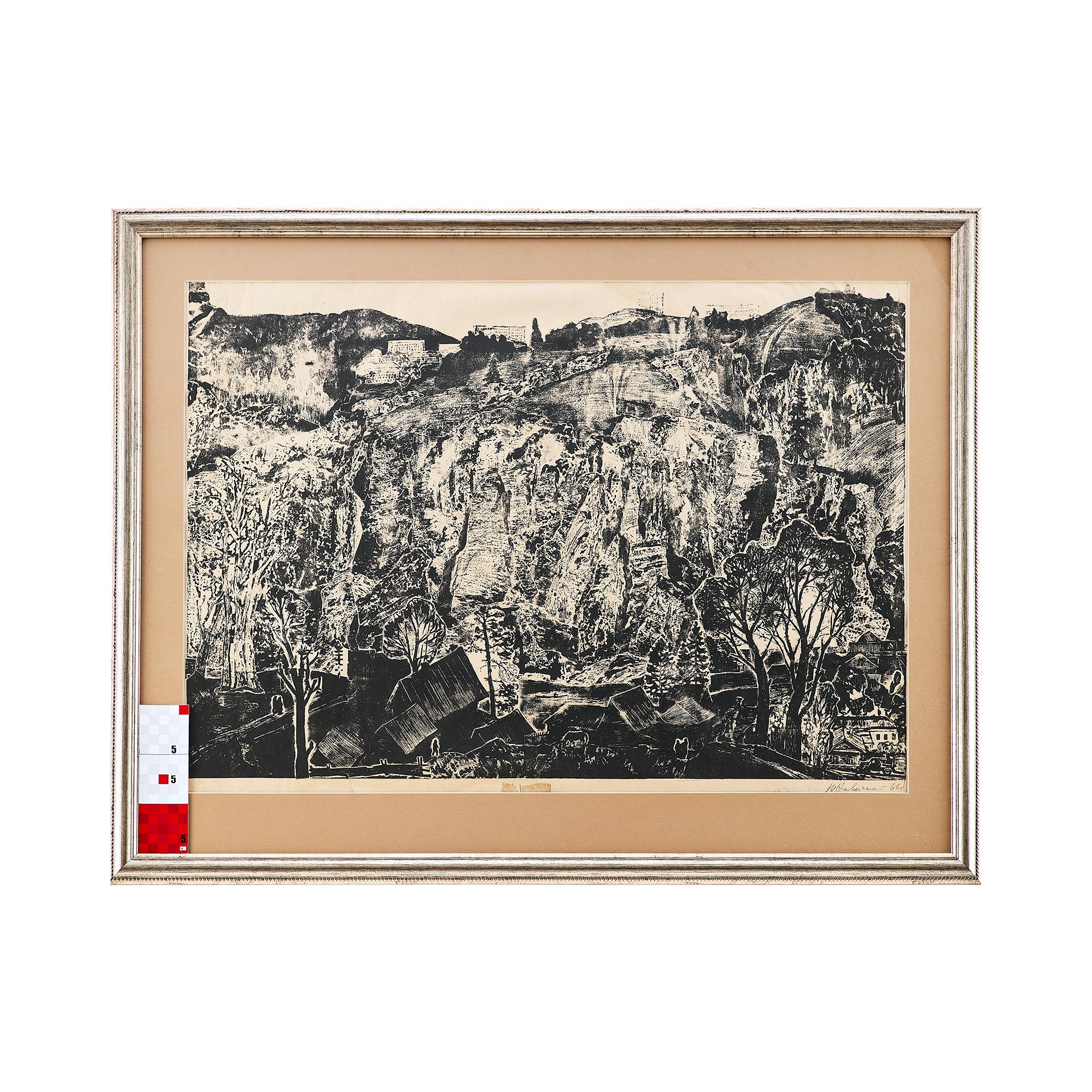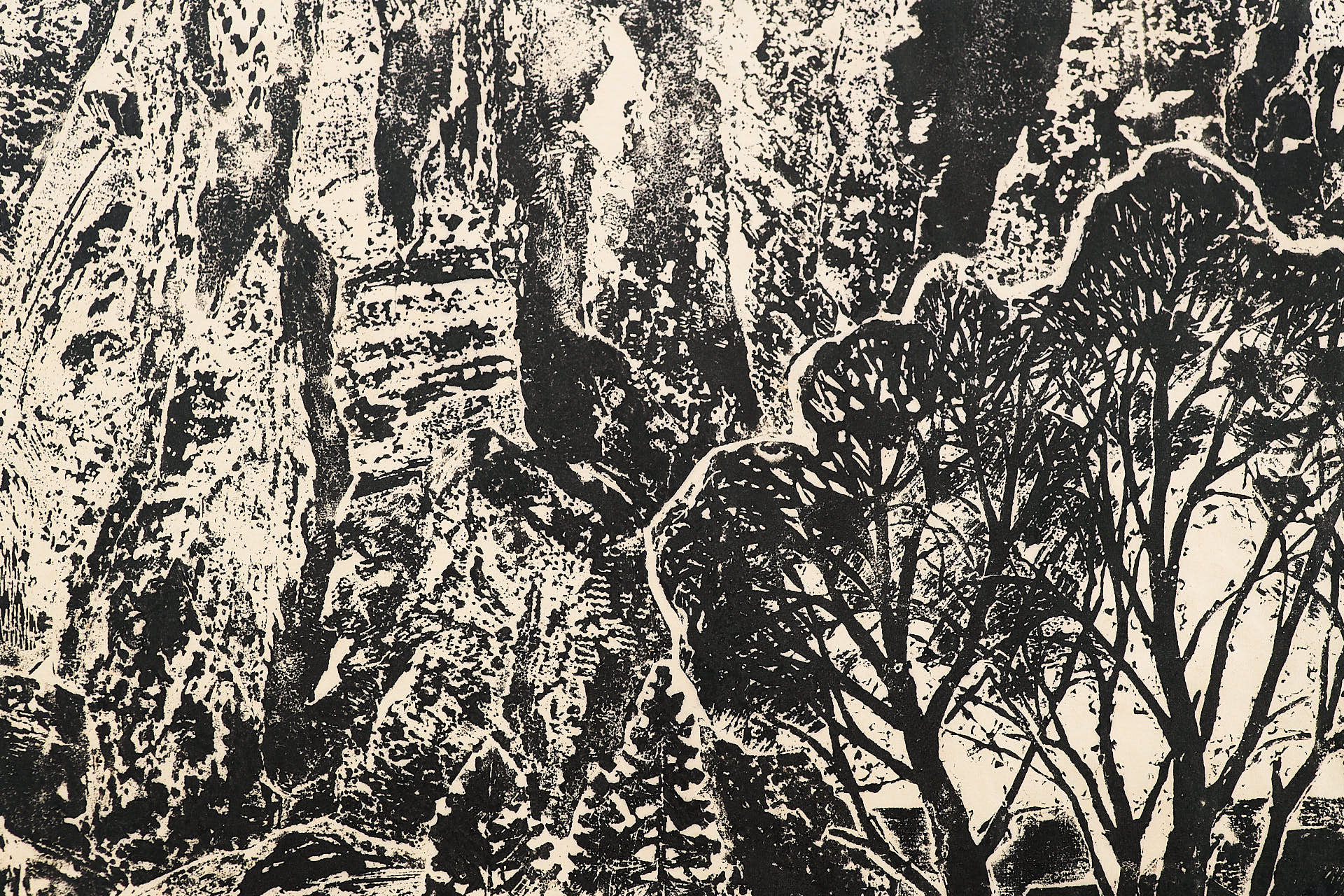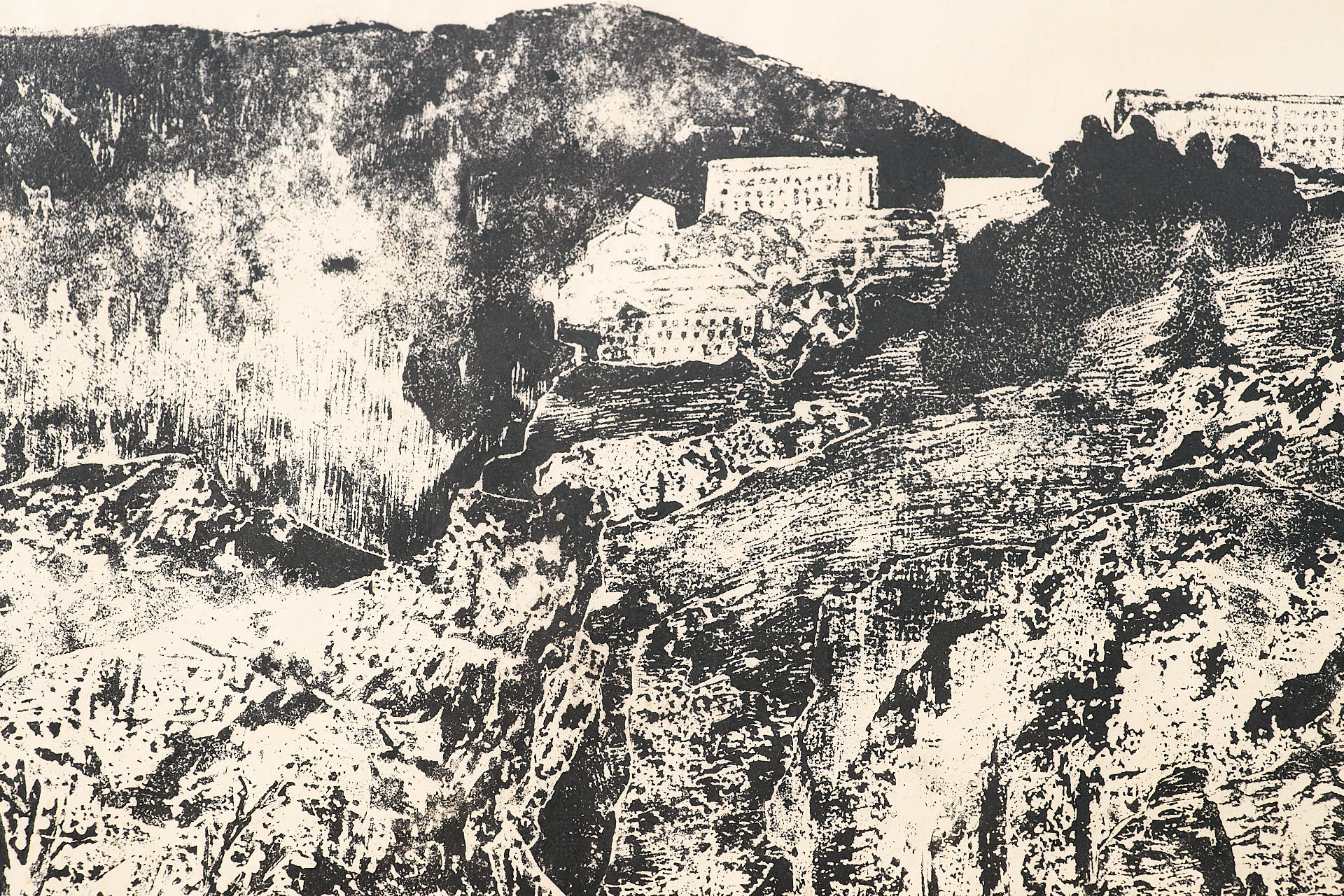 Новиченко В. А. линогравюра Скалистые вершины. Урал 1966 г. 52x72 см. 1966