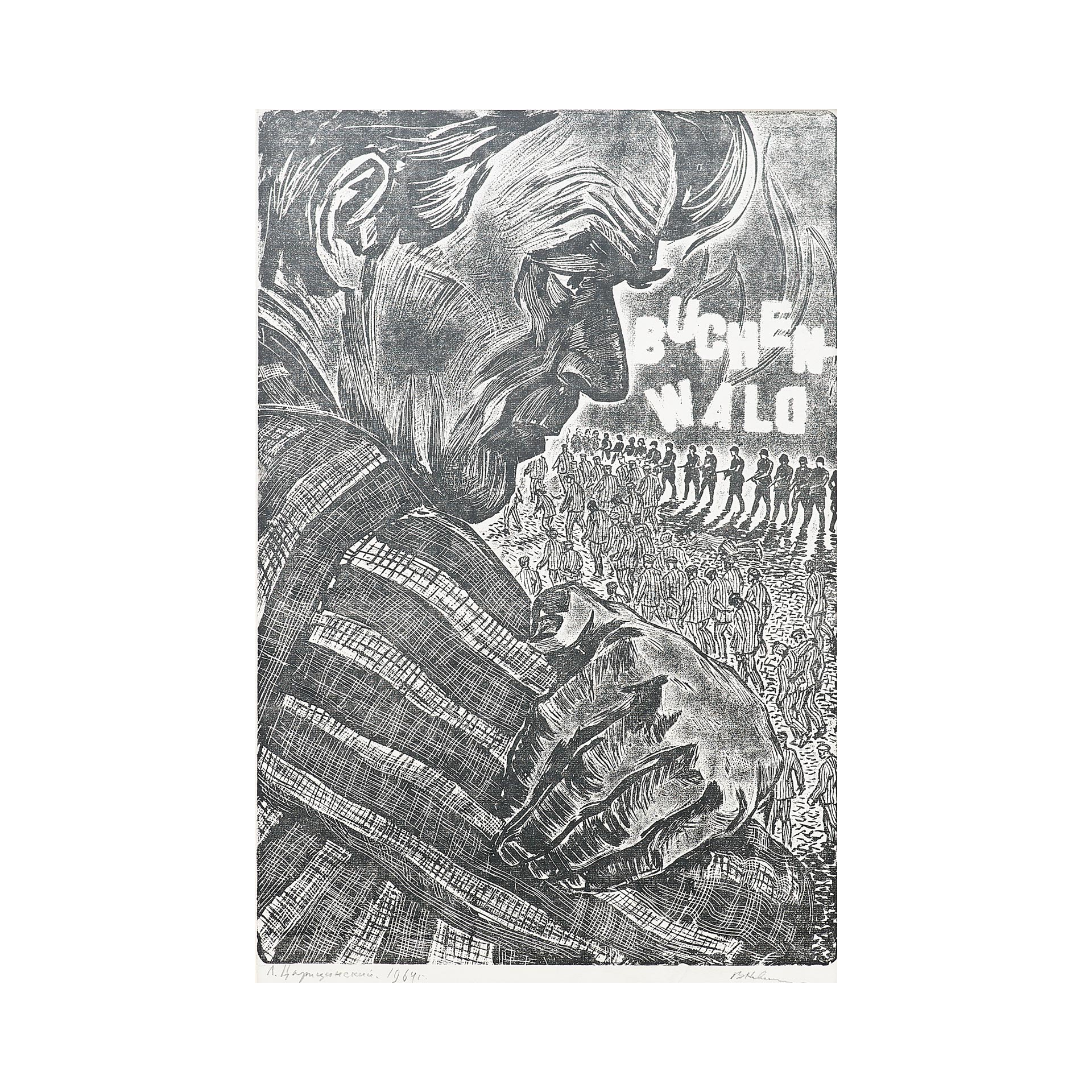 Новиченко В. А. офорт Л. Царицинский. Buchenwald 1964 г. 51x34,7 см. 1964