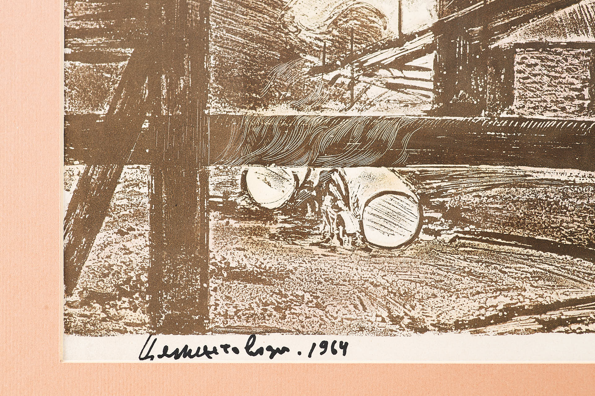 Новиченко В. А. офорт Цементоводы 1964 г. 42x55,5 см. 1964