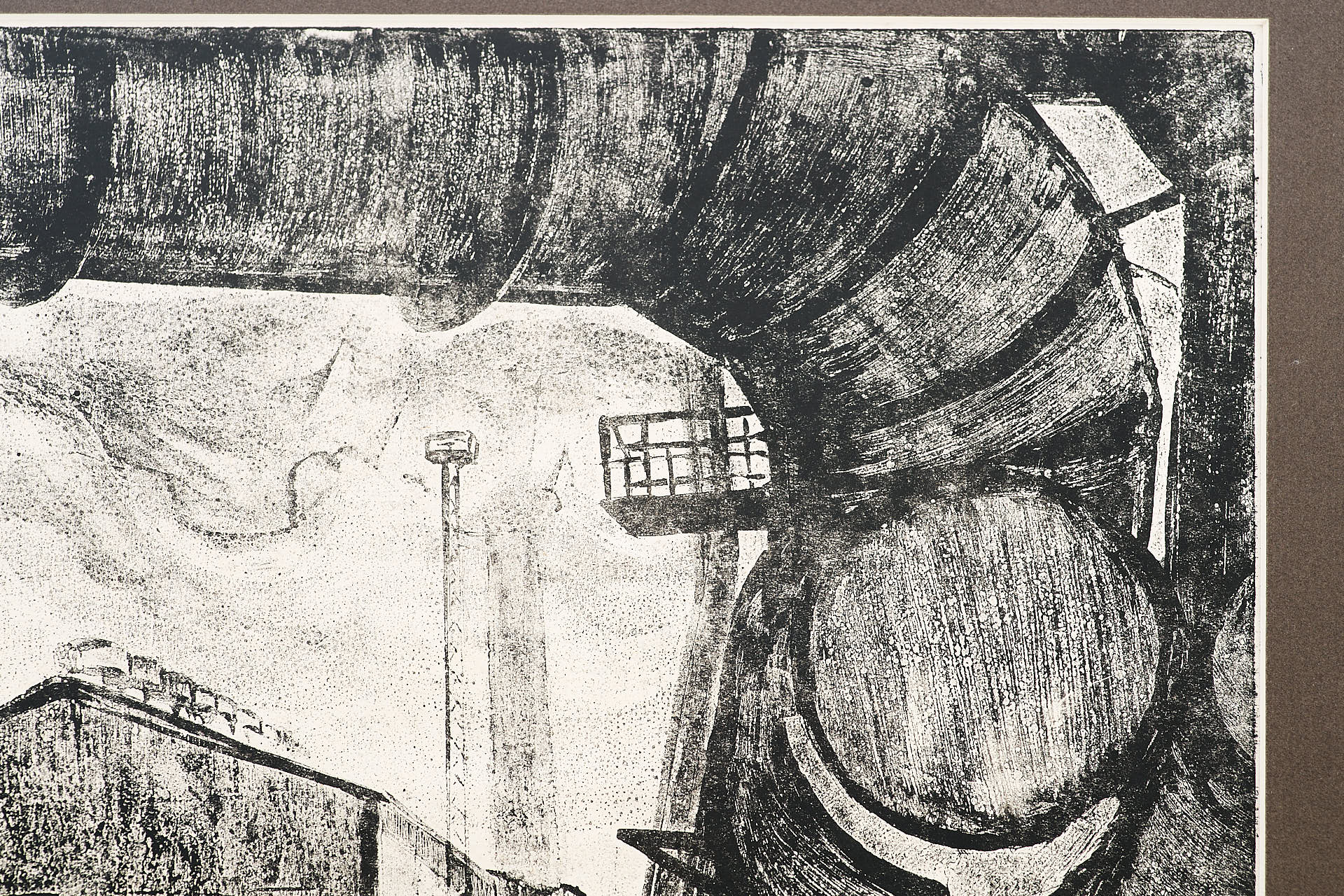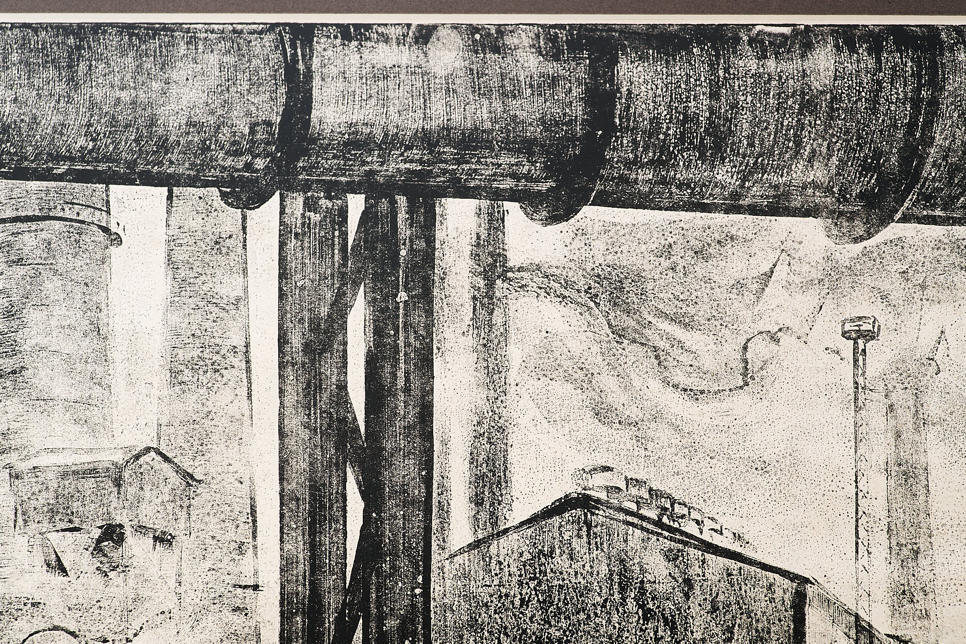 Работа выполнена в технике офорта с рельефной печатью, характерной для графики Новиченко 1960-х годов. Контраст между тяжёлыми индустриальными формами и свободной пластикой линий придаёт композиции живость и ритм. Чёткая геометрия конструкций уравновешивается игрой света и тени, что позволяет передать не только архитектурные особенности, но и атмосферу напряжённой, монотонной работы промышленной среды.