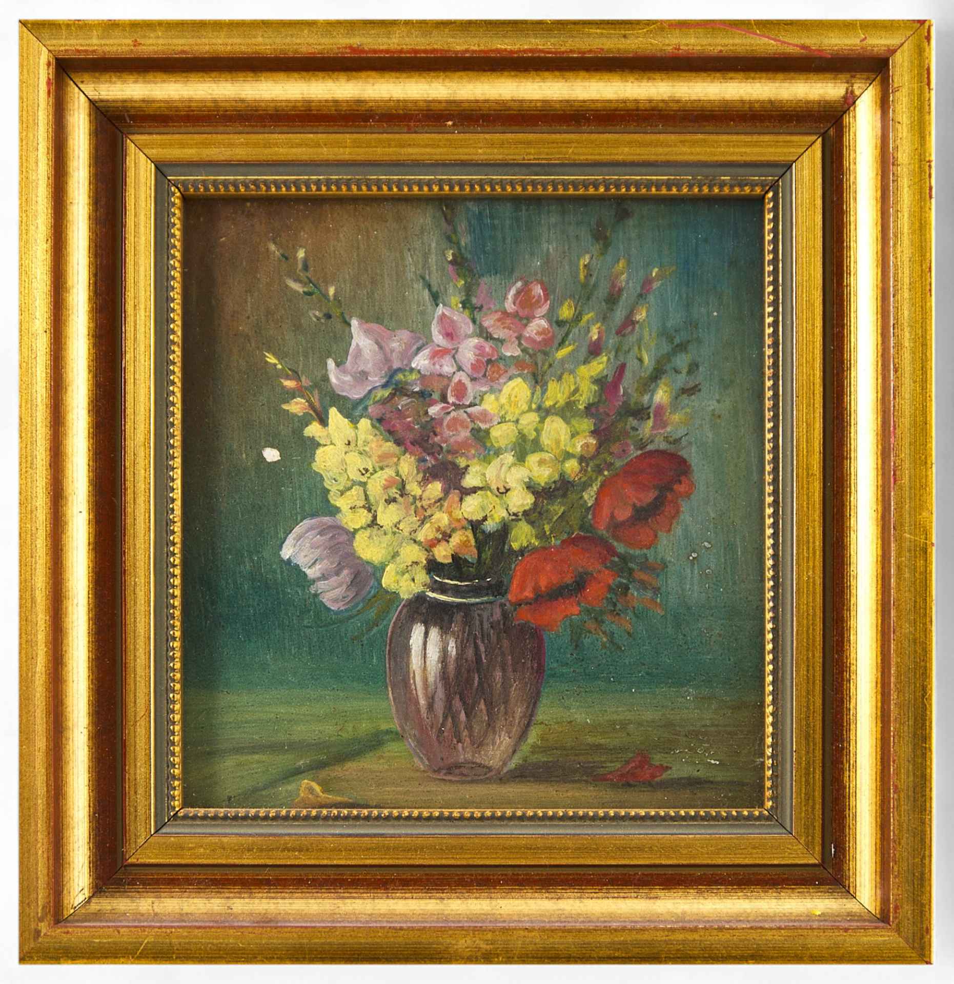 Н/Х натюрморт Букет цветов двп масло Европа втор. пол. ХХ в. 14,5х14 см. Середина XX века