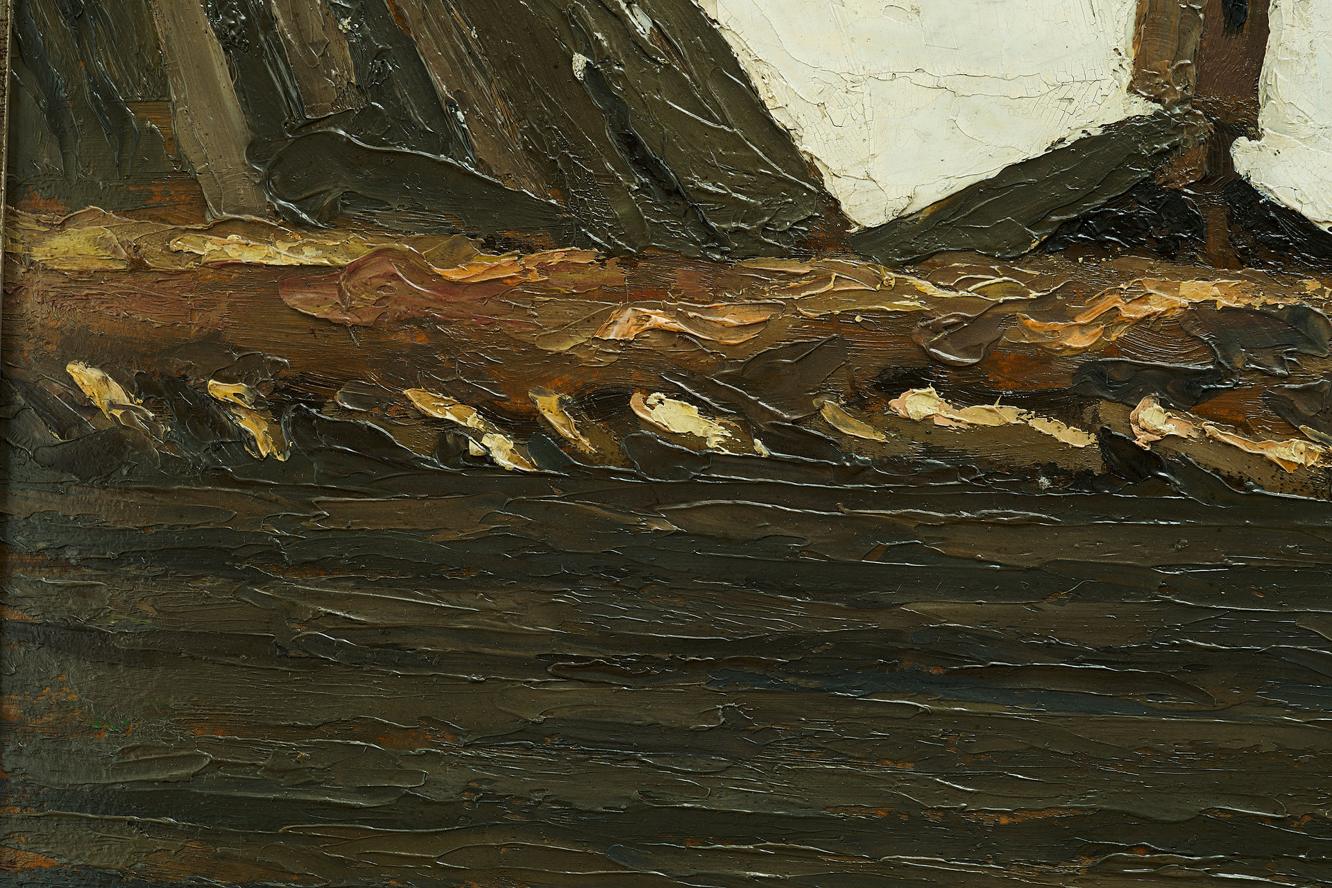 На обороте чернилами надпись: «Этюдъ», 30р. Представленный на экспертизу живописный этюд характерен для творчества И.К. Слюсарева в 1910-х годах. Композиция, приемы изображения, красочная палитра соответствуют принципам живописи художника в указанный период времени. Состояние материалов и живописная манера автора указывает на то, что произведение подлинное и принадлежит кисти И.К. Слюсарева.Произведение опубликовано в каталоге «Мастер уральского пейзажа» Ярков С.П. Екатеринбург, 2006г. на 17 стр. под номером №12. Картина экспонировалась на выставке «120 лет со дня рождения Слюсарева И.К.» в Екатеринбургском музее изобразительных искусств в июне июле 2006г. Слюсарев Иван Кириллович (1886-1962) - живописец-пейзажист, график. Учился у Л.В. Туржанского, затем в Екатеринбургской художественно промышленной школе (1903-1907), после чего был преподавателем рисования в екатеринбургских школах. Человек необычайного трудолюбия, он сделал очень много для развития искусства живописи на Урале, по существу, стал одним из создателей школы уральских пейзажистов XX века.