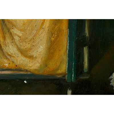 Автор — Пауль Хасслер (Paul Hässler), немецкий живописец, известный своими жанровыми композициями. В его работах наблюдается интерес к интимным сюжетам и человеческой индивидуальности, передаваемой через выразительные детали и световую атмосферу. Картина «За чтением» представляет собой зрелое произведение художника и отражает его стремление к психологической глубине образа.