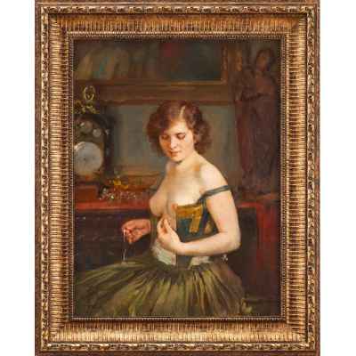 Картина «Натурщица» дама облокотившаяся на спинку кушетки конец XIX— начало XX вв