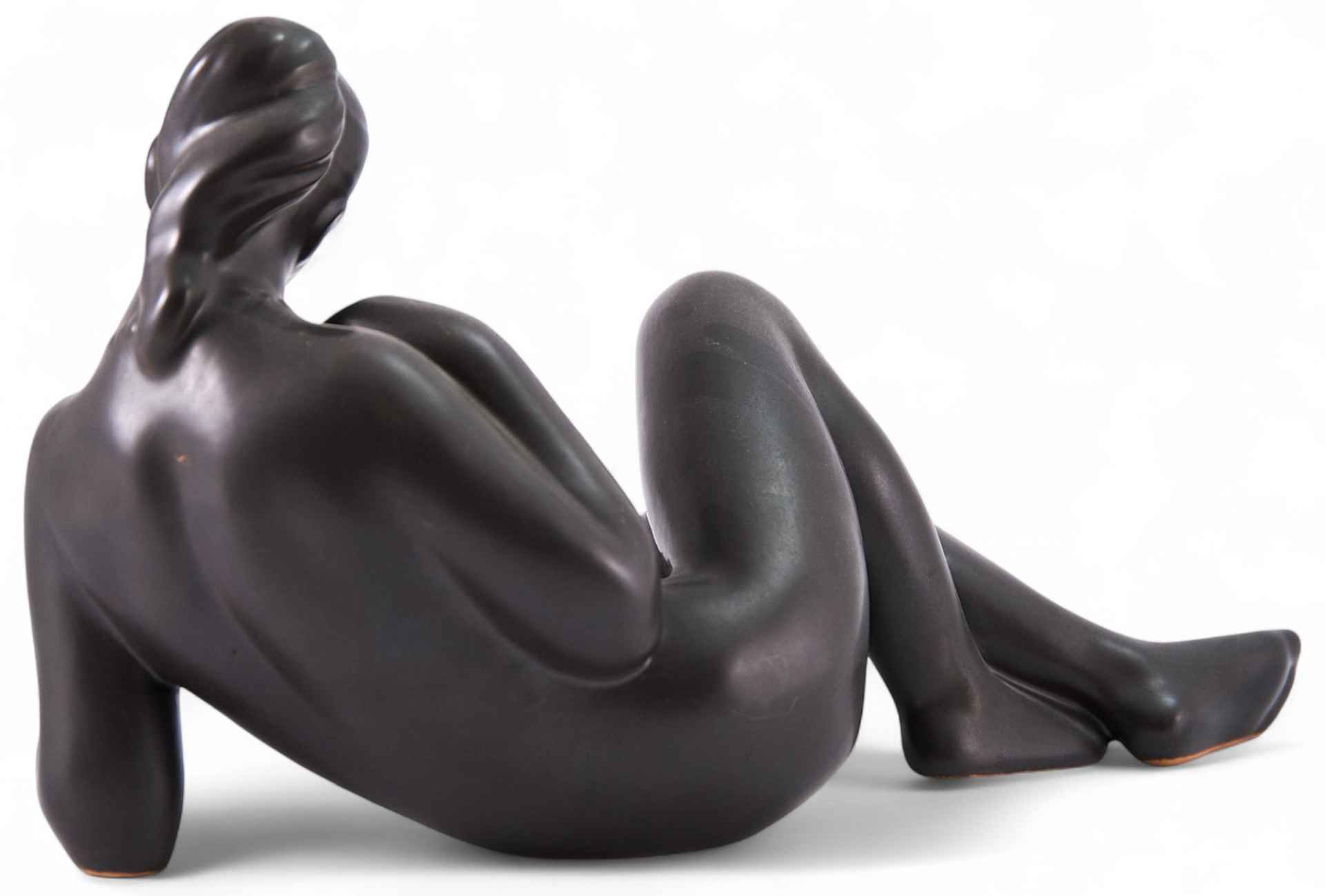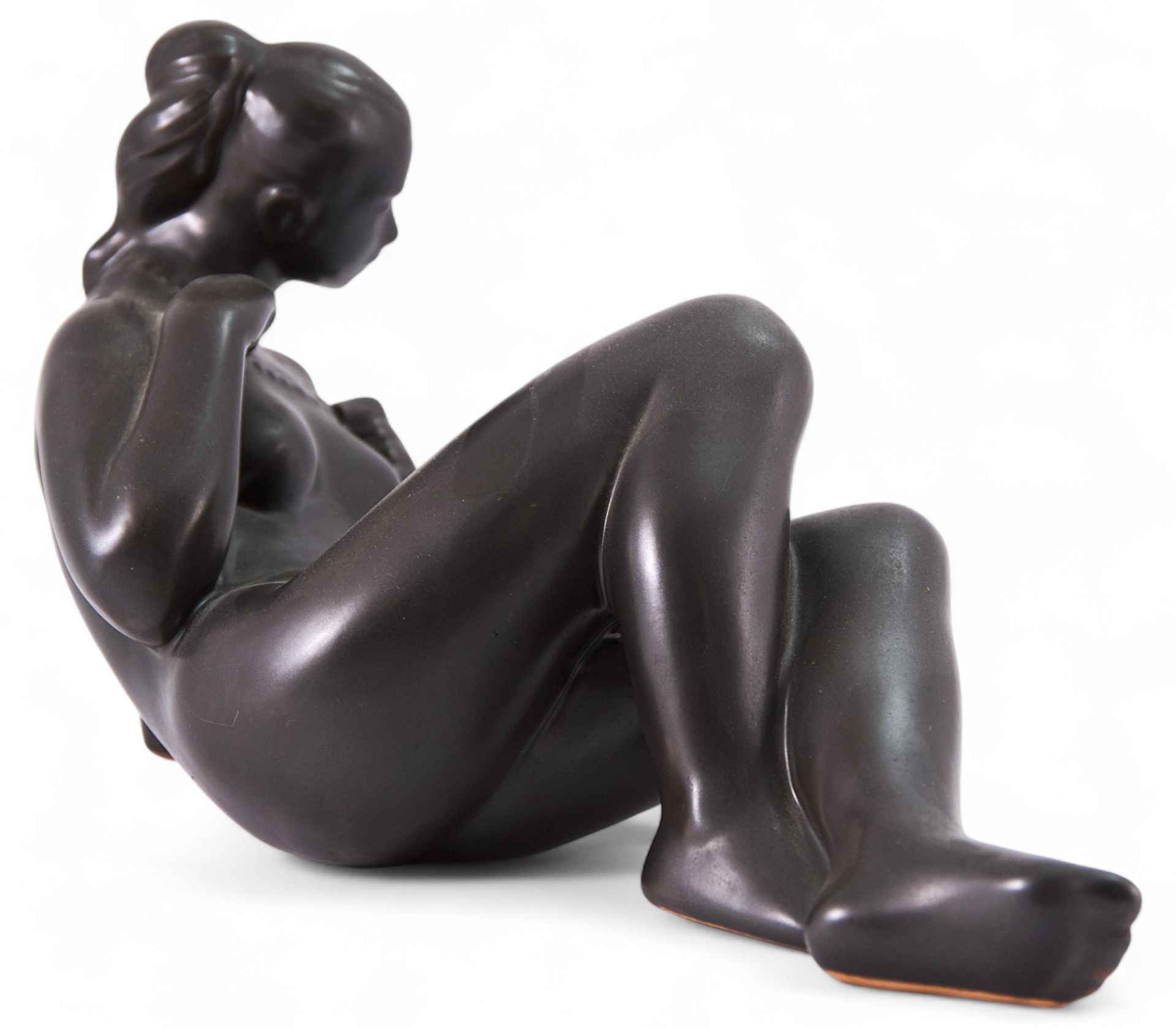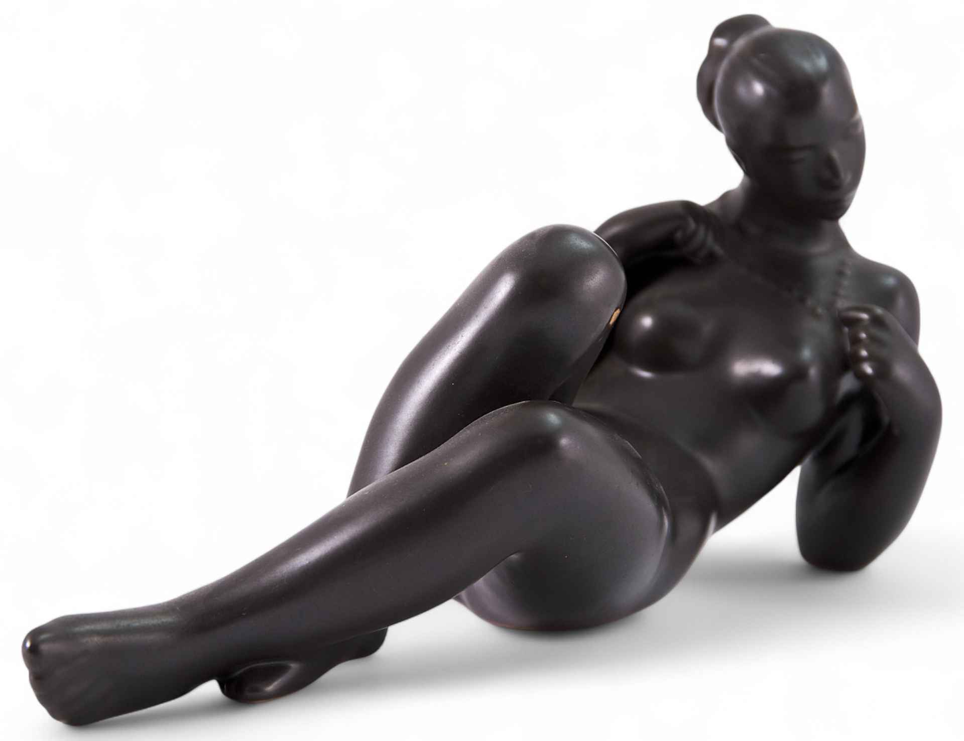 Фаянсовая скульптура jF представляющая фигуру лежащей девушки с гладко убранными волосами, пальцами девушка перебирает бусы на шее. На основании клейма «в тесте»: «Made іи Czechoslovakia», с изображением высокой готической башенки. Рядом производственный номер «в тесте» - «1488 15» Старой отраслью прикладного искусства в Австрии и Чехии является художественная керамика. Распространение глазури в Австрии относится к XV в. сначала желтой, затем зеленой и несколько позднее—цветной). Большинство центров керамического производства в Верхней Австрии, Зальцбурге и Нижней Австрии ведет свою историю с XVI в. Фирма Кегатіа занималась изготовлением художественной майолики часто рельефов), в 1930-х гг. Сегодня основной центр чешской художественной керамики сохранился в г. Крумлов, на юге Чехии.