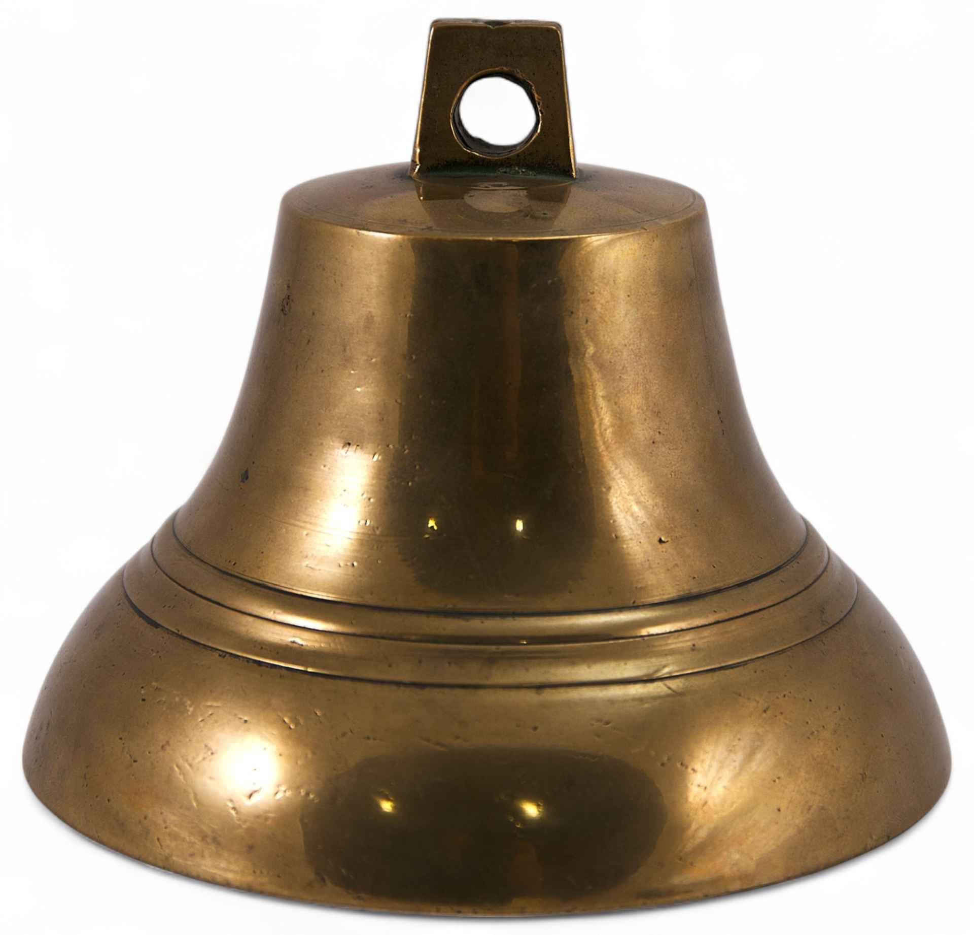 Колокольчик, называемый поддужный или ямщицкий. Тулово колокольчика украшено профилированными поясками.