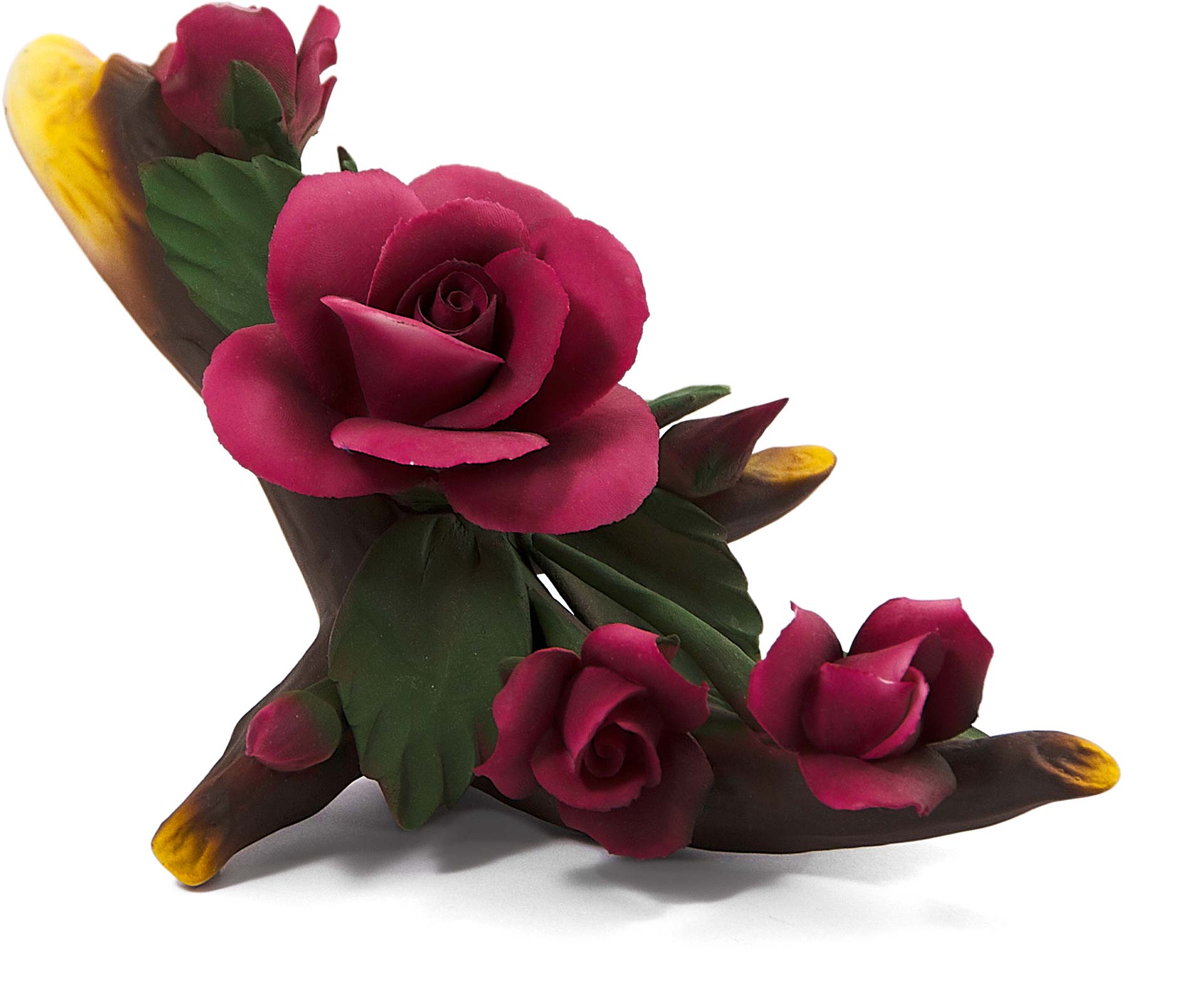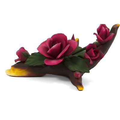Розы, расположенные на срезанной веточке с ярко-зелёными листьями, выглядят реалистично и динамично, отражая природу в её ярчайшем воплощении. Каподимонте, чьи традиции начались в 1743 году, известен своей способностью передавать через фарфор тонкость и естественную красоту, не теряя при этом связи с историей искусства.