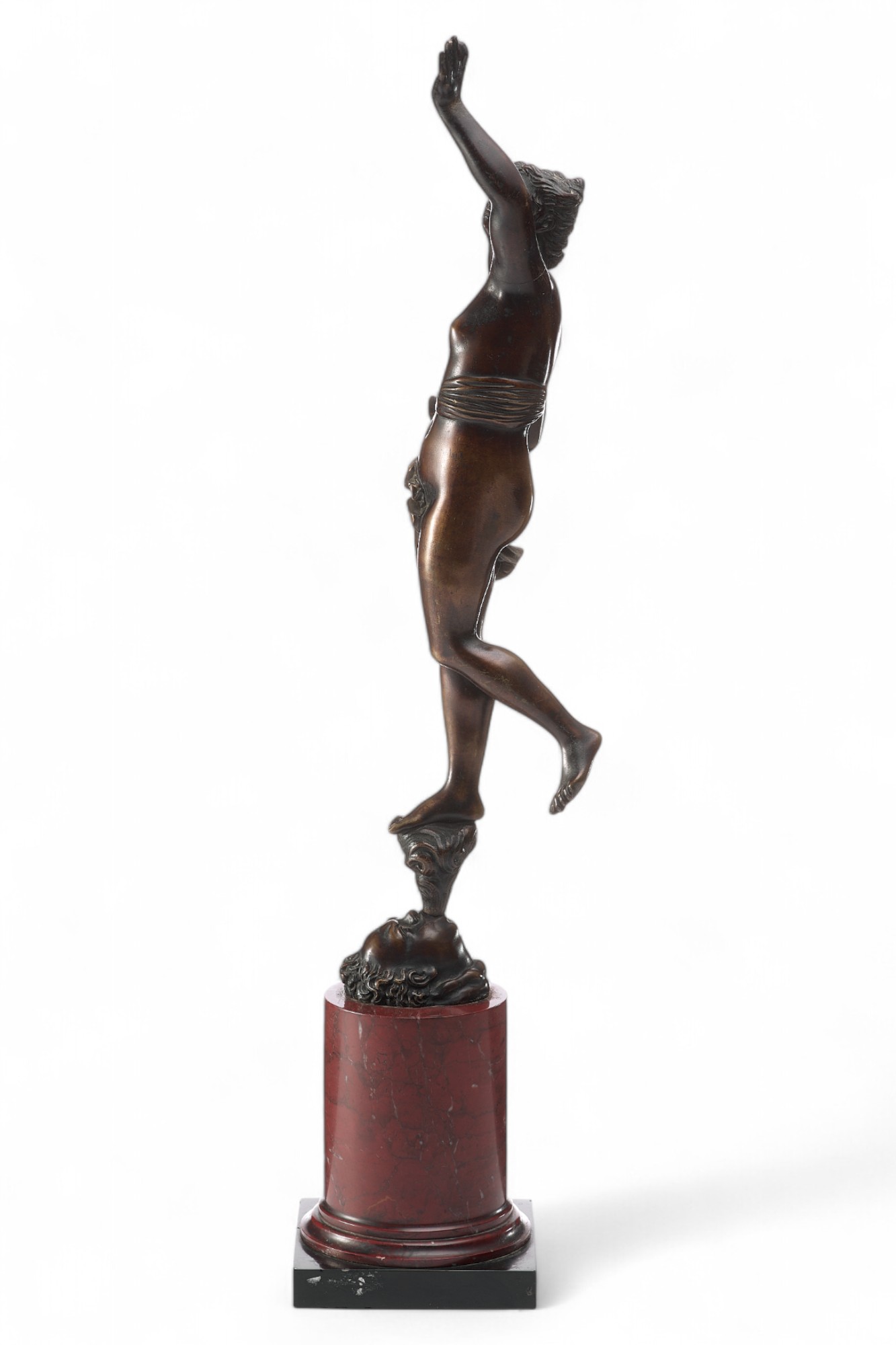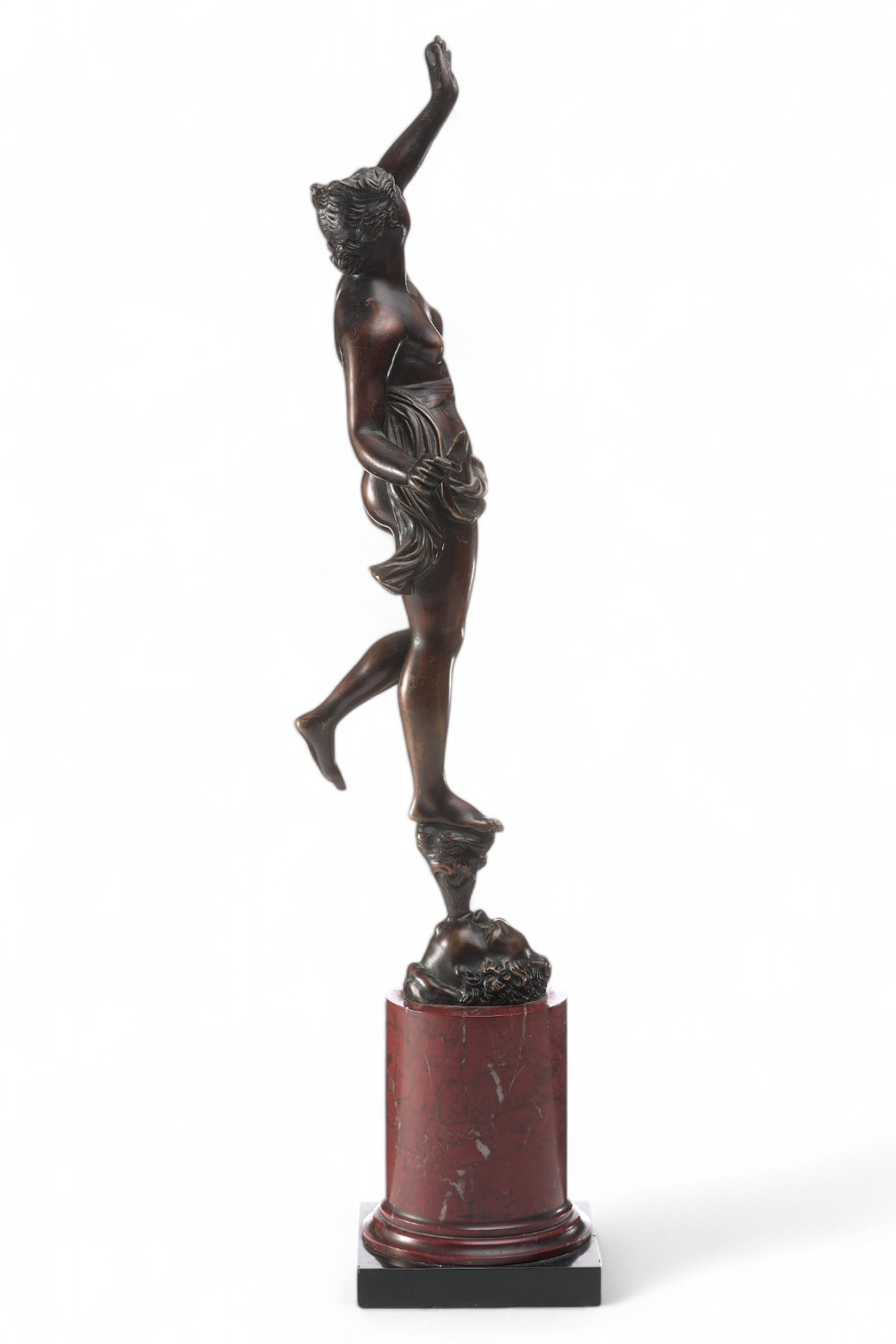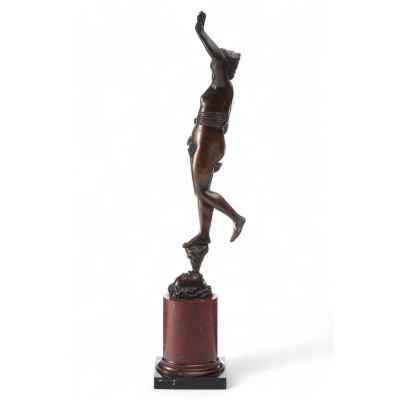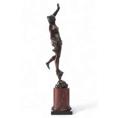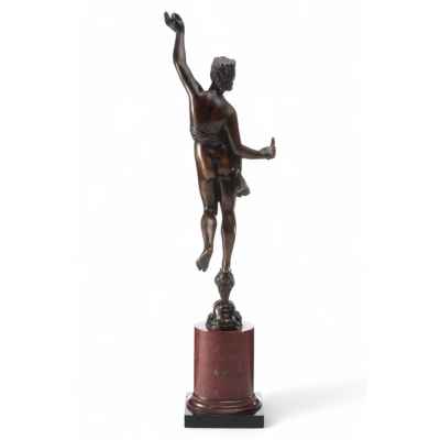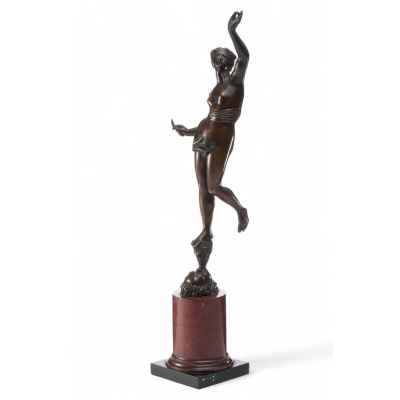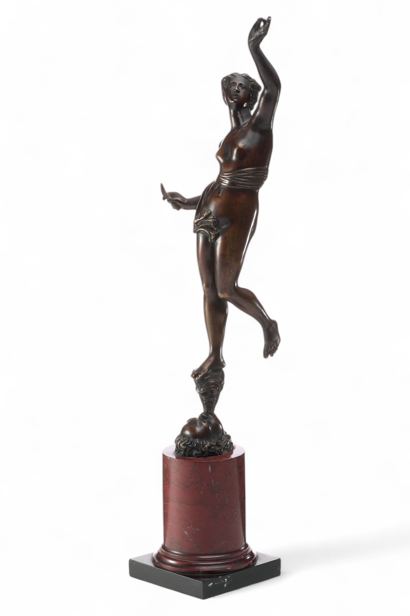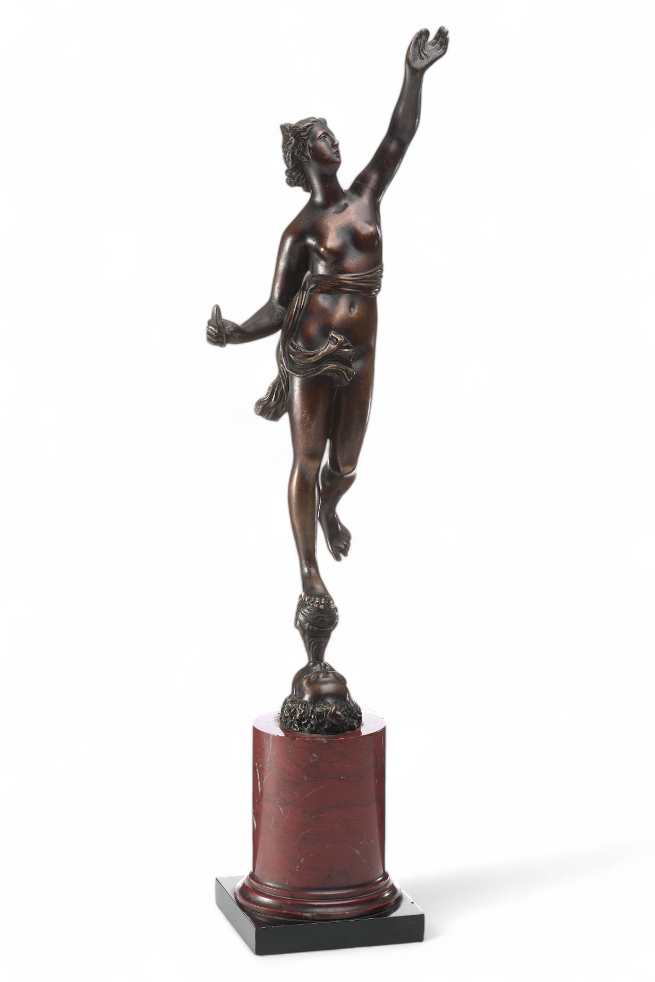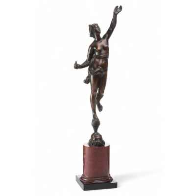 Представленный предмет – скульптура «Фортуна», выполненная во Франции (?) в конце XIX века. Это вольная интерпретация одноименной скульптуры Андреа Фалькони (Andrea Falconi, 1630 – конец XVII века), созданной в 1660-е годы по заказу Римской гильдии торговцев в дополнение к знаменитой скульптуре «Меркурий» Джамболоньи (1564). Композиция символизировала удачу и успех в предпринимательстве.