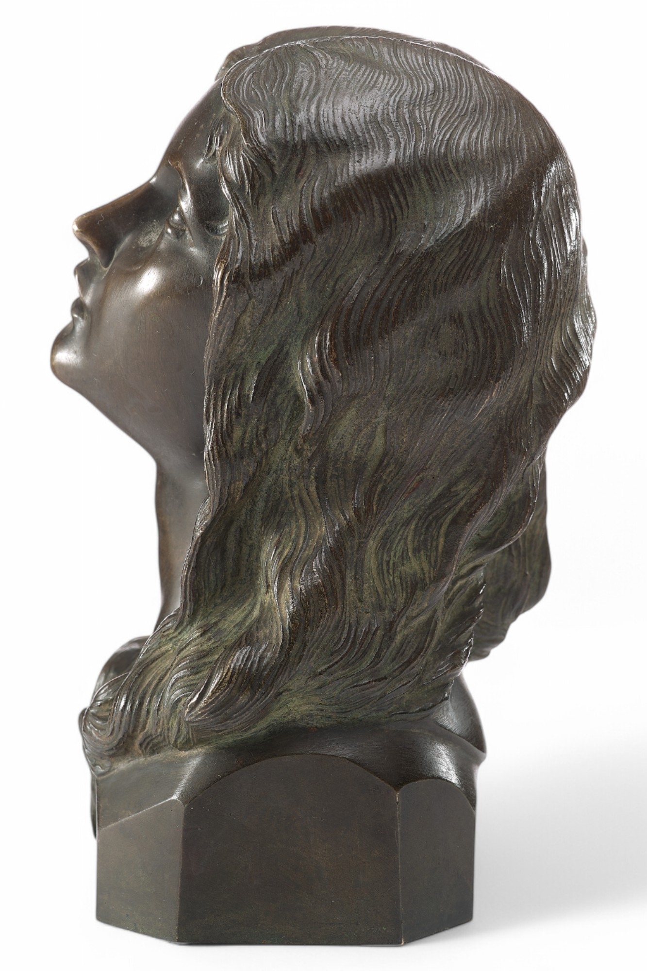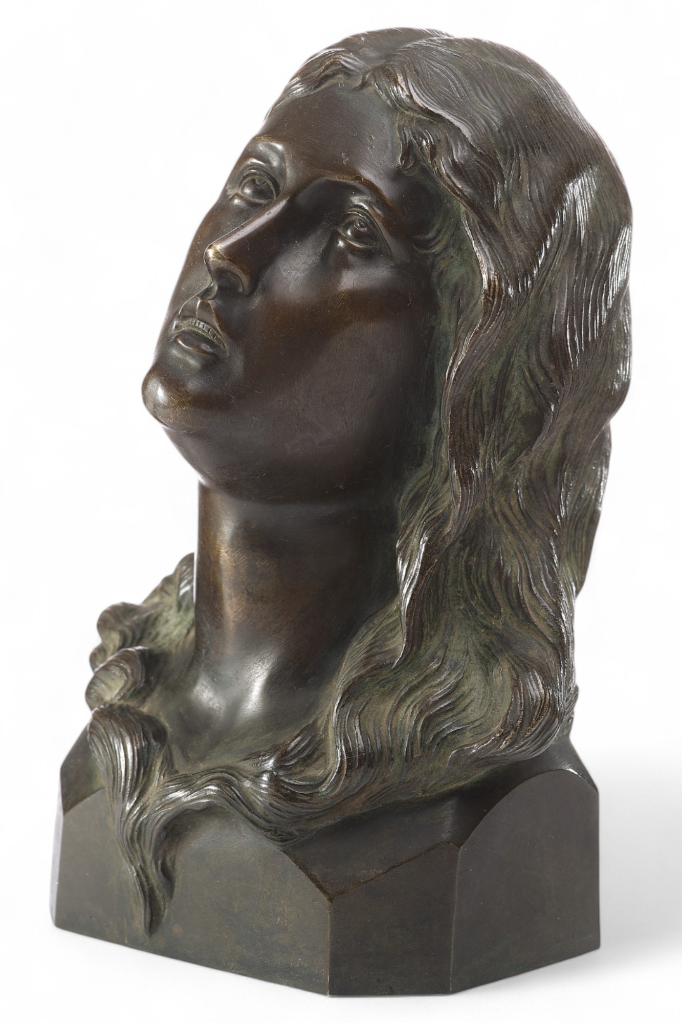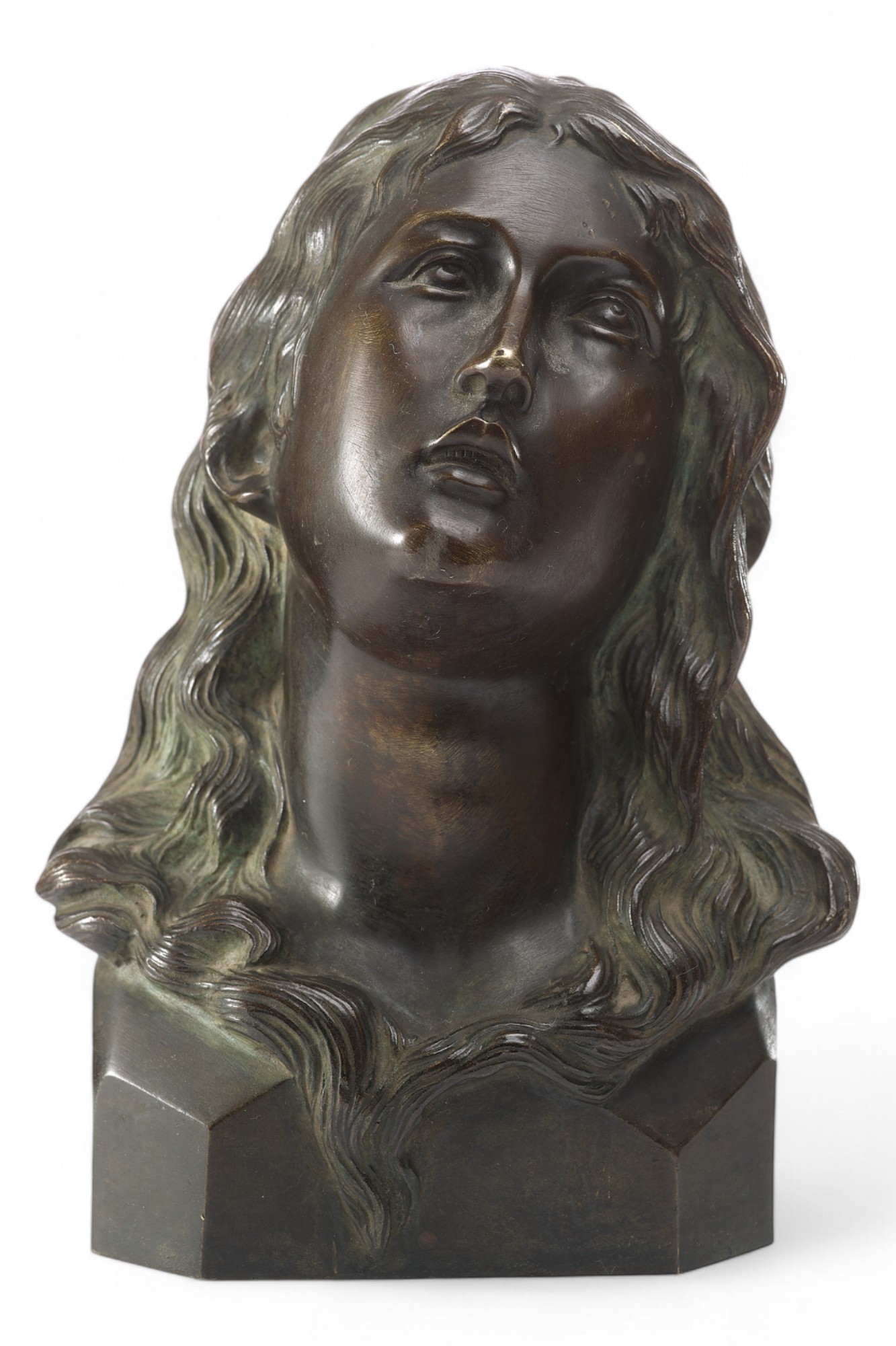 Представленный предмет – бронзовый бюст «Мария Магдалина», выполненный в первой четверти XX века в Европе. Скульптура отражает традиционный иконографический образ кающейся Марии Магдалины, который использовался в европейском искусстве начиная с эпохи Возрождения.