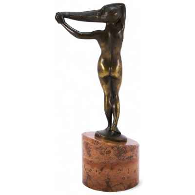 Скульптура изготовлена методом литья из бронзы, высота составляет 17 см. Она представляет собой кабинетное интерьерное произведение, популярное среди венской бронзы первой половины XX века.