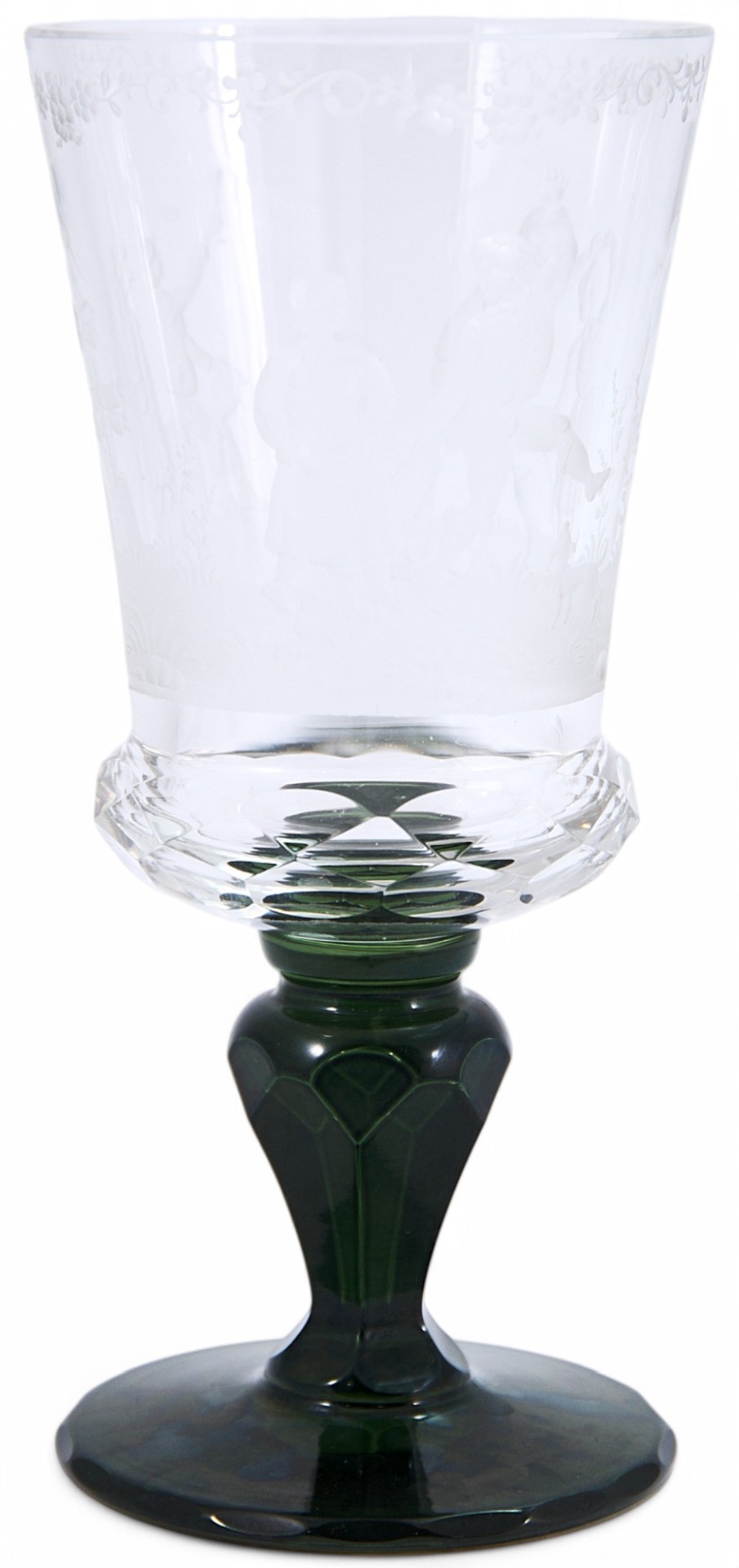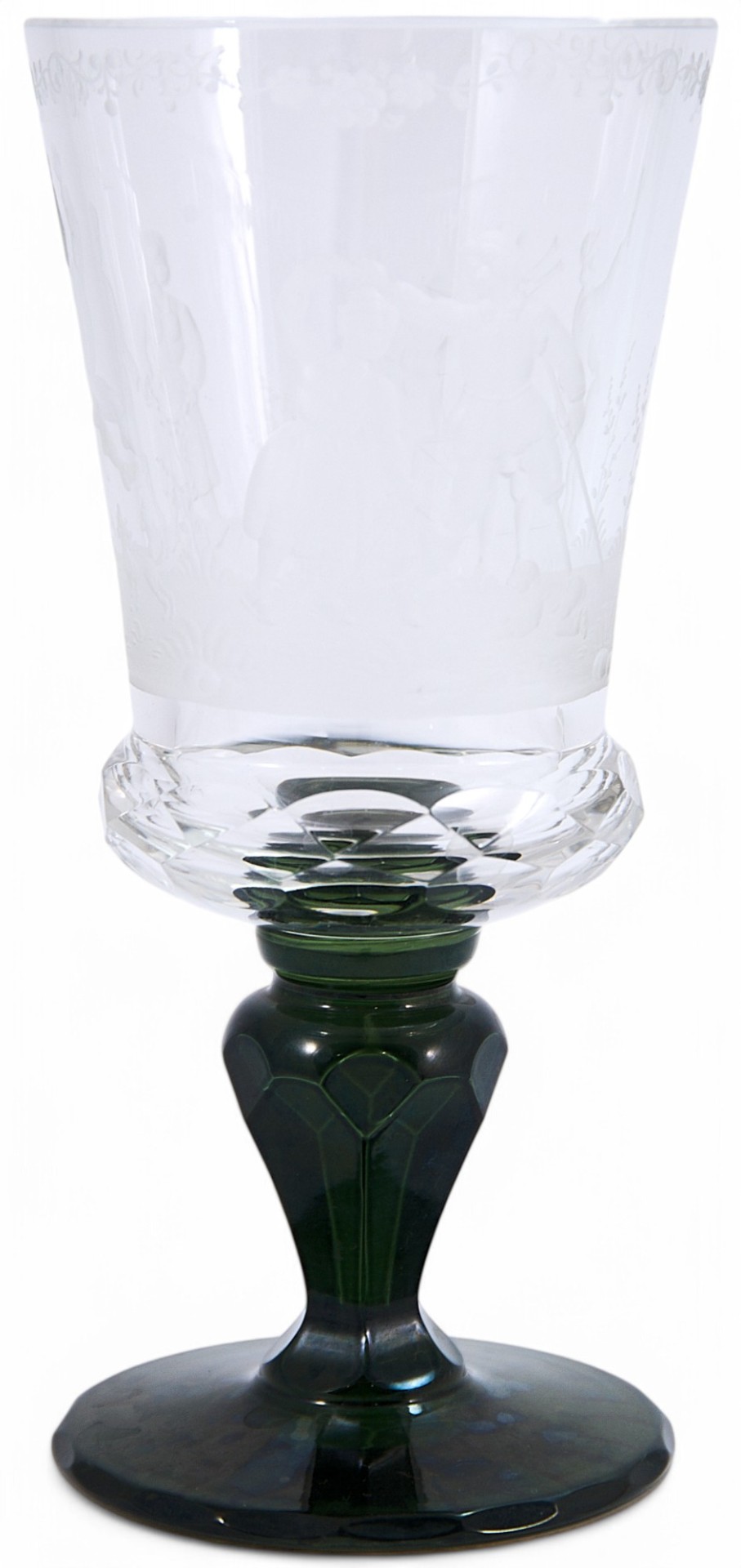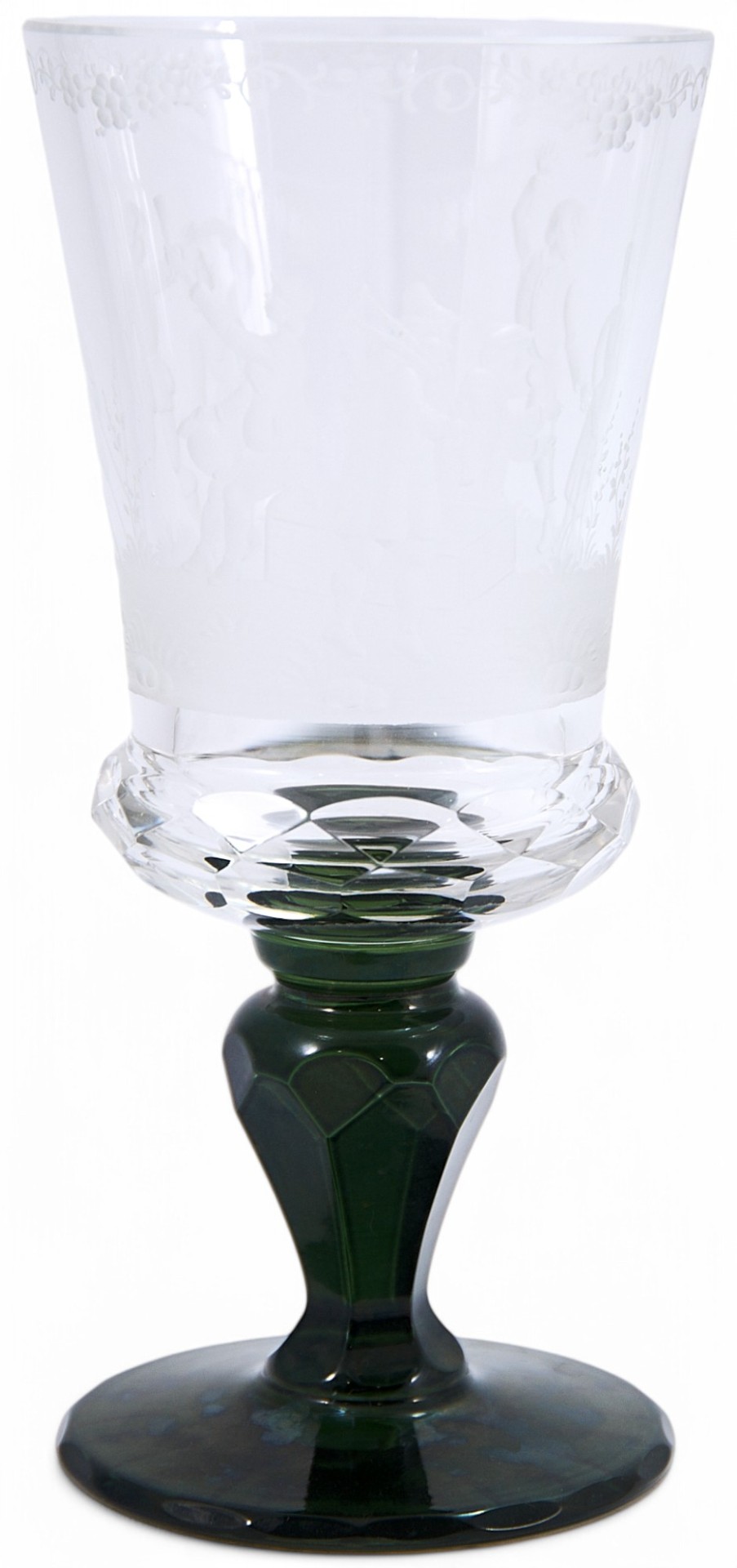 Бокал для вина Рёмер гравированный сценами гуляний Европа сер. ХХ в. Чехия вторая половина ХХ века