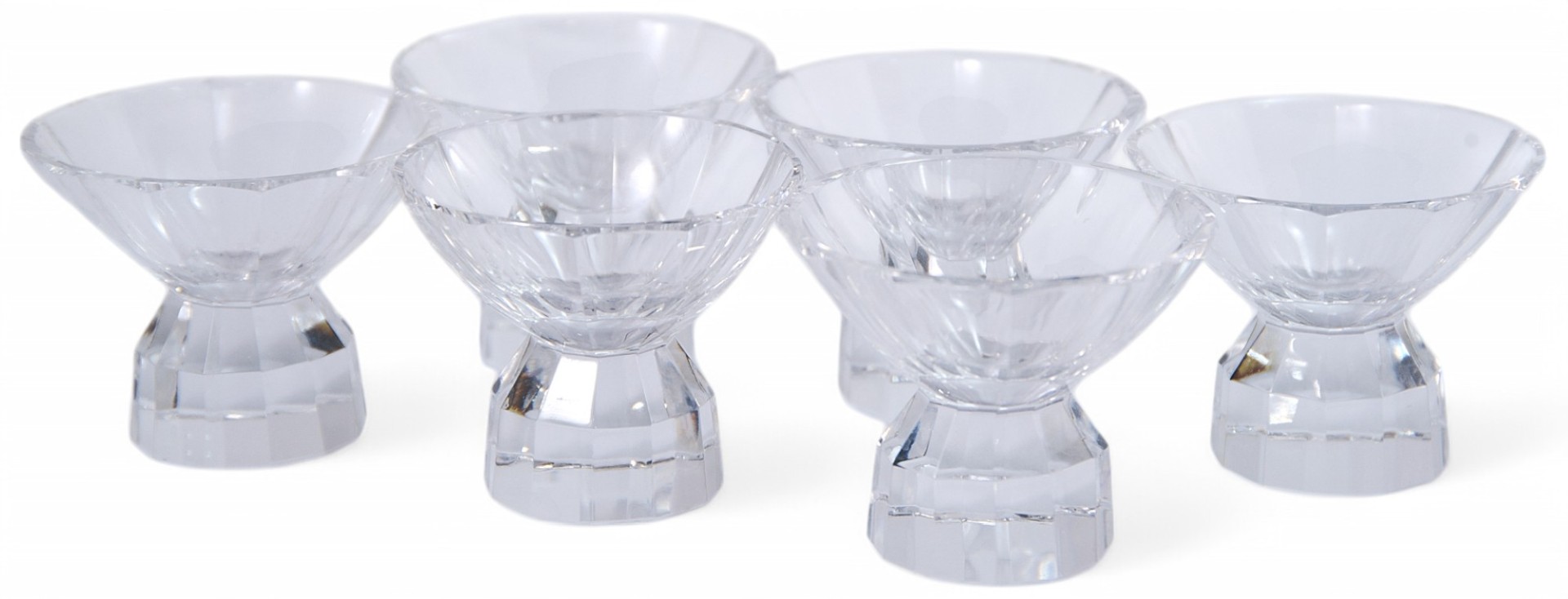 Материалы и техника изготовления включают тонкое стекло, обработанное методом гранения, создающего строгую геометрическую структуру. Эти рюмки обладают характерными чертами ар-деко – чёткие линии, симметрия и сочетание простоты с роскошью. В 1920-1930-х годах подобные предметы пользовались популярностью в элитных интерьерах и на званых ужинах, подчёркивая вкус и статус владельца.