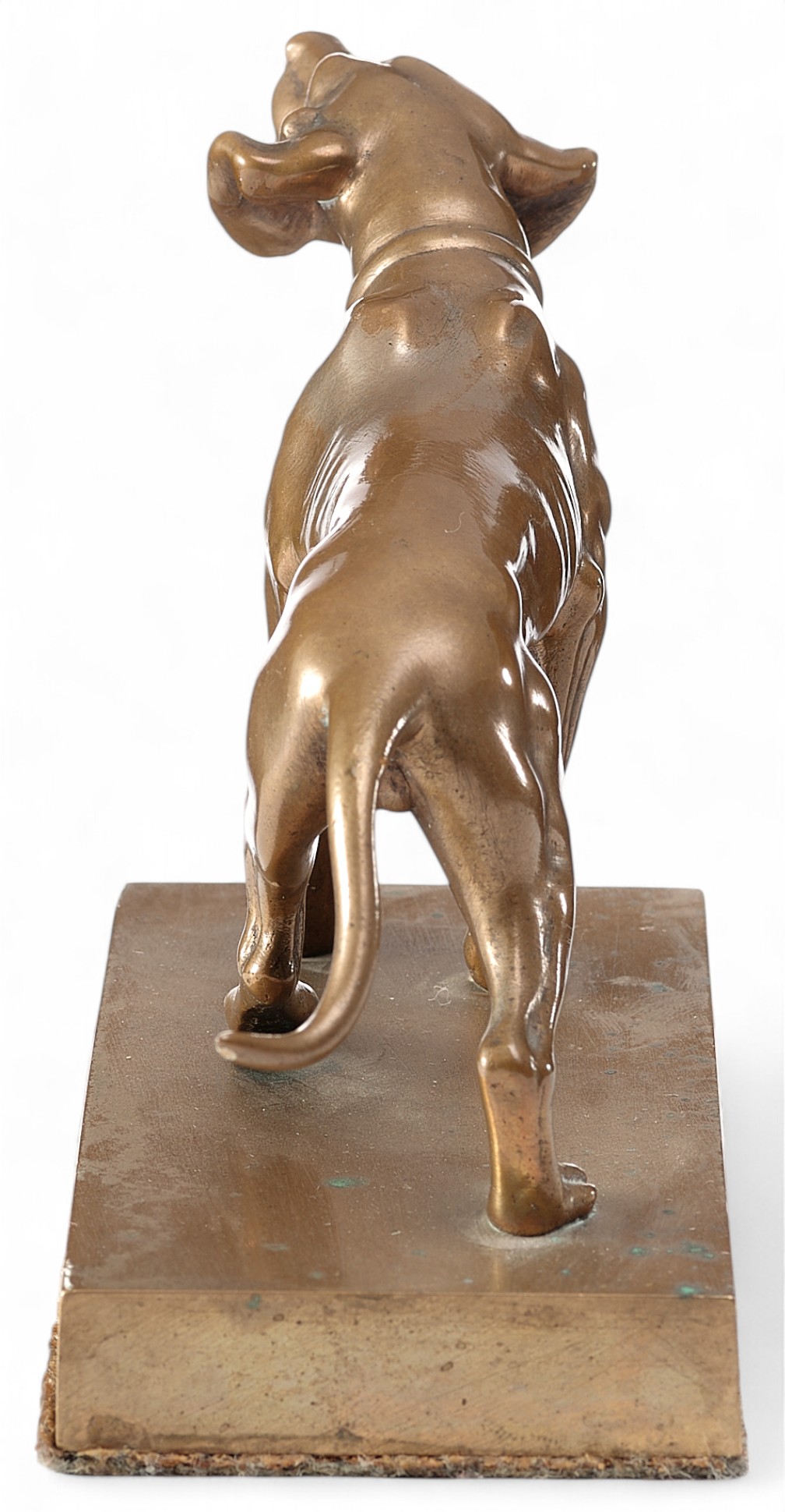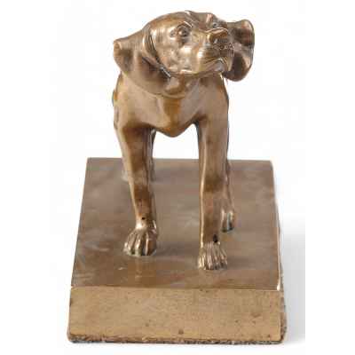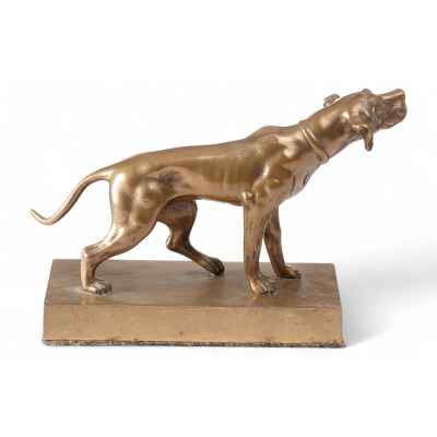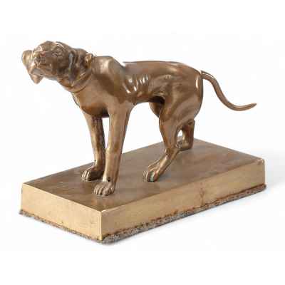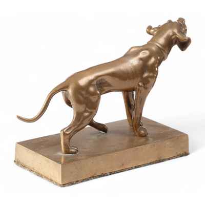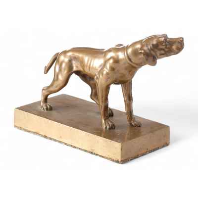 Представленная скульптура демонстрирует натуралистическую трактовку охотничьей собаки – пойнтера, напряжённо выслеживающего добычу. Это соответствует творческому подходу Пьера-Жюля Мена, создававшего динамичные, но реалистичные образы животных.