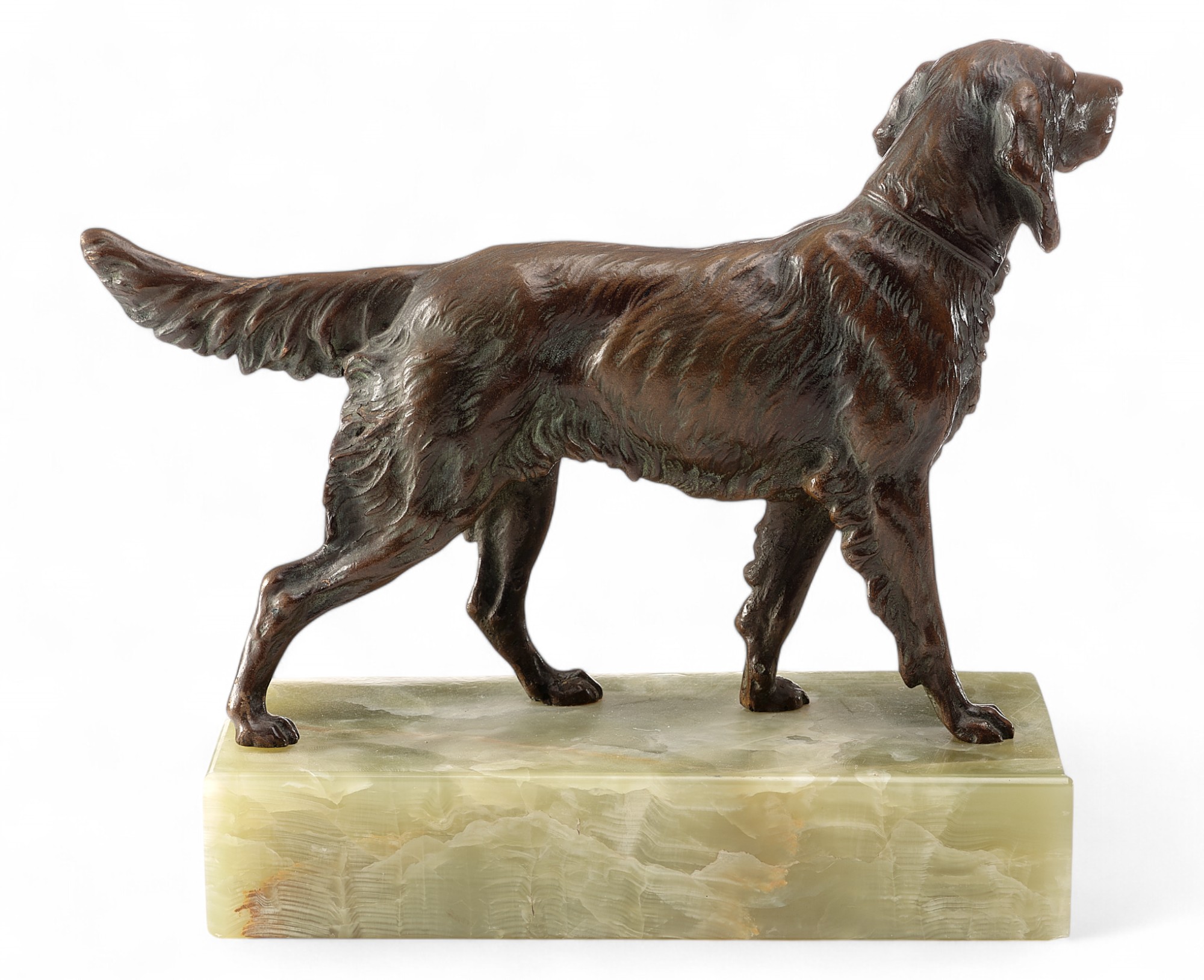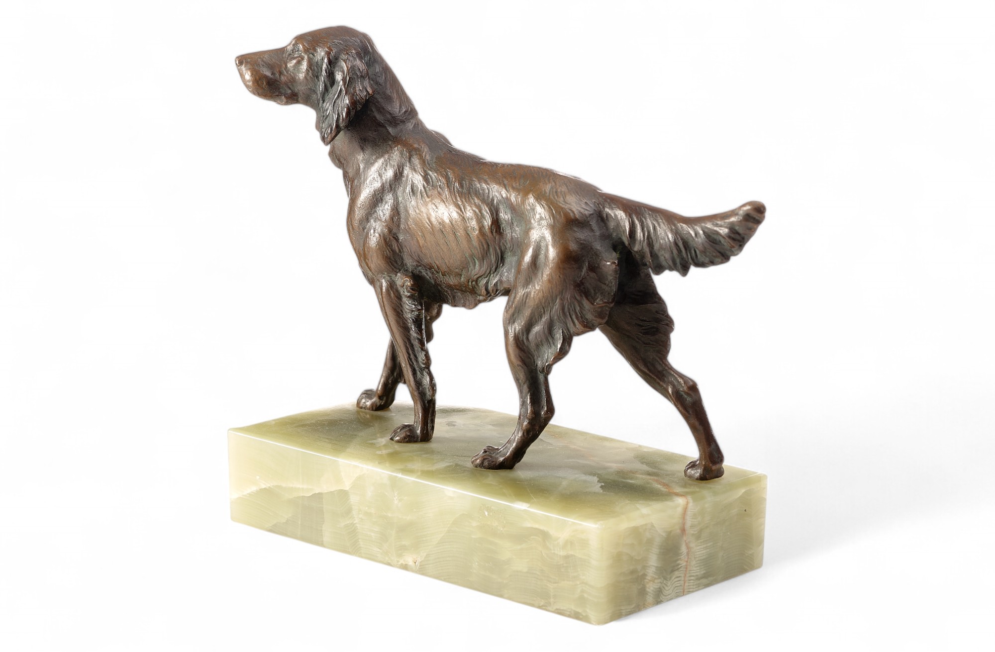 Представленный предмет – бронзовая скульптура «Сеттер», выполненная в первой четверти XX века в Европе. Это произведение относится к традиции венской бронзы, одного из наиболее популярных направлений декоративной скульптуры в Европе XIX – начала XX века.