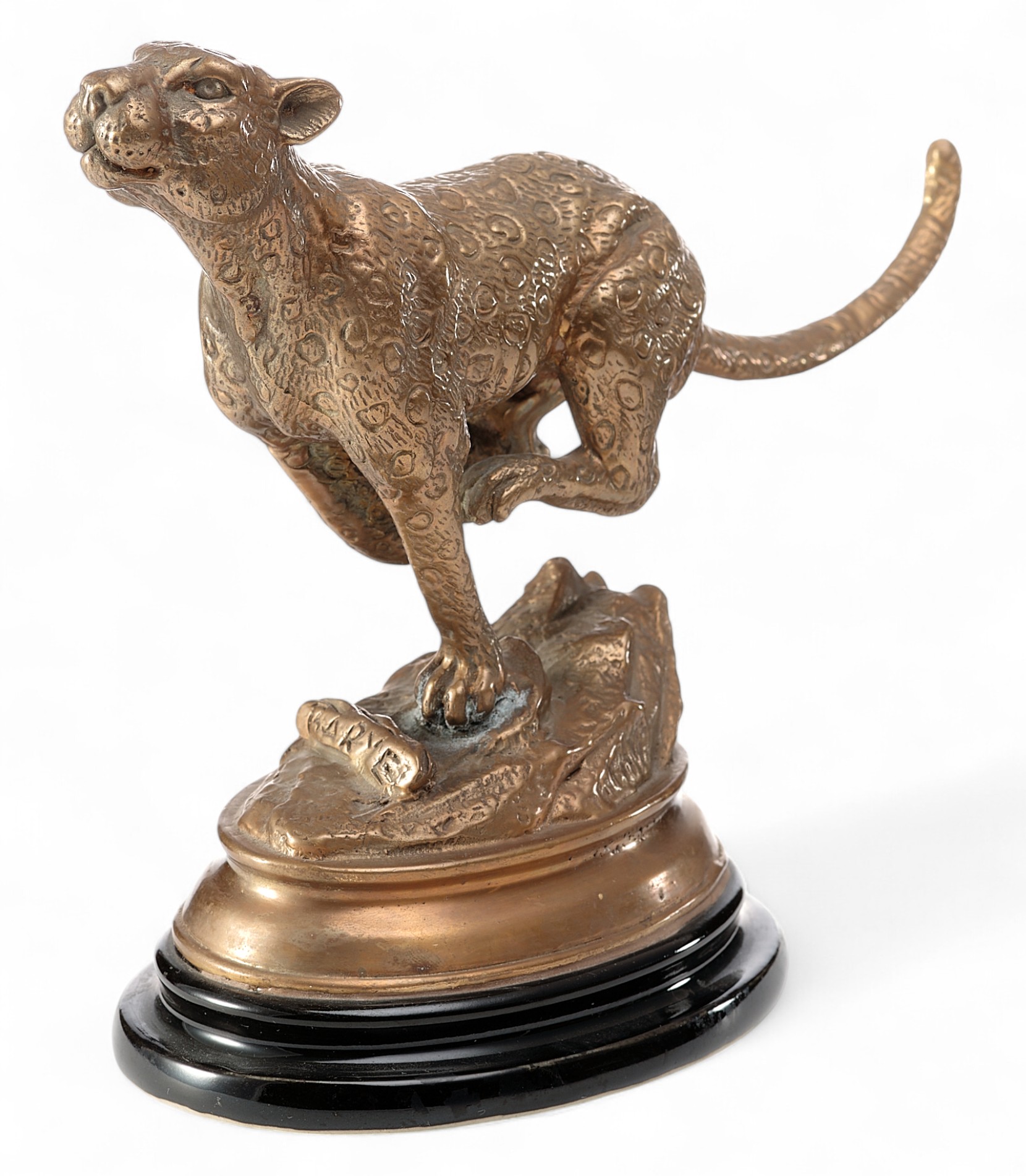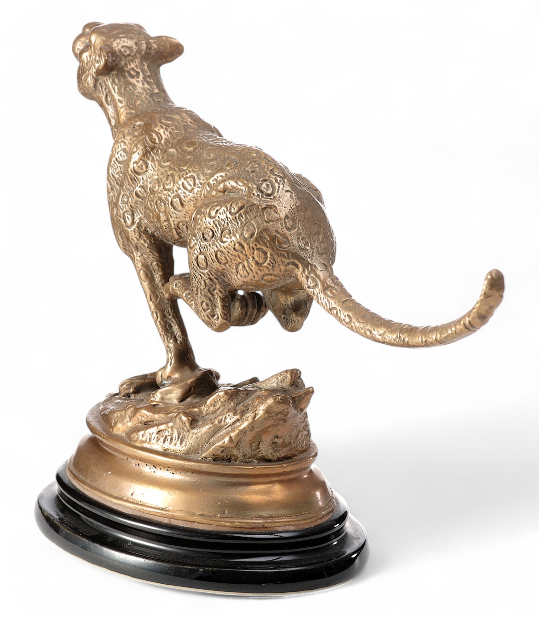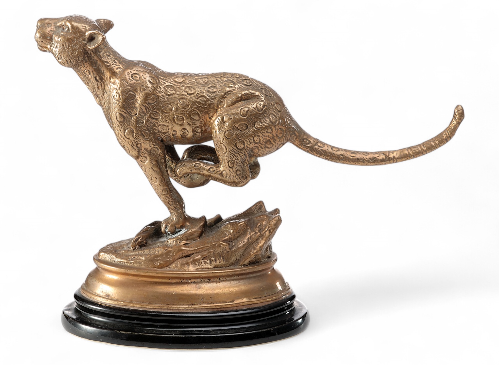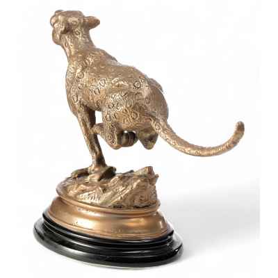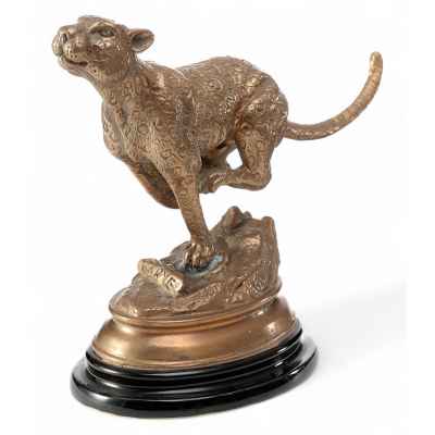 Представленный предмет – бронзовая скульптура «Гепард», выполненная в первой трети XX века. Данная работа представляет собой кабинетную бронзовую пластику, популярную в европейском искусстве того времени.