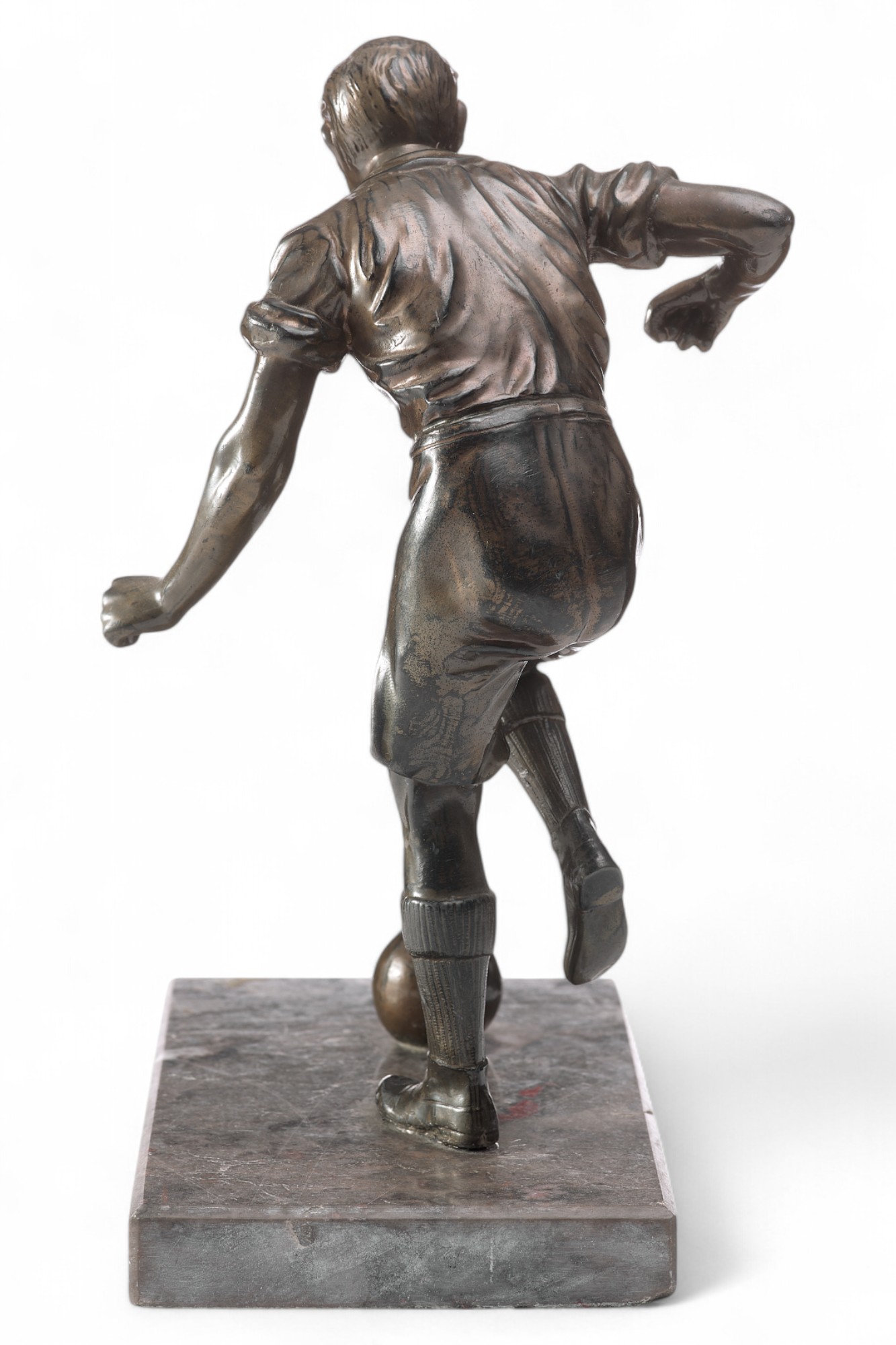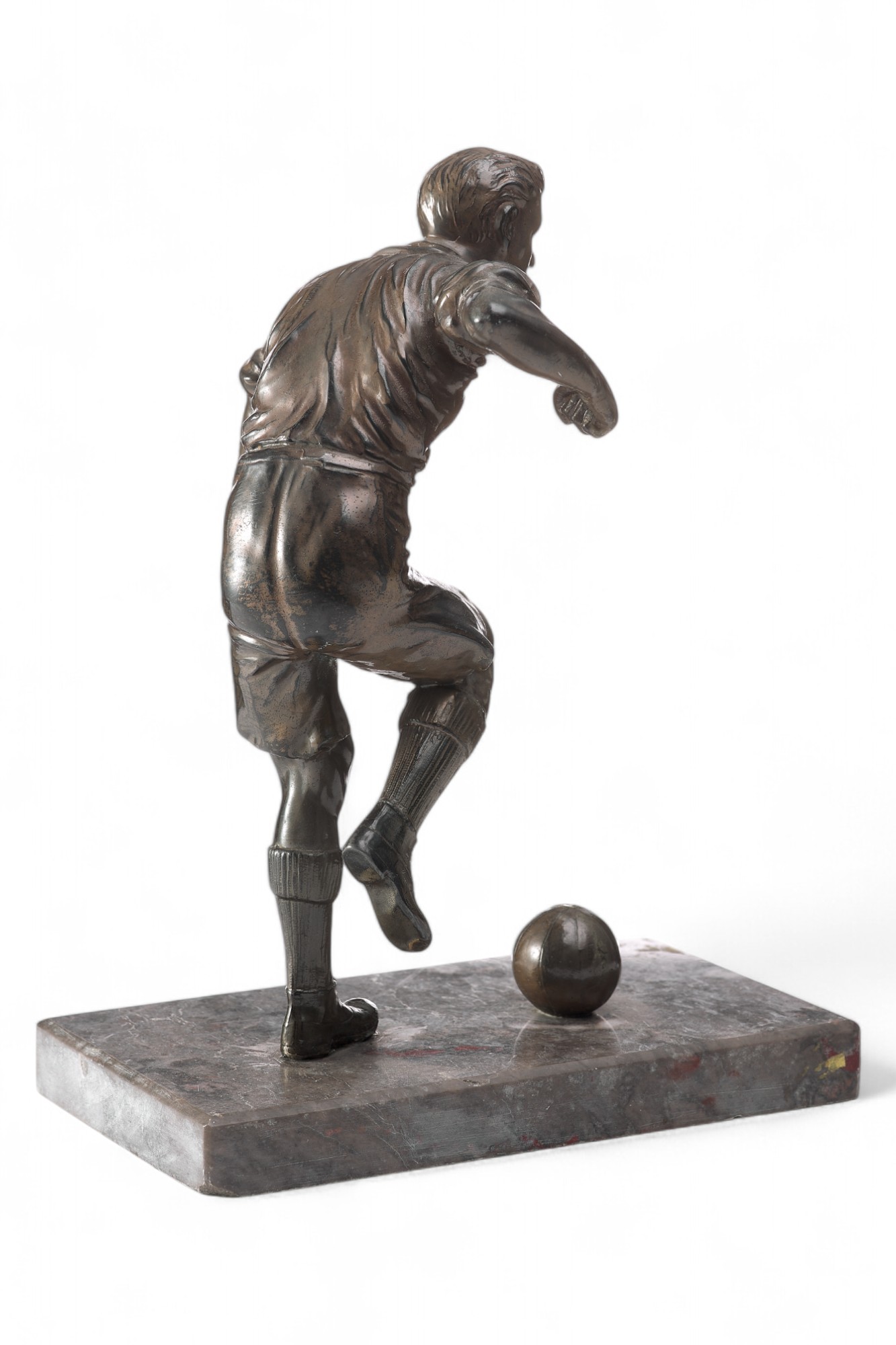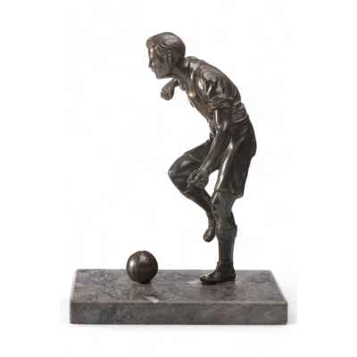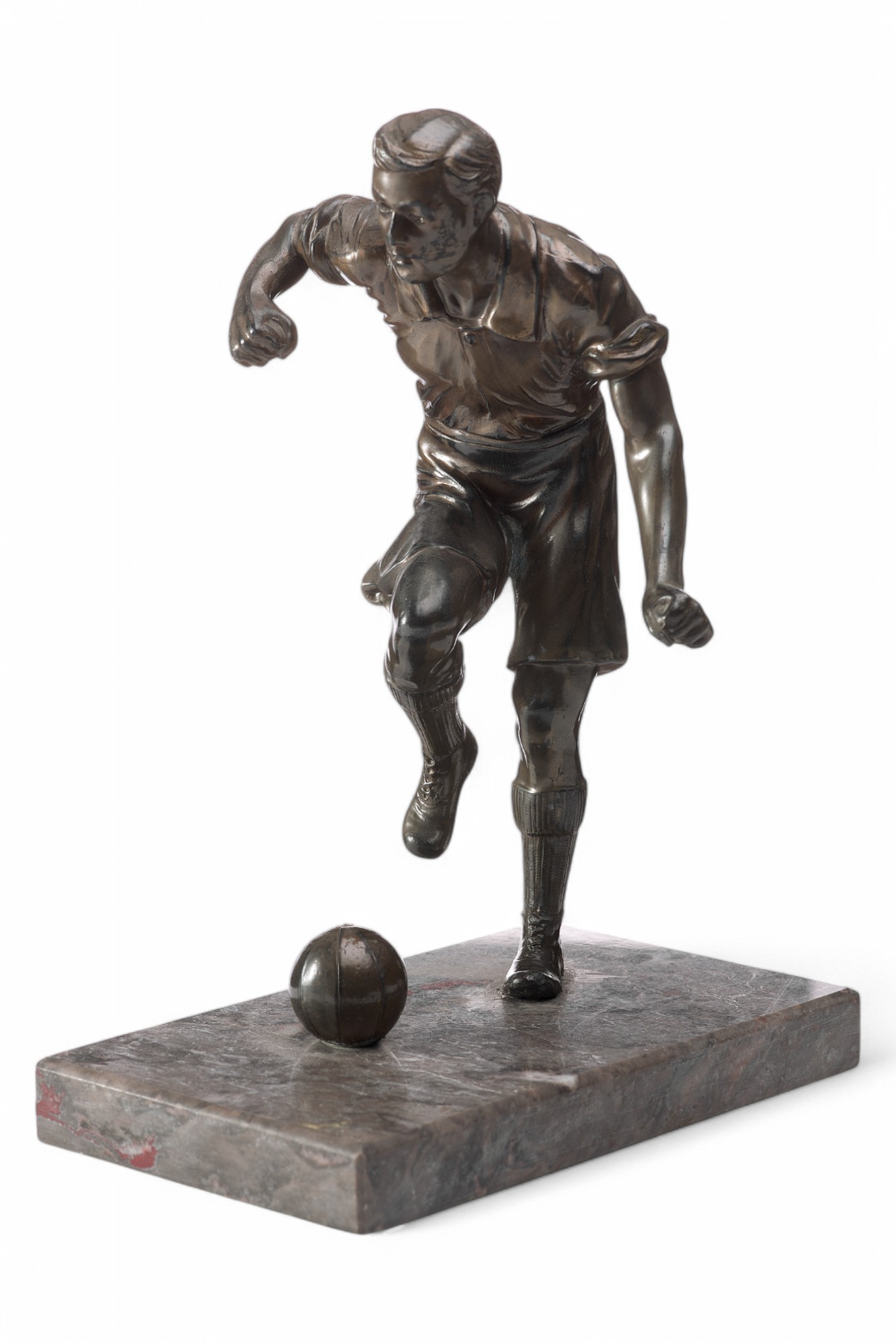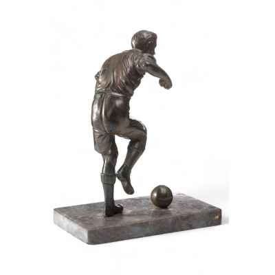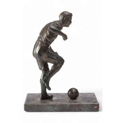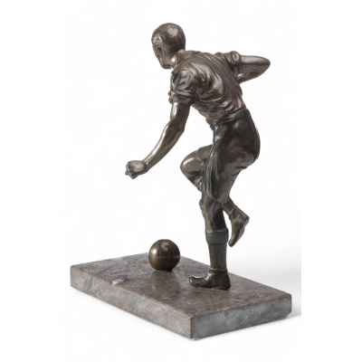 Скульптура «Футболист» представляет собой выразительную бронзовую миниатюру, изображающую юношу в динамике спортивного движения — в момент ведения мяча. Композиция выполнена с характерной экспрессией и вниманием к деталям: фигура наклонена вперёд, мышцы напряжены, лицо сосредоточено, а руки и ноги находятся в активной пластике. Благодаря выразительной позе и подчёркнутой анатомии, скульптура передаёт не только физическое напряжение, но и эмоциональное напряжение спортивного состязания. Она предназначалась в первую очередь как декоративный предмет, возможно, служила спортивным трофеем или интерьерным украшением, связанным с культом физической культуры.