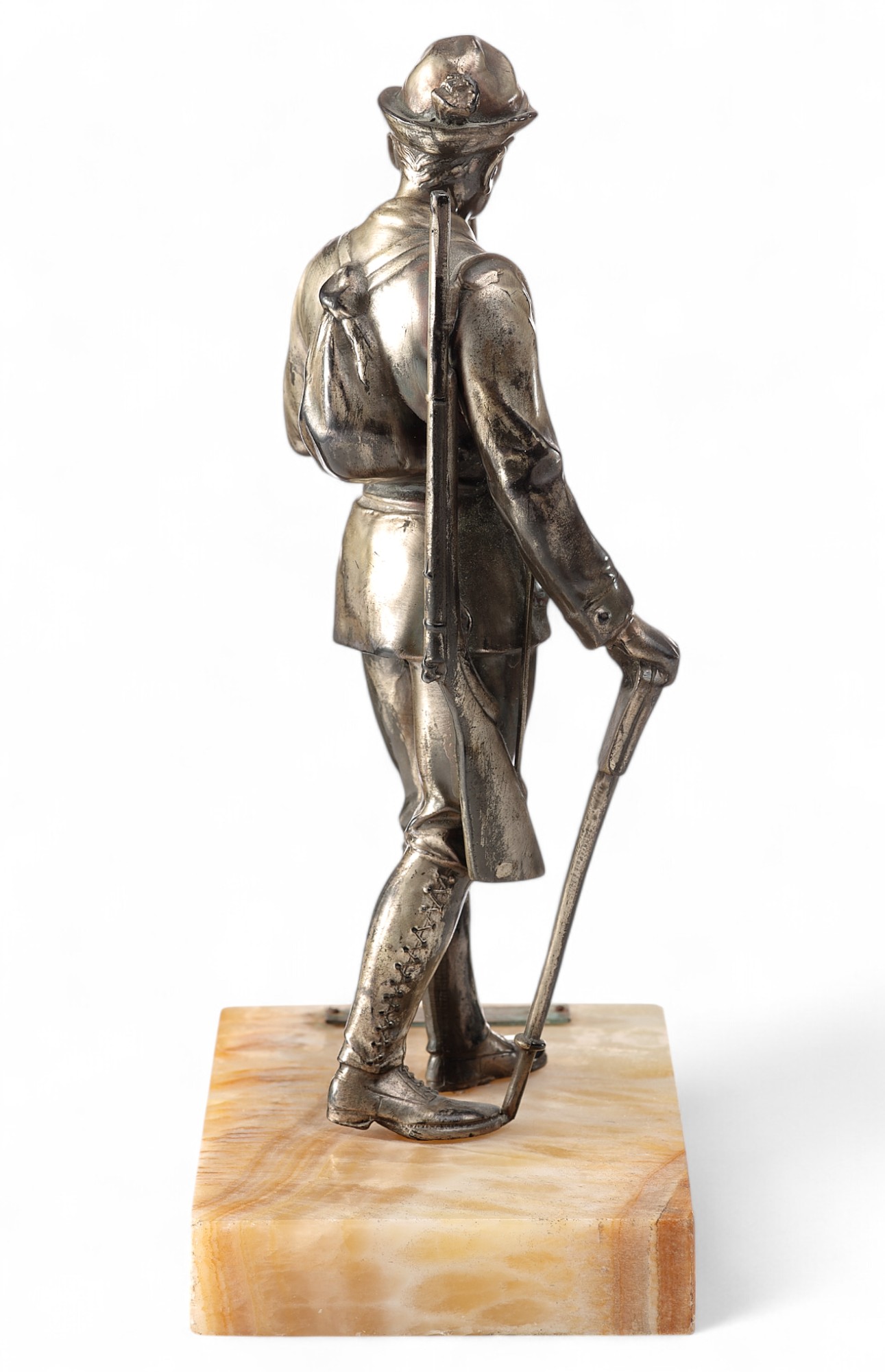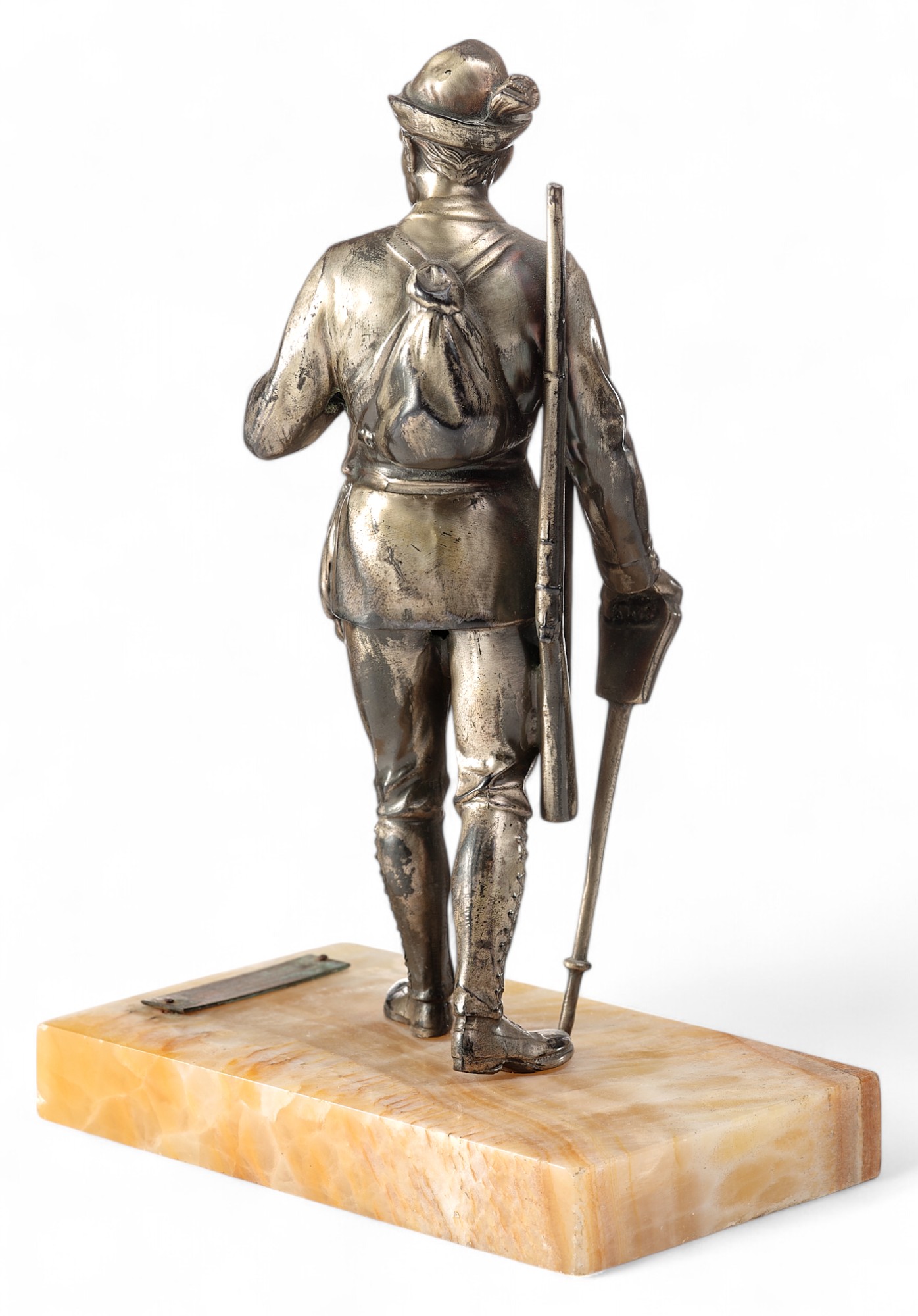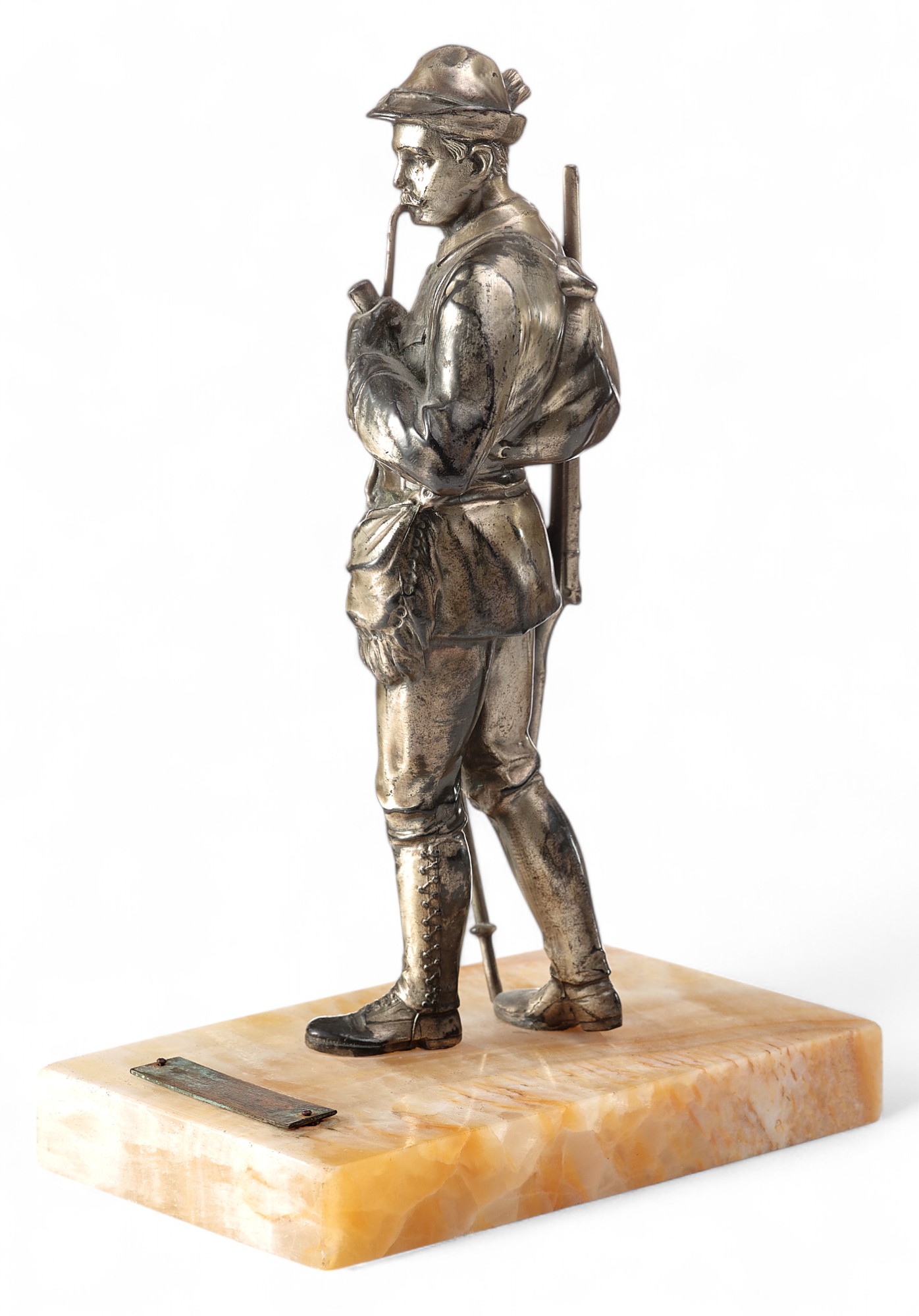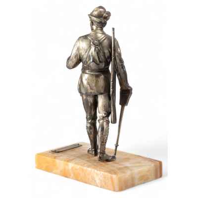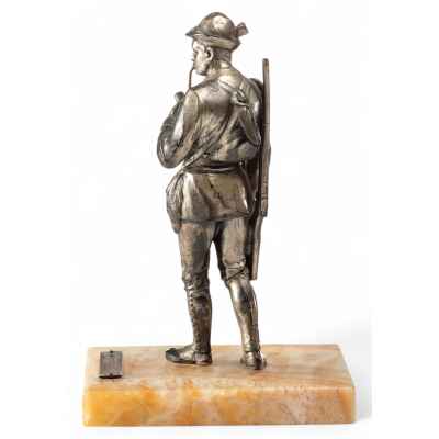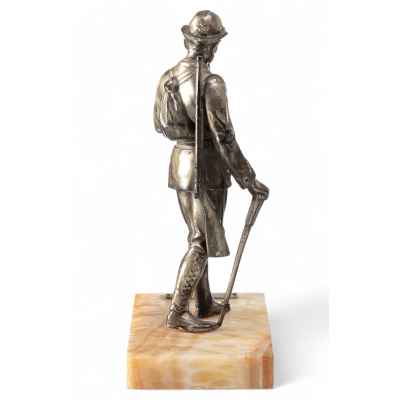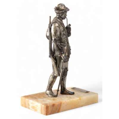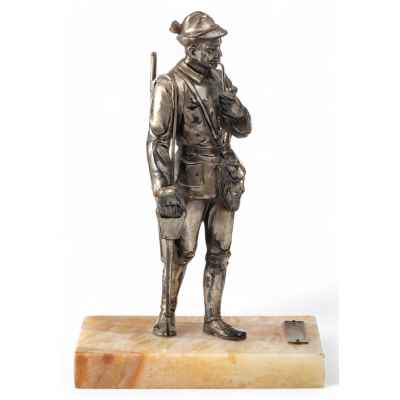 Скульптура Охотник металл, серебрение, мрамор, Европа кон. XIX - нач. XX в. Н-13,2 см. Европа конец XIX - начало XX вв
