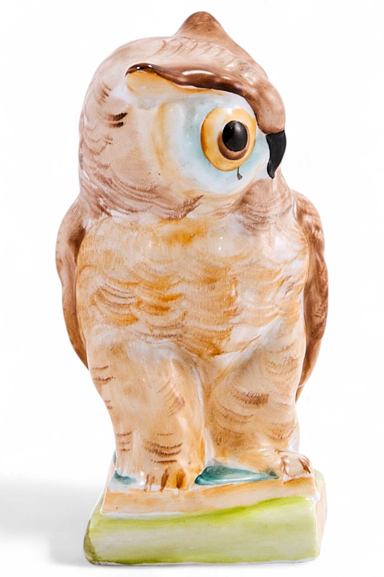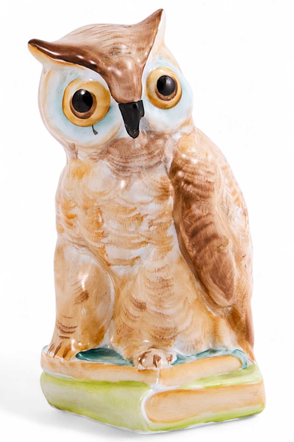 Фаянсовая скульптура «Сова на книгах» представляет собой декоративное изделие, выполненное в стилизованной манере, характерной для европейской малой пластики второй половины XX века. Изображение совы — традиционного символа знания и мудрости — усилено включением книг в композицию, что делает предмет особенно подходящим для интерьеров, связанных с обучением, чтением или преподаванием.