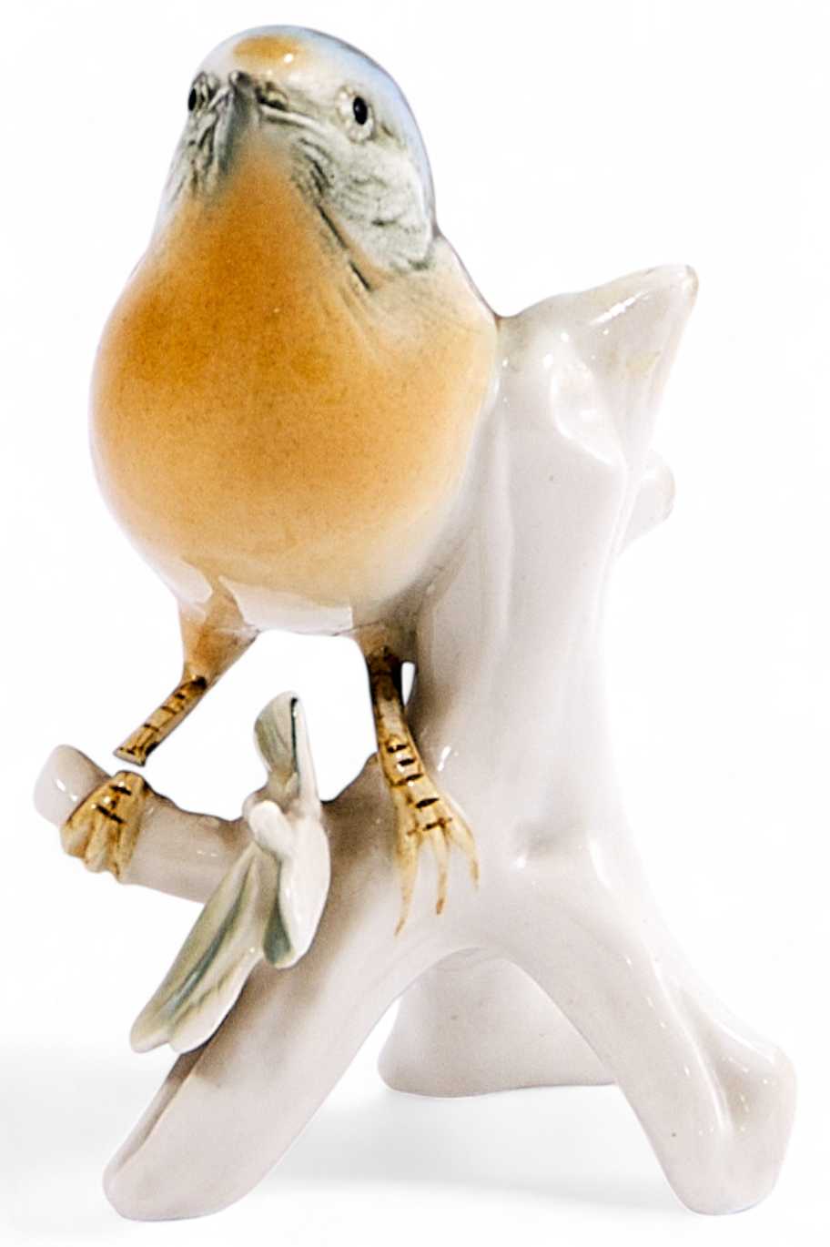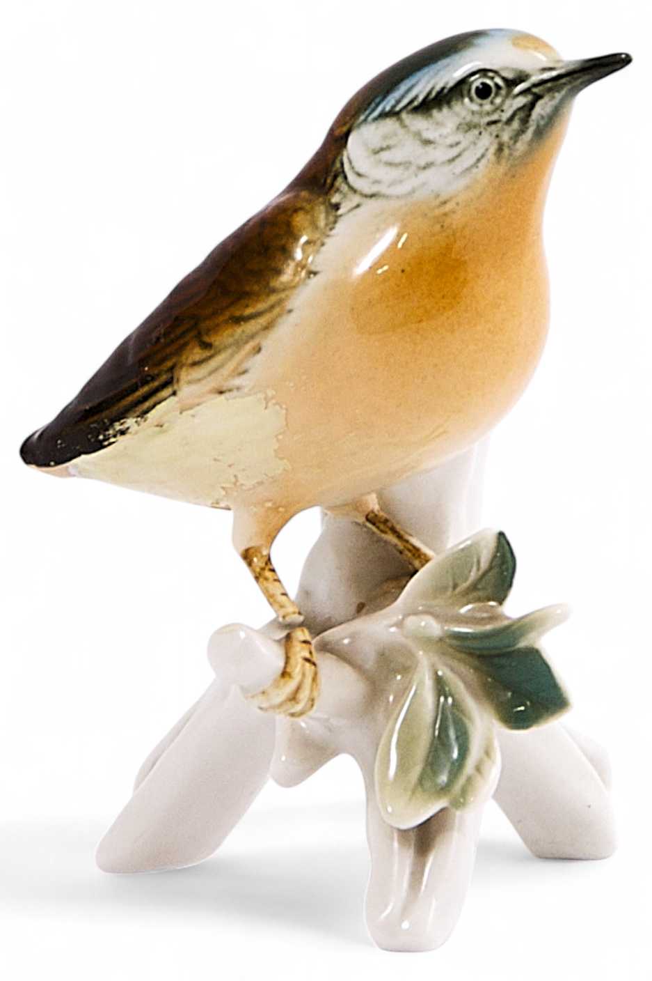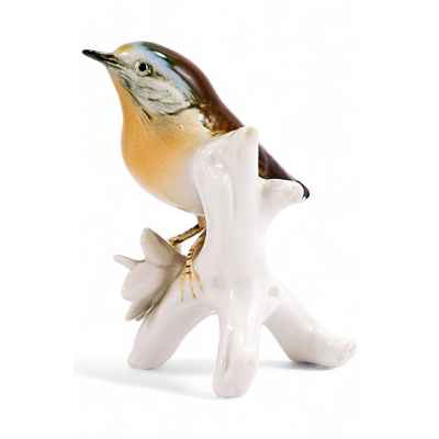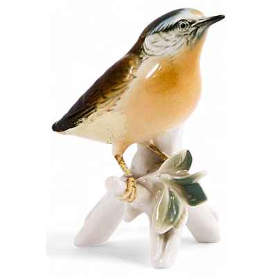 Фарфоровая скульптура, предположительно изображающая крапивника, представляет собой яркий образец немецкой малой пластики послевоенного периода. Птица изображена в характерной для этого вида позе, сидящей на раздвоенной ветке дерева с приподнятой грудкой и обращённым вверх клювом. Скульптура выполнена с высокой степенью натуралистичности, при этом сохраняет декоративную стилизацию, характерную для продукции середины XX века.