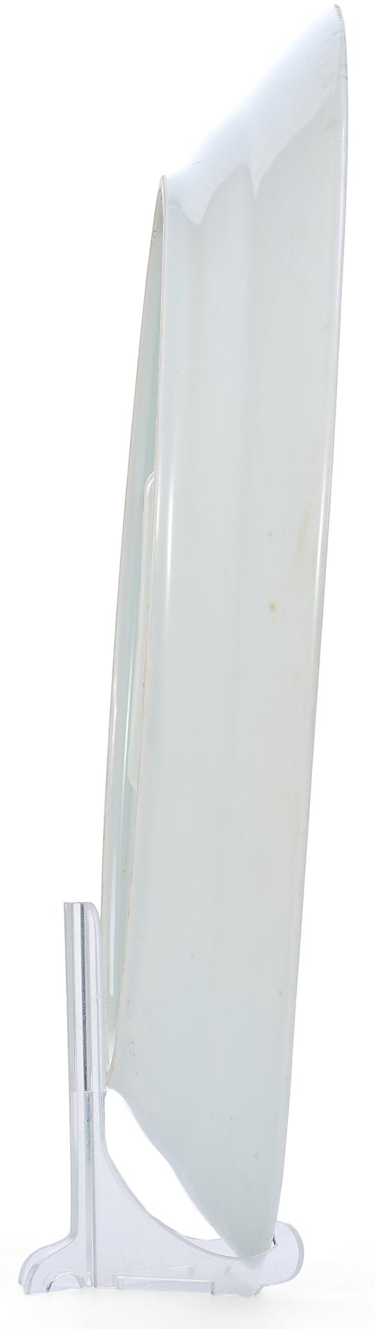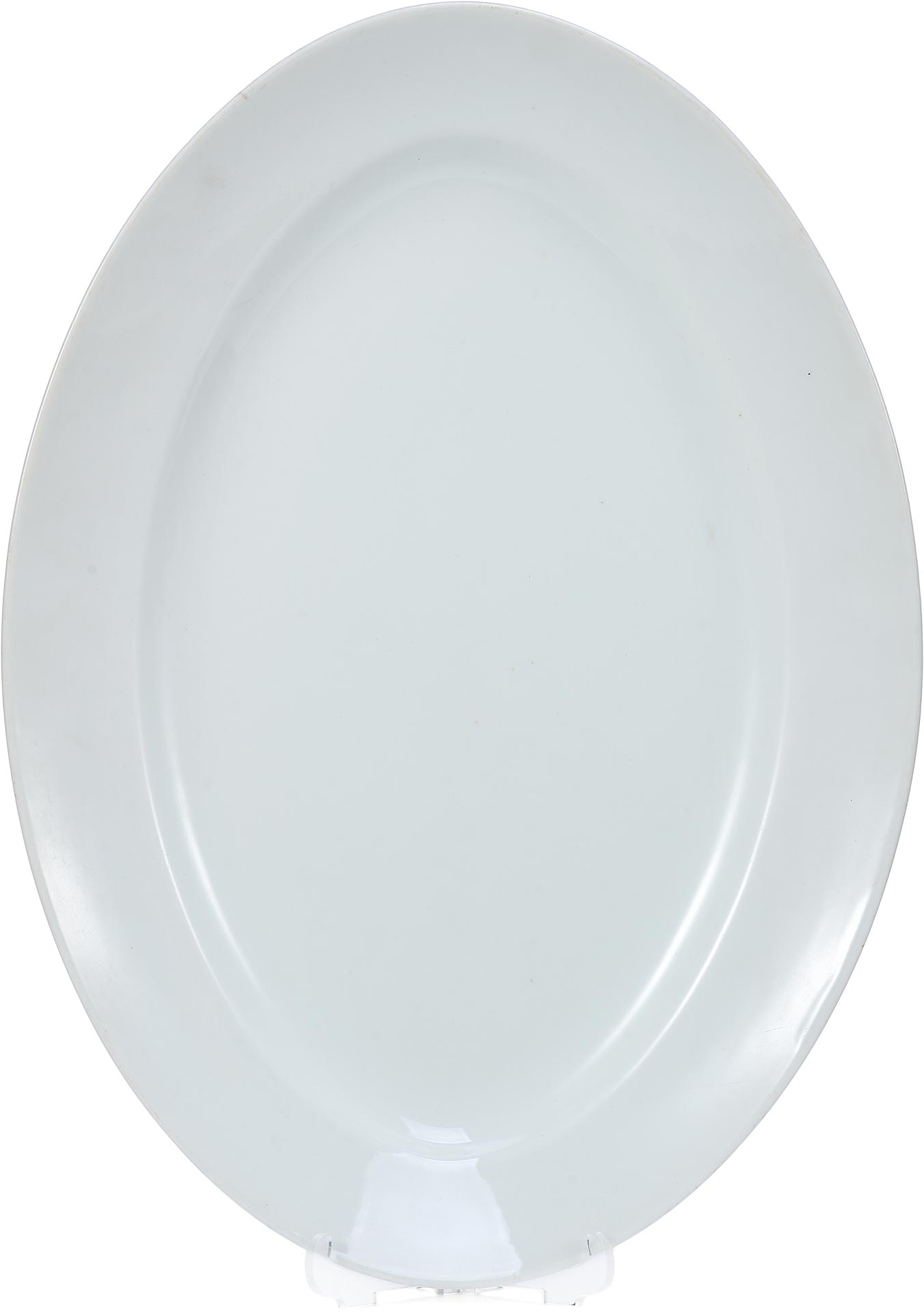 Изготовлено блюдо из фарфора, с покрытием глазурью, что придаёт ему ровную, слегка блестящую поверхность и подчеркивает сдержанную элегантность формы. Простота оформления является характерной чертой столовой посуды официальных сервизов позднеимперского времени, ориентированной не только на утилитарную функцию, но и на соответствие придворному этикету и эстетике.
