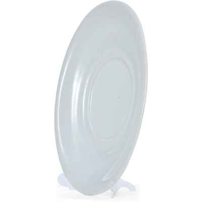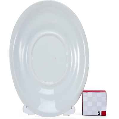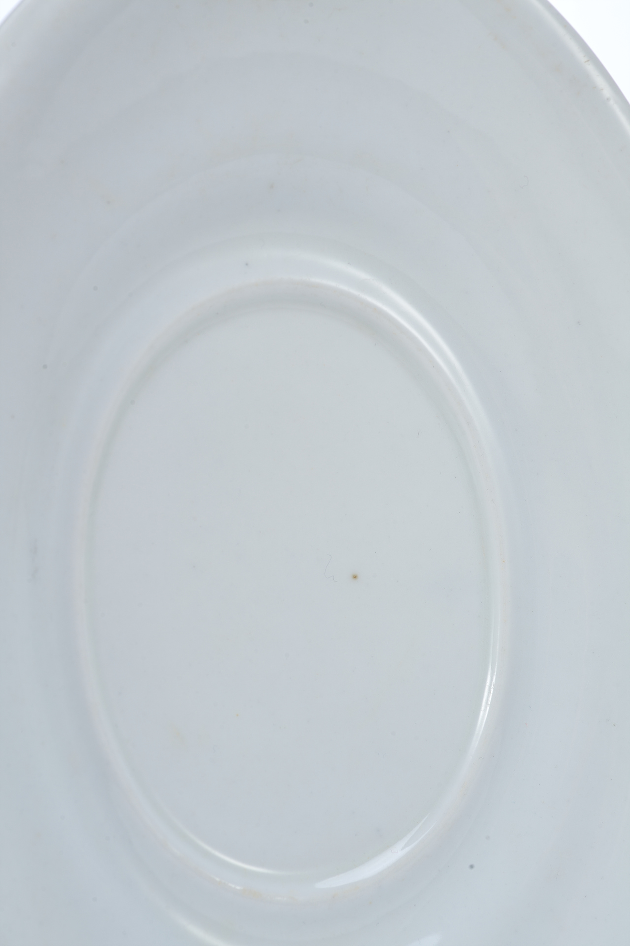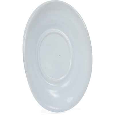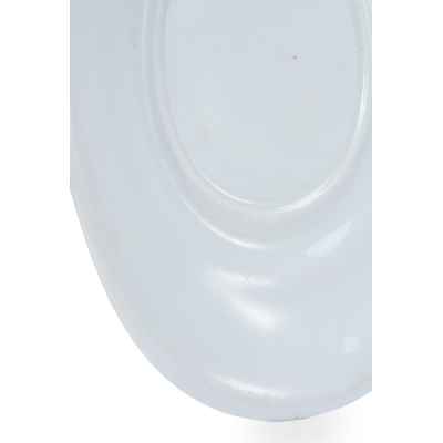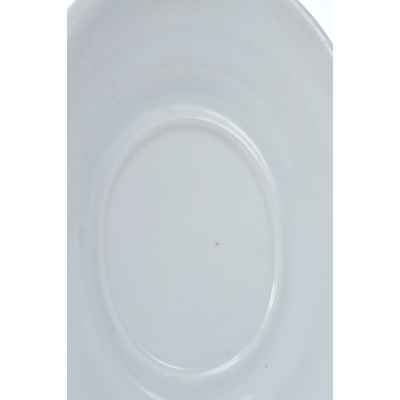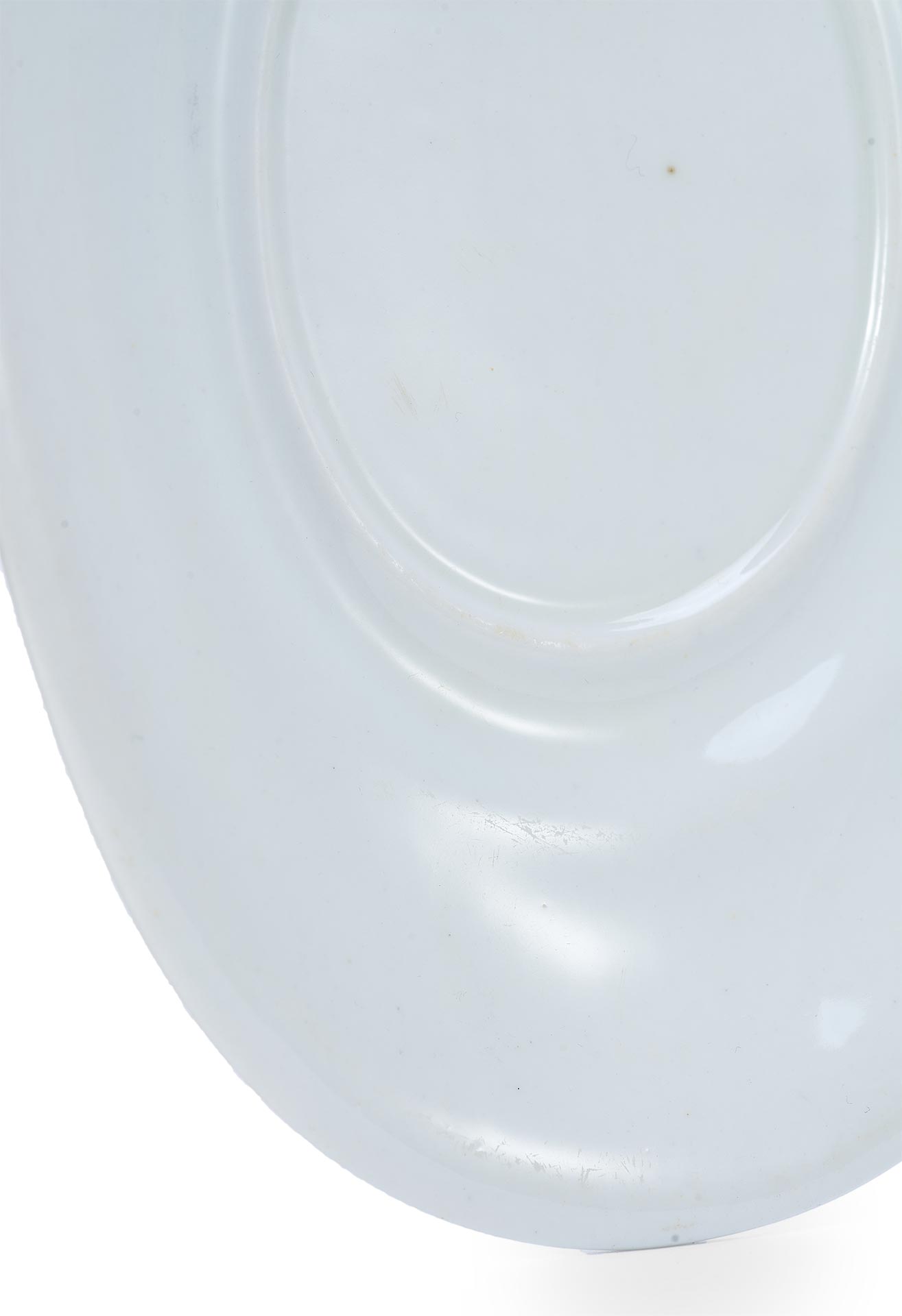 Изготовлено блюдо из фарфора, с покрытием глазурью, что придаёт ему ровную, слегка блестящую поверхность и подчеркивает сдержанную элегантность формы. Простота оформления является характерной чертой столовой посуды официальных сервизов позднеимперского времени, ориентированной не только на утилитарную функцию, но и на соответствие придворному этикету и эстетике.