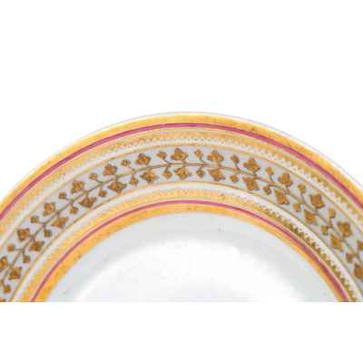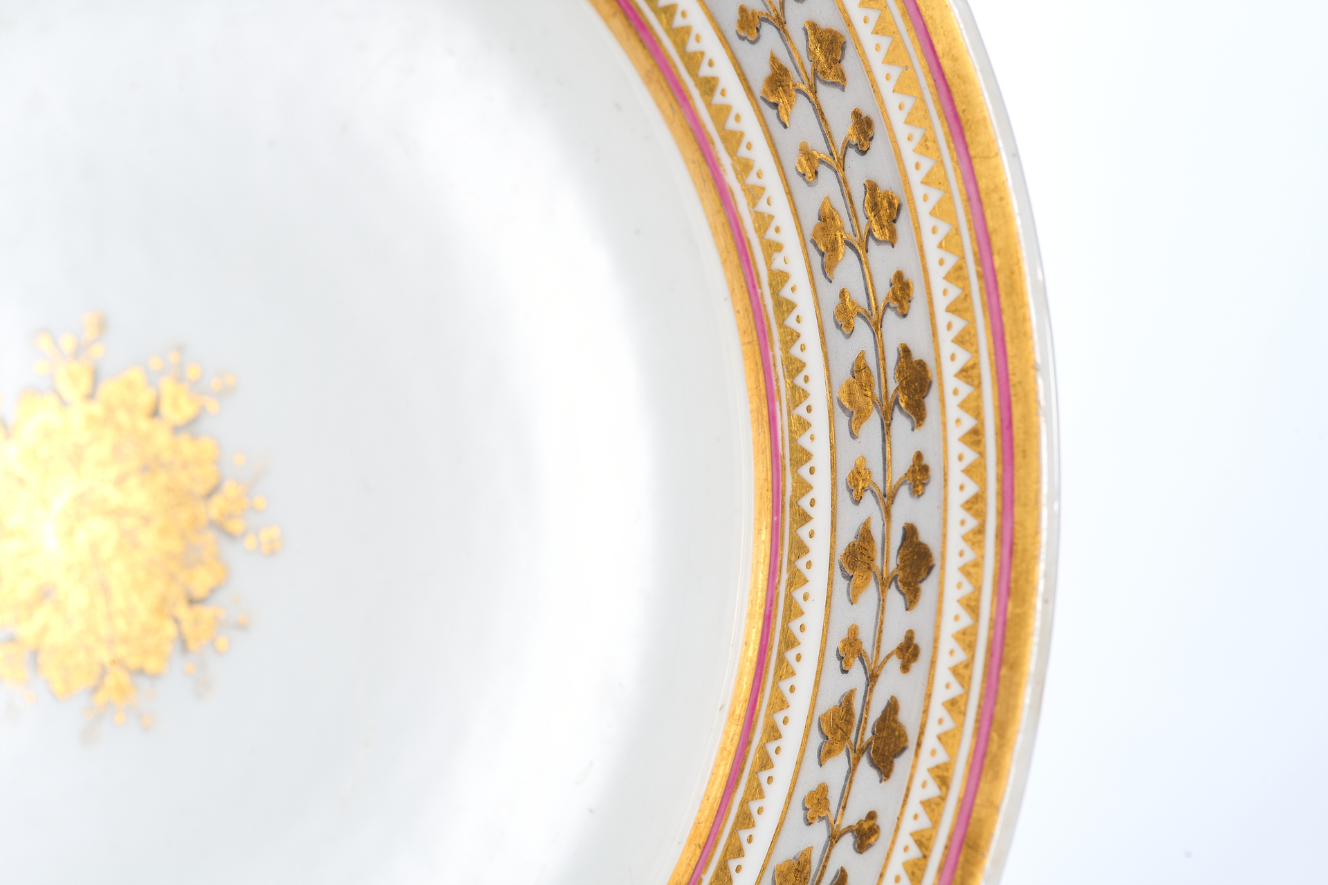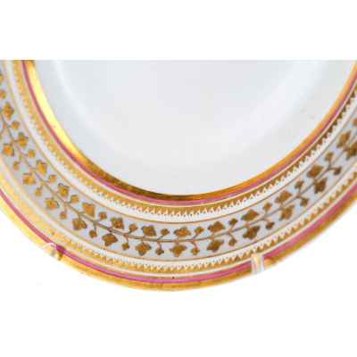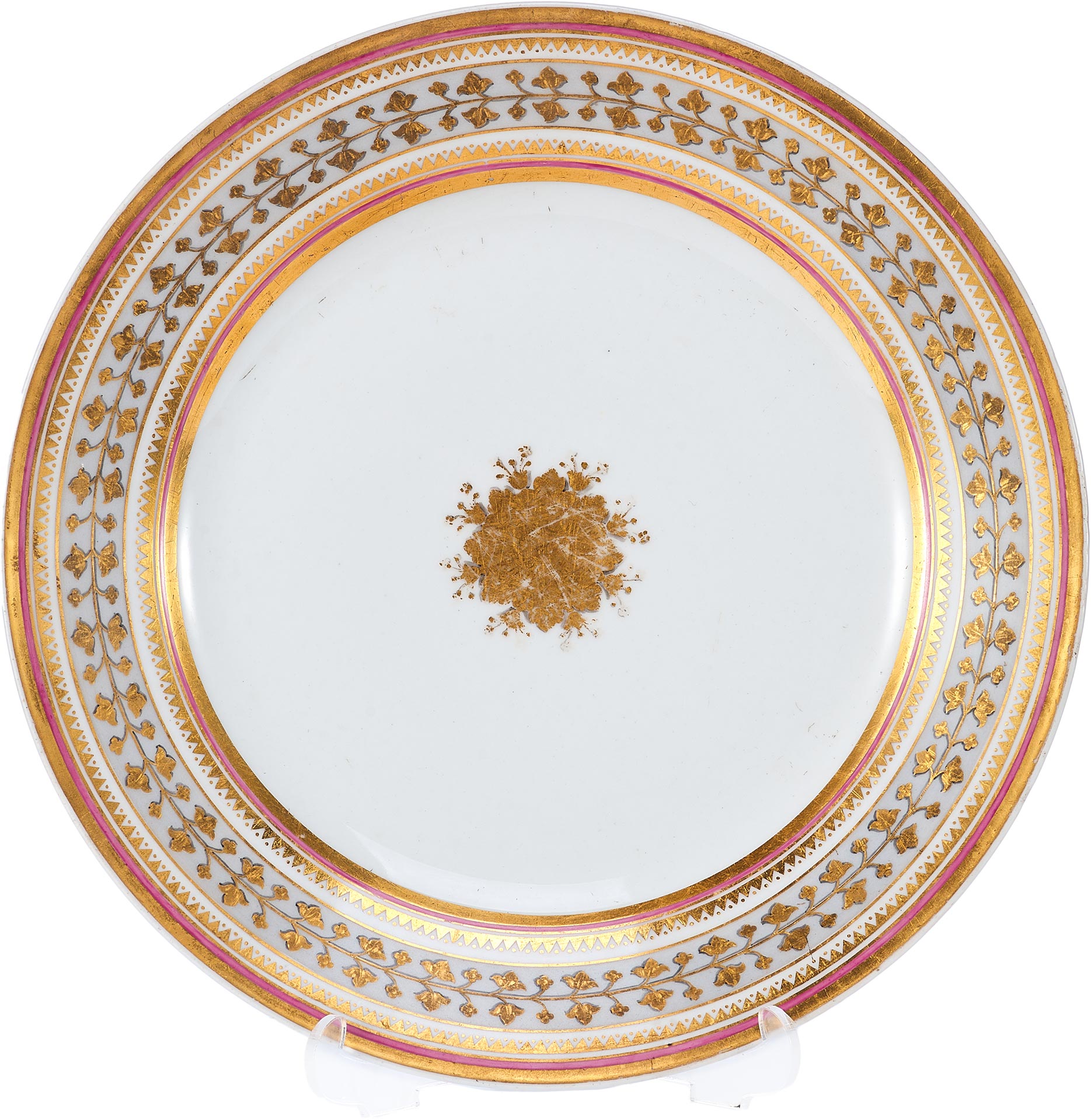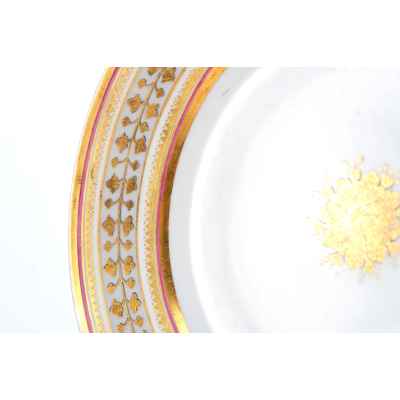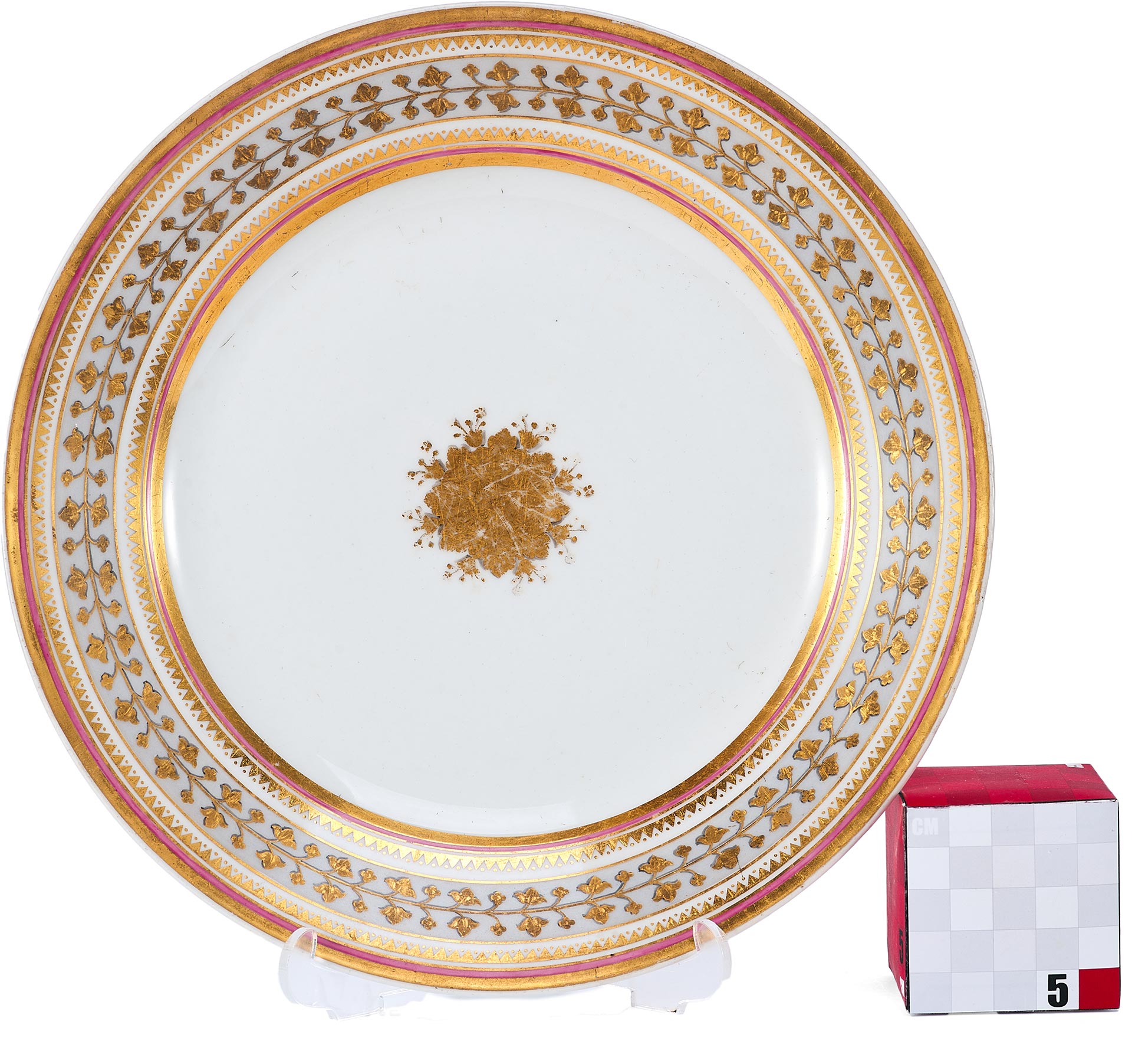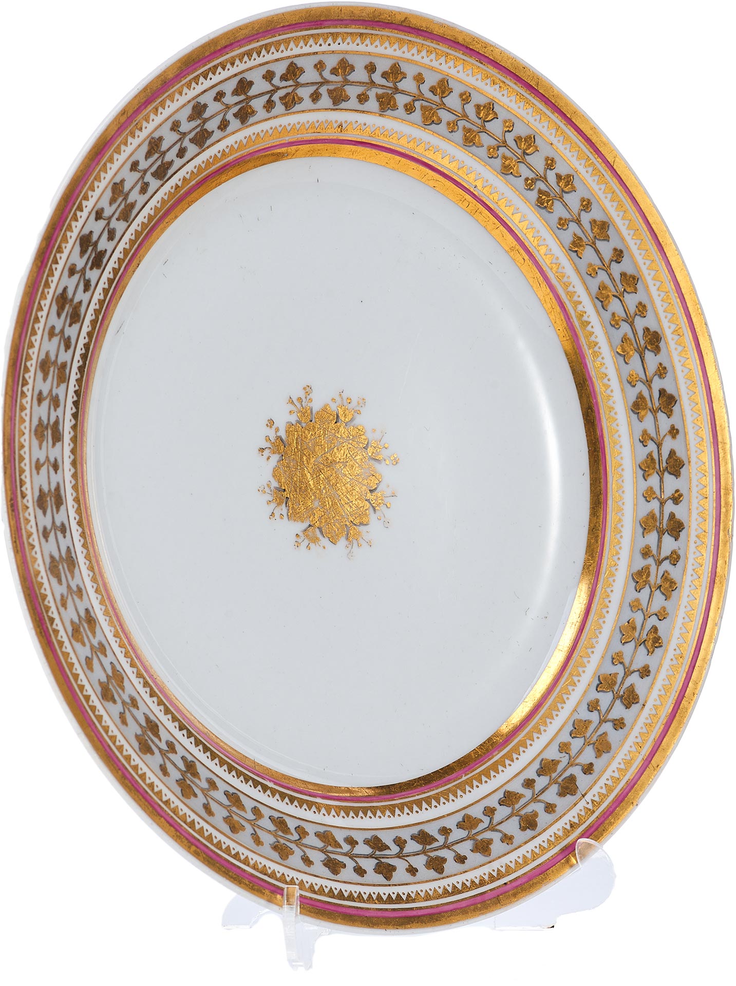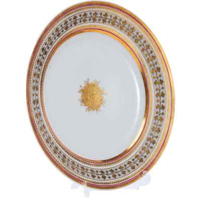 Тарелка из Дворцового сервиза времен Императора Александра III, изготовленная в 1890 году на Императорском фарфоровом заводе в Санкт-Петербурге, является редким образцом русского императорского фарфора.
