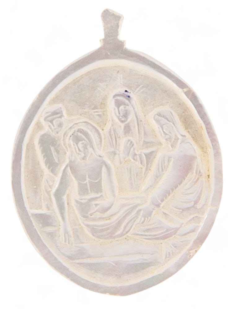 “Тайная вечеря”, “Крещение Господа Иисуса Христа в Иордане” и другие религиозные сюжеты. Перламутровые раковины-иконки производили православные арабы Святой Земли в Вифлееме, преимущественно для русских паломников, вплоть до революции в России в октябре 1917 года.