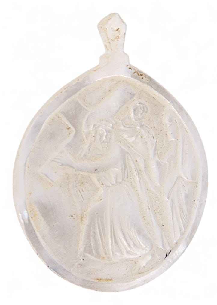 Евангельскими темами таких перламутровых иконок были: “Вознесение Господне”, “Тайная вечеря”, “Крещение Господа Иисуса Христа в Иордане” и другие религиозные сюжеты. Перламутровые раковины-иконки производили православные арабы Святой Земли в Вифлееме, преимущественно для русских паломников, вплоть до революции в России в октябре 1917 года.