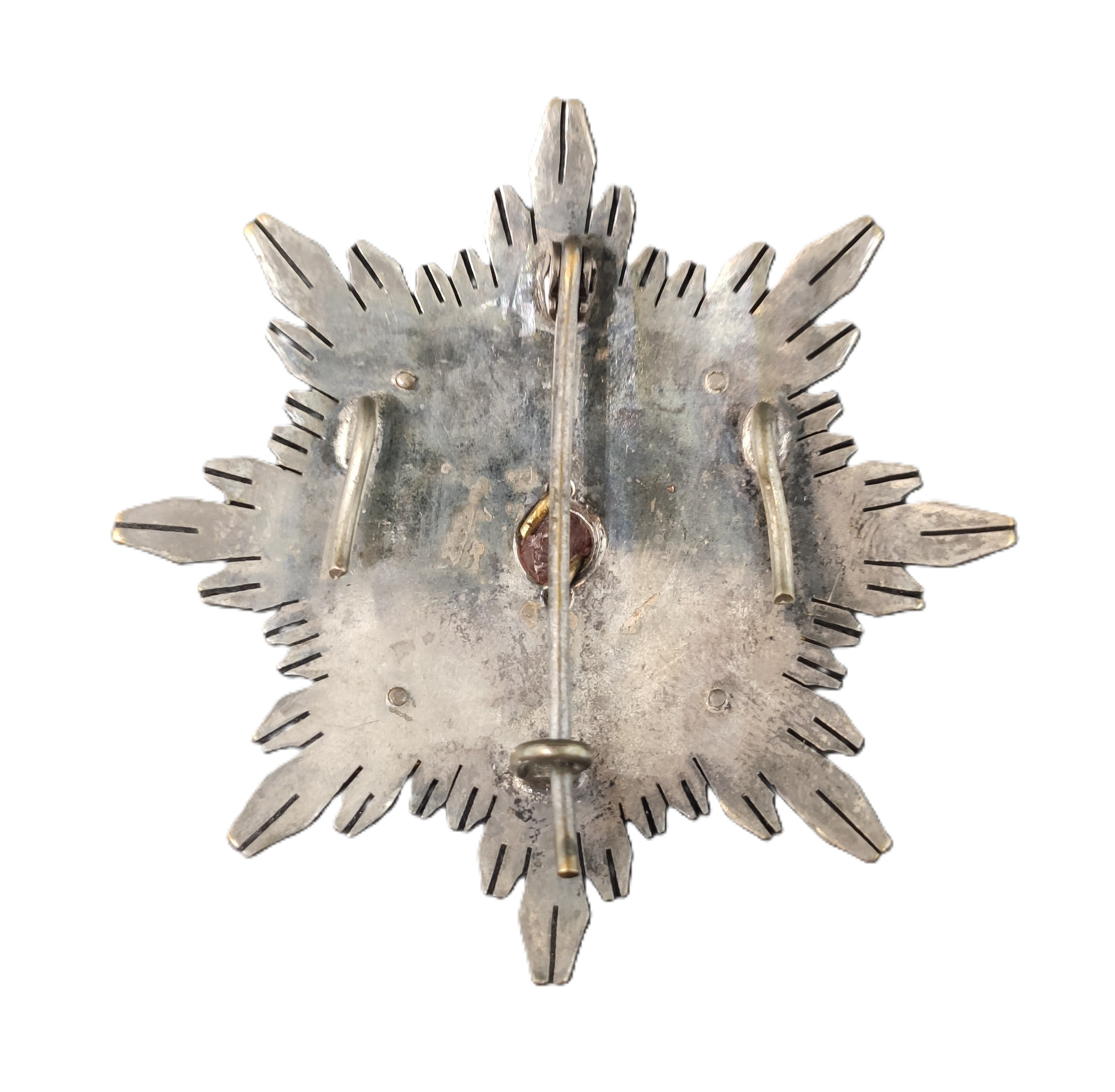 На звезде ордена укреплены изображения львов и крепостных башен - символы Кастилии и символ Леона. Над крестом изображена корона католических королей. Эти признаки свидетельствуют о том, что данные знаки ордена принадлежат к периоду правления генерала Франсиско Франко - 1938-1975.