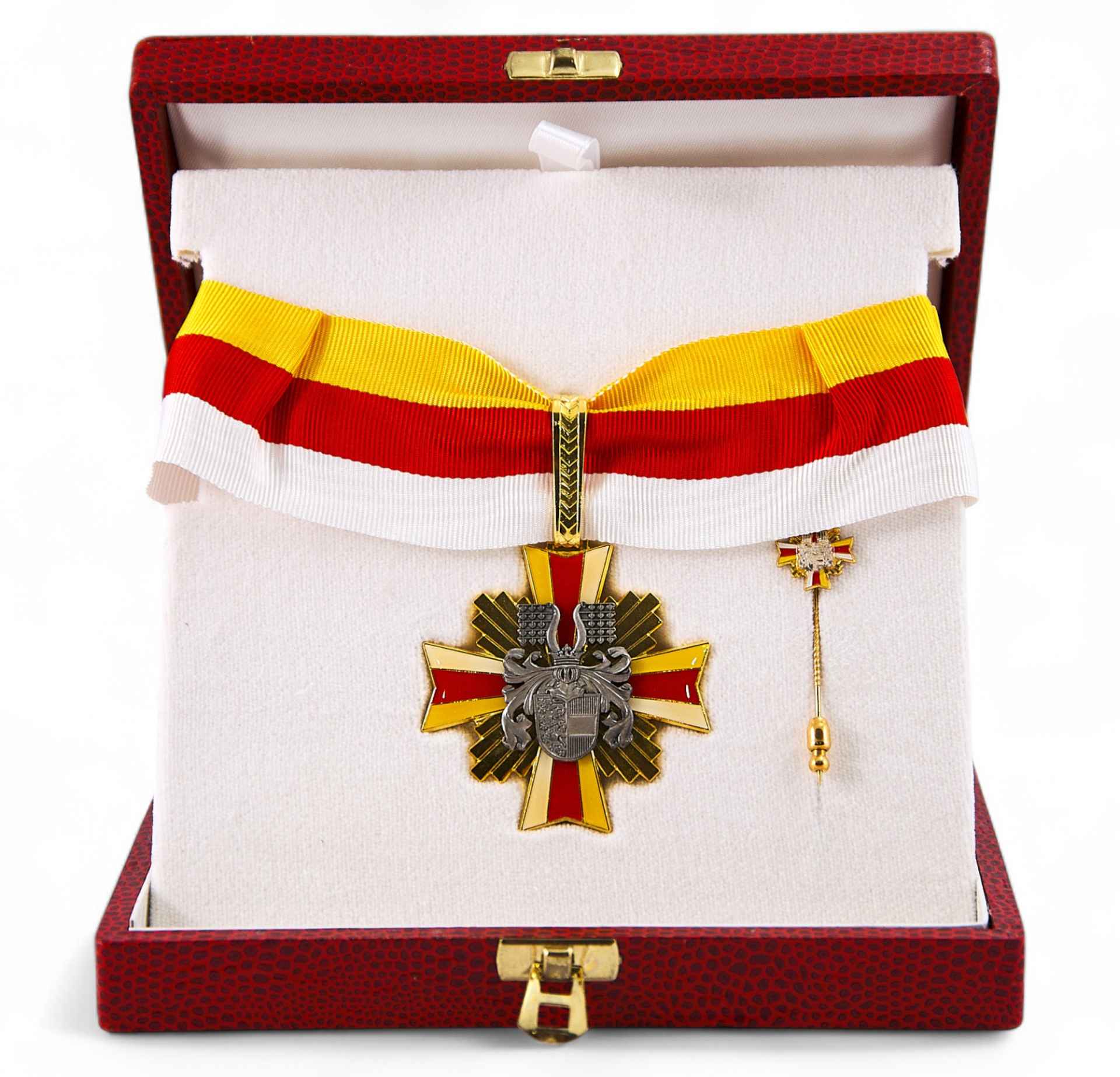 Награда за заслуги в Каринтии в настоящее время состоит из трех степеней: большая золотая звезда, большая звезда и крест. Представленный на экспертизу знак является наивысшим по иерархии степеней.