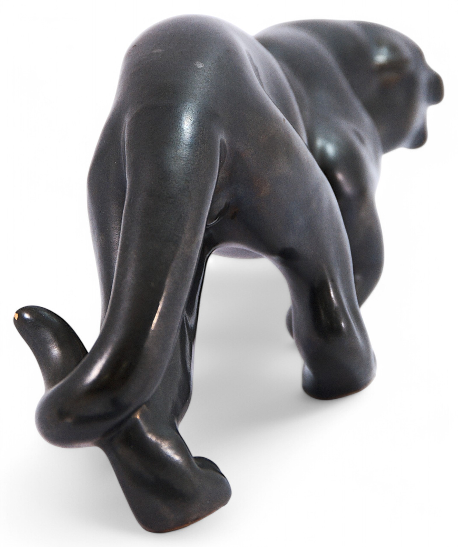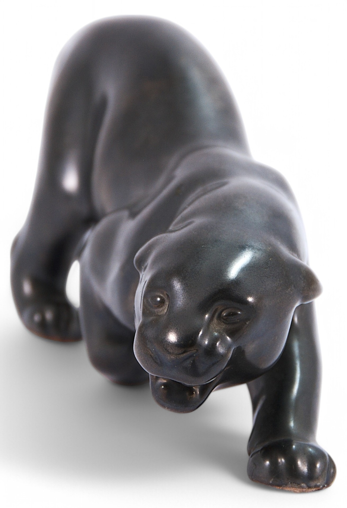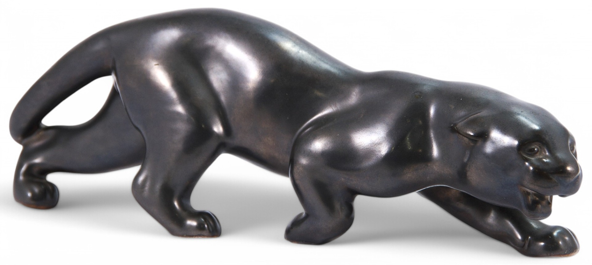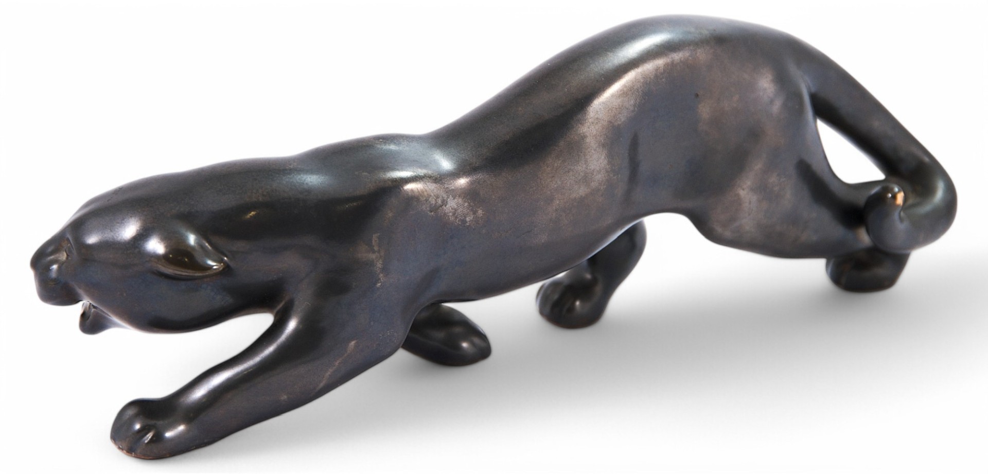 Скульптура крадущейся пантеры. Скульптура представляет собой пример пластики периода ар-деко, когда тема животного мира Африки была довольно популярной в Европе. На кончике хвоста скол глазури.