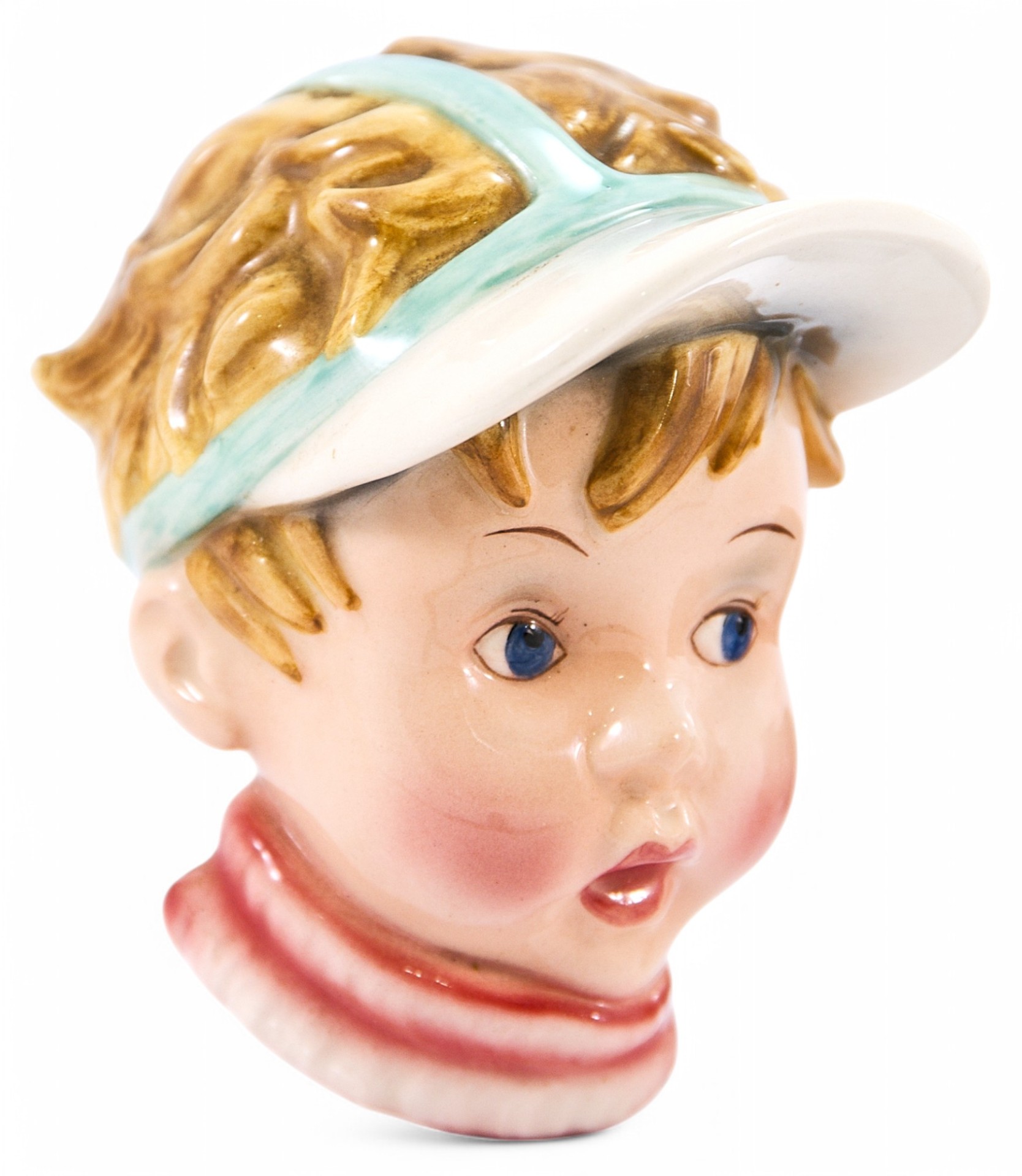 Панно Голова мальчика в голубом козырьке фаянс, Thomasch Австрия 1950-60е гг. Н-10,5 см. Ausführung Keramikwerkstätte Thomasch-Sierndorf 1950-1960 гг