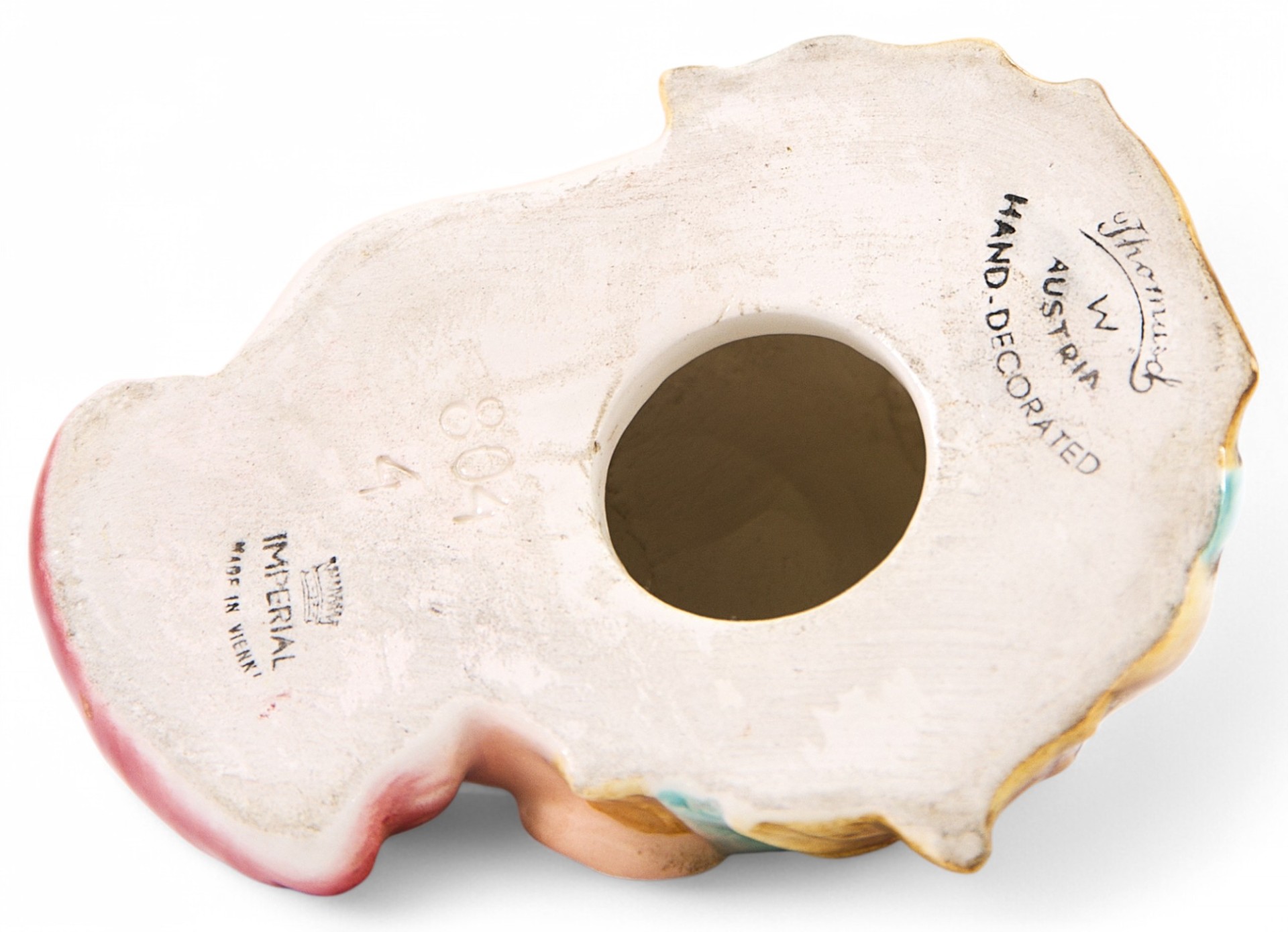 Произведение относится продукции керамической мастерской Keramikwerkstätte Thomasch, Вильгельма Томаша. На обороте имеется клеймо «Thomasch/W/AUSTRIA» периода 1950-х гг. Keramikwerkstätte Thomasch Вильгельм Томаш создал в начале 1920-х гг. вместе с другими художниками мастерской Голдшейдера, такими как Dakon, Knörlein, Larroux, Lavergne, Lorenzi, Podaný, Schlamm и несколькими коллекционерами свою небольшую мастерскую по производству художественной керамики, изготавливая керамические «маски» танцоров, детей, животных и проч, в 1920-х гг. В 1926 г. он приобрел новое помещение в Сирндорфе (Siemdorf), Нижняя Австрия Вскоре он начал производить вазы, чашки, кружки и другую аналогичную продукцию, которая тоже выполнялась на высоком художественном уровне. После окончания Второй Мировой войны производство продолжилось. В составе мастерской присутствовало около 60 сотрудников. Это была одна из самых крупных мастерских в регионе. Вильгельм Томаш умер в 1965 г. Его жена Анна, сын Хервиг и брат Франц Вогингер оставили производство в 1970 г. и бизнес был закрыт.