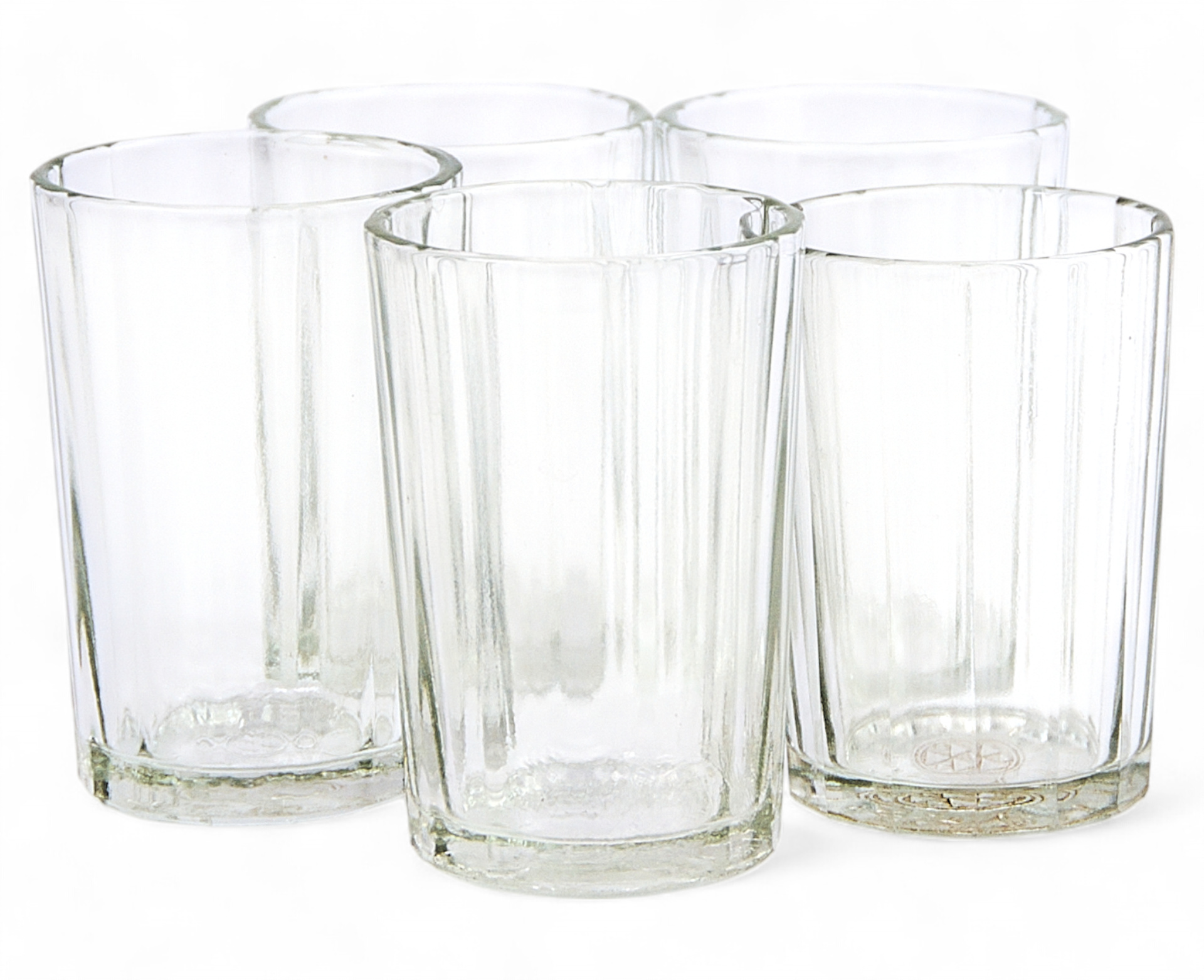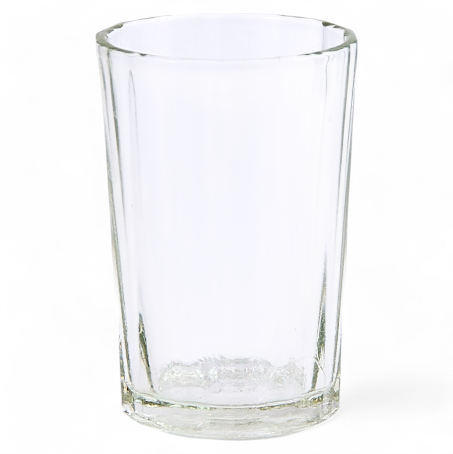 Этот комплект граненых стопок был изготовлен в СССР в 1950-х годах, в БССР, и представляет собой классический пример стеклянного производства того времени. Каждая стопка выполнена с граненой огранкой, которая, помимо декоративного эффекта, улучшала прочность стекла, делая его устойчивым к повреждениям. Граненые стаканы и стопки традиционно использовались для крепких напитков, таких как водка, и были неотъемлемой частью советской сервировки.