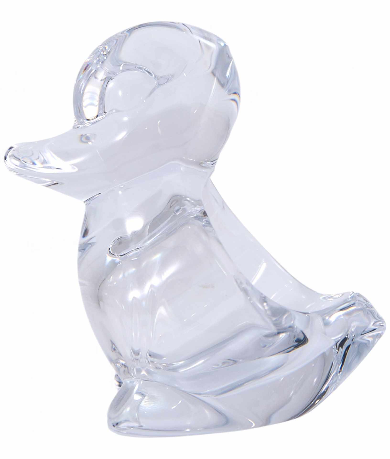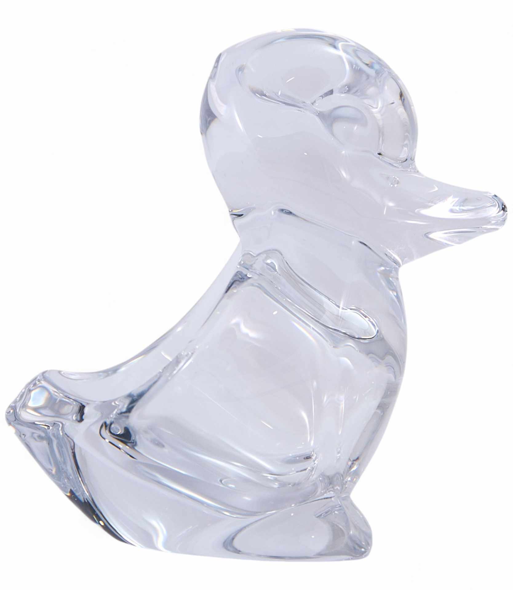 Статуэтка - держатель для сигар из литого стекла в форме утёнка. Фигурка отлита на основе работы 1950-х гг. скульптора Auguste Houillon. Auguste Houillon (1885-1954) - мастер-скульптор из школы Нанси. Он был мастером по стеклу, гравером, скульптором, арт-директором ’’Cristallerie де Нанси” в 1920 гг. ’’ART VANNES FRANCE" — французская фирма по производству
