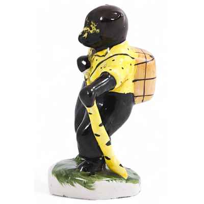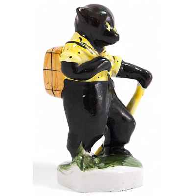 Скульптура бурого медведя, идущего с коробом за плечами и посохом в лапе. Скорее всего, скульптура создана по мотивам русской ародной сказки «Маша и медведь» Клейма производителя отсутствуют. ародной сказки «Маша и медведь»