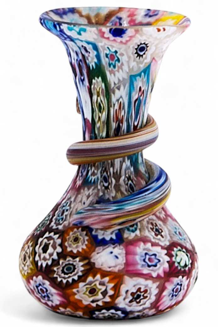 Ваза из мозаичного стекла Mille fíori Мурано ХХ в. Н-7,7 см. Мурано ХХ век