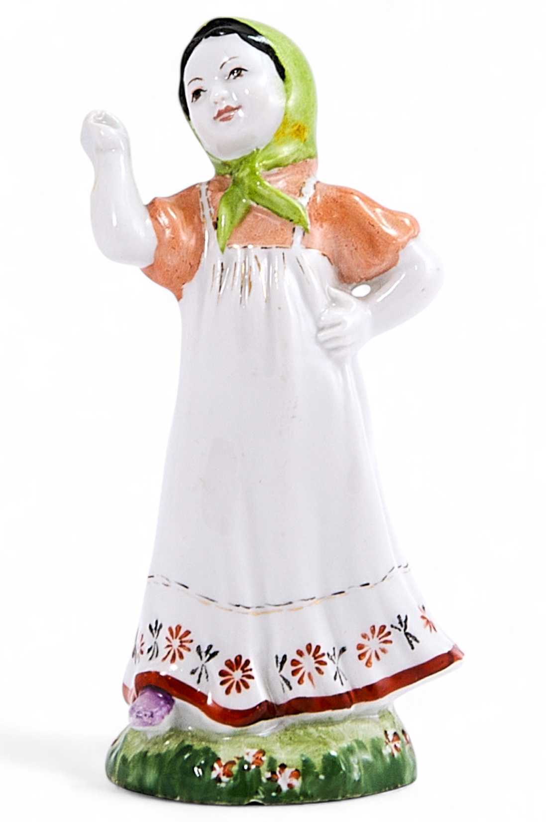 Фарфоровая скульптура «Юная плясунья». На донышке синее надглазурное клеймо Ленинградского фарфорового завода им. Ломоносова, периода 1950-х гг. Авторы скульптуры: Столбова Галина Сергеевна (1908-1996) - советский скульптор. В 1926 г. окончила Промышленно-художественный институт в Вятке. В 1927 - 1937 годах училась в Институте живописи, скульптуры и архитектуры им. И.Е. Репина. Занималась у скульпторов А.Т. Матвеева, В.А. Синайского. Работала на ЛФЗ с 1949 по 1965 г.