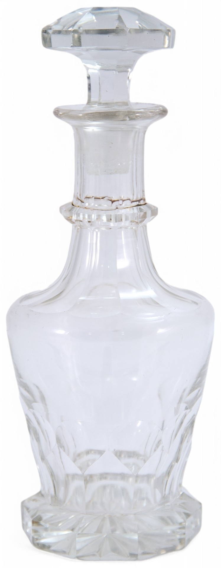Графин, выполненный из бесцветного стекла, изготовлен в Богемии в конце XIX — начале XX века. Его высота составляет 22 см. Графин имеет элегантную форму с конусовидным туловом, которое плавно сужается к горлу. Основание графина гранёное, что придаёт изделию дополнительную выразительность. Пробка выполнена в виде большого огранённого камня, что придаёт графину торжественность и завершённость.