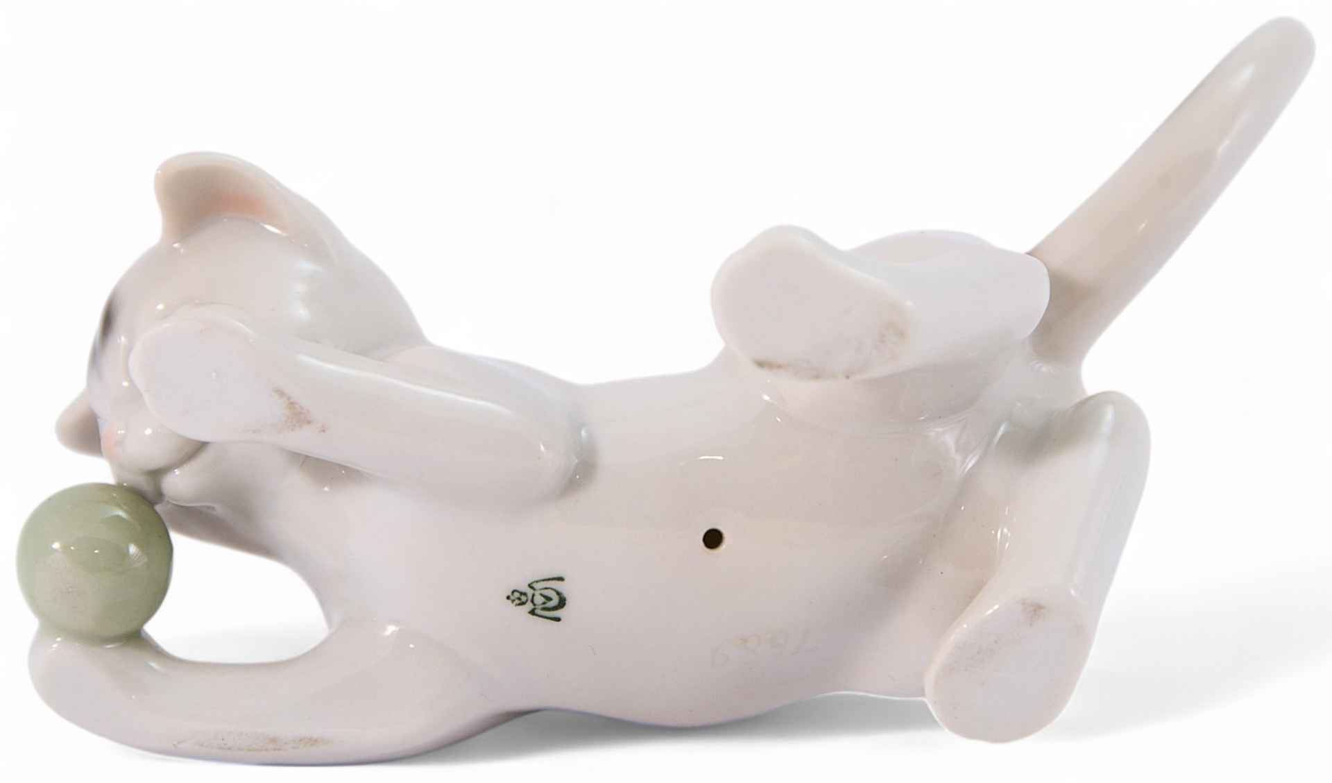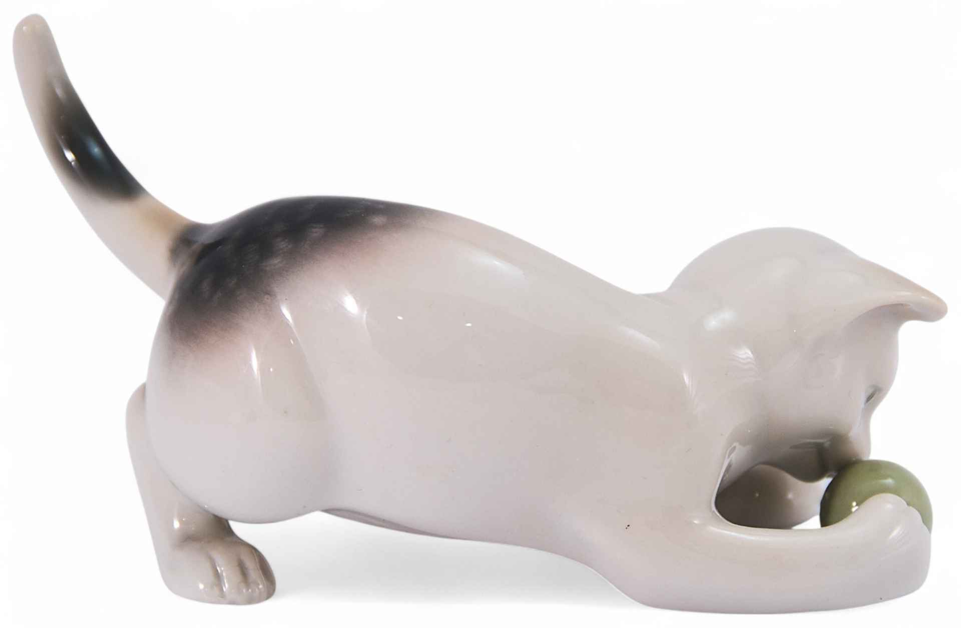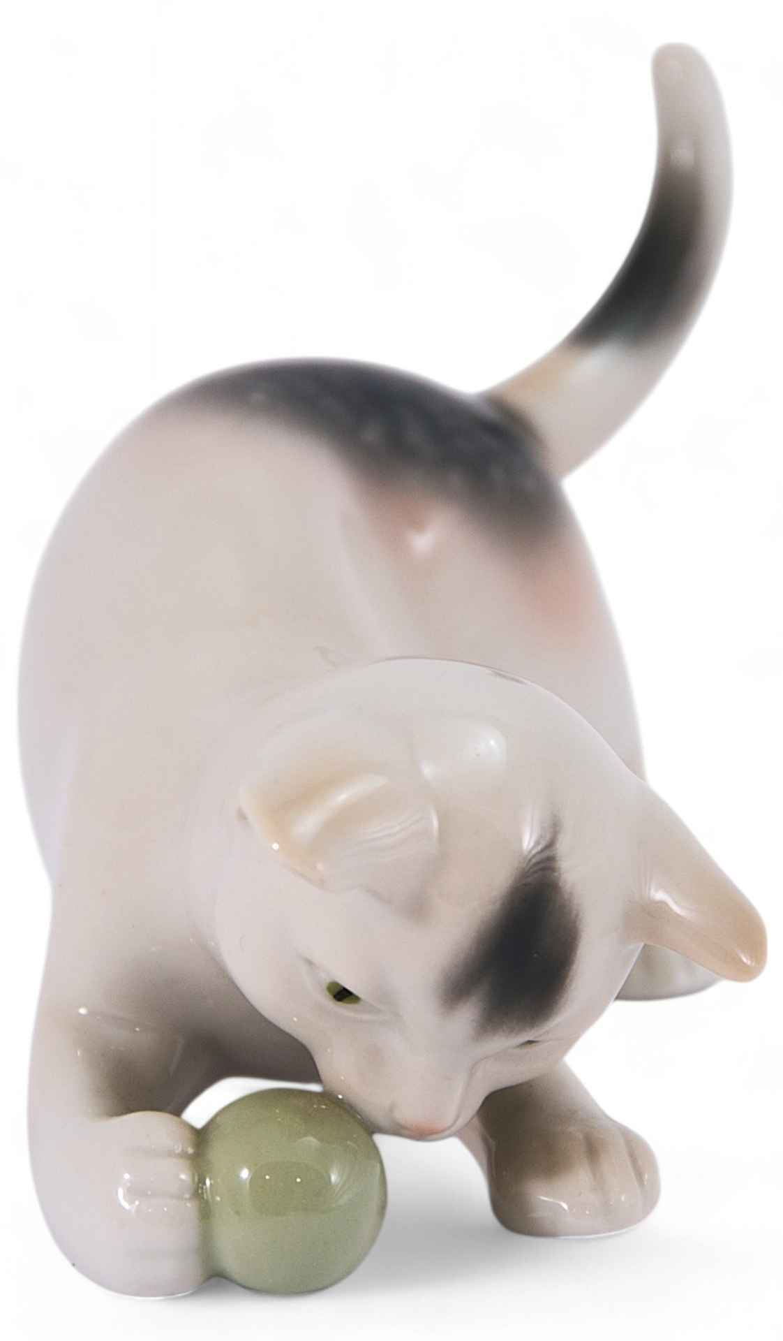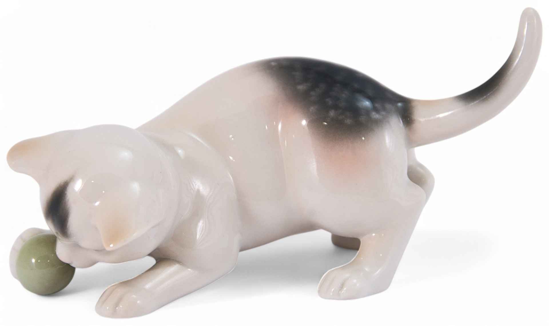 Скульптура Котенок с мячикомфарфор, Metzler & Ortloff Германия 1923-72 гг. 12,5х6,6 см. Metzler & Ortloff, Тюрингия, Германия 1923-1972 гг