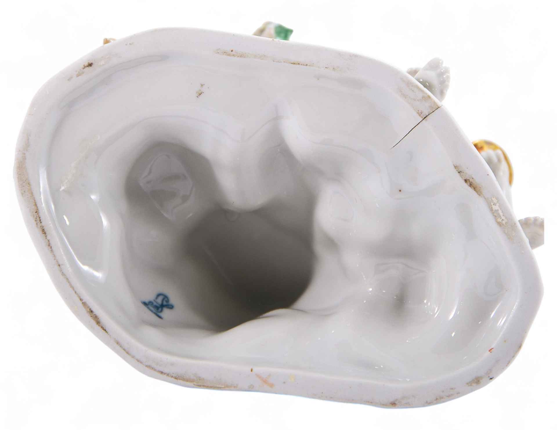 Изделие маркировано клеймом фарфоровой мануфактуры Sächsische Porzellan-Manufaktur Dresden, действовавшей в Потсшаппеле (Германия). Основанная в 1872 году, мануфактура приобрела широкую известность в конце XIX — начале XX века под руководством Карла Августа Кунтцша. Продукция фабрики неоднократно выставлялась на престижных международных форумах, включая выставки в Брюсселе (1897) и Париже (1900), и отличалась непревзойдённым качеством исполнения и стилистической утончённостью. С 1901 года предприятие использовало фирменный знак SP Dresden.