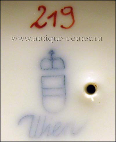 Время исполнения: после 1922 г. Место исполнения: Вена, АвстрияИсполнитель: фабрика «Аугартен» Материал: фарфор Техника исполнения: роспись надглазурнаяВысота: 5,5 см Основание: 5,5 х 4,5 см Сохранность хорошая.