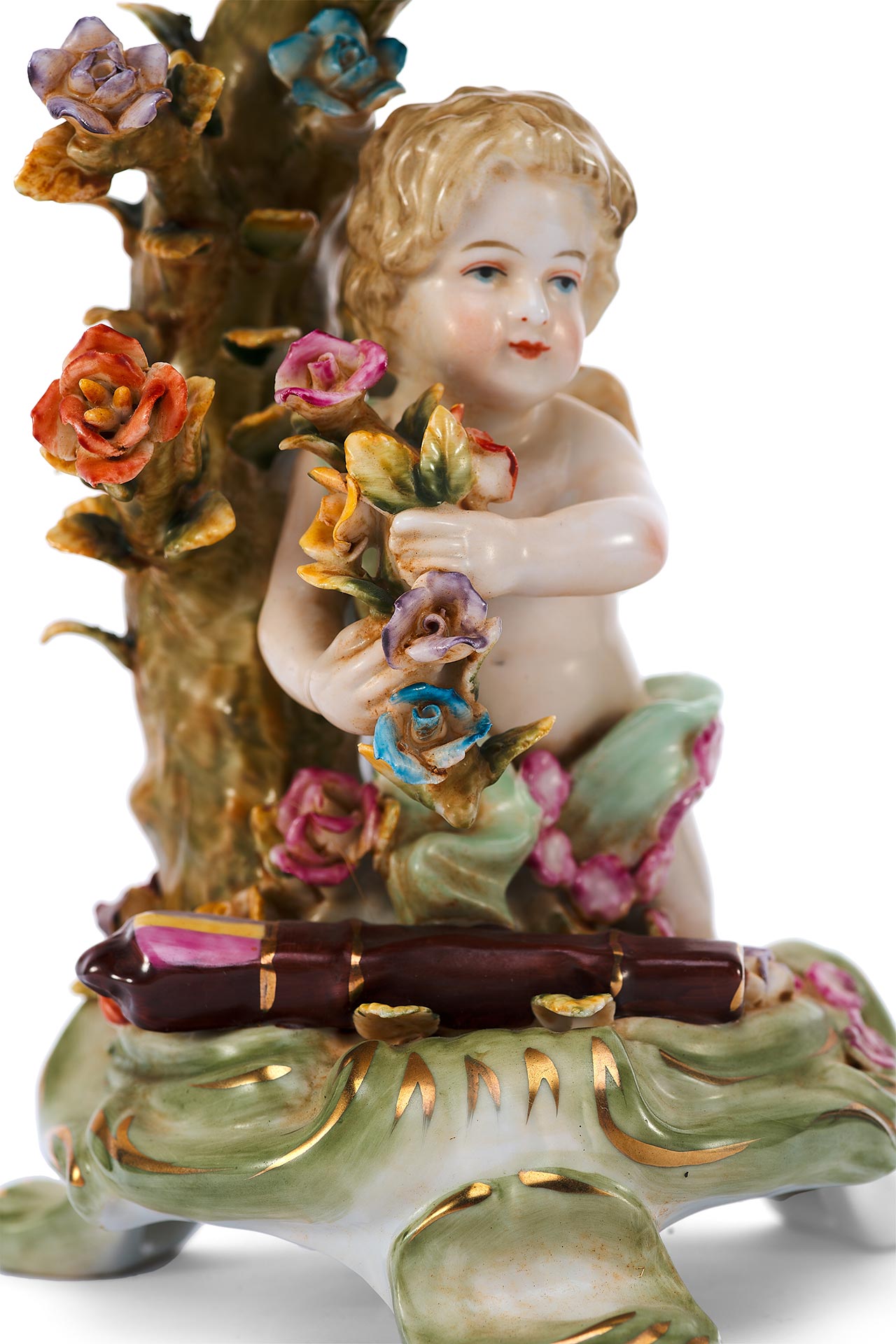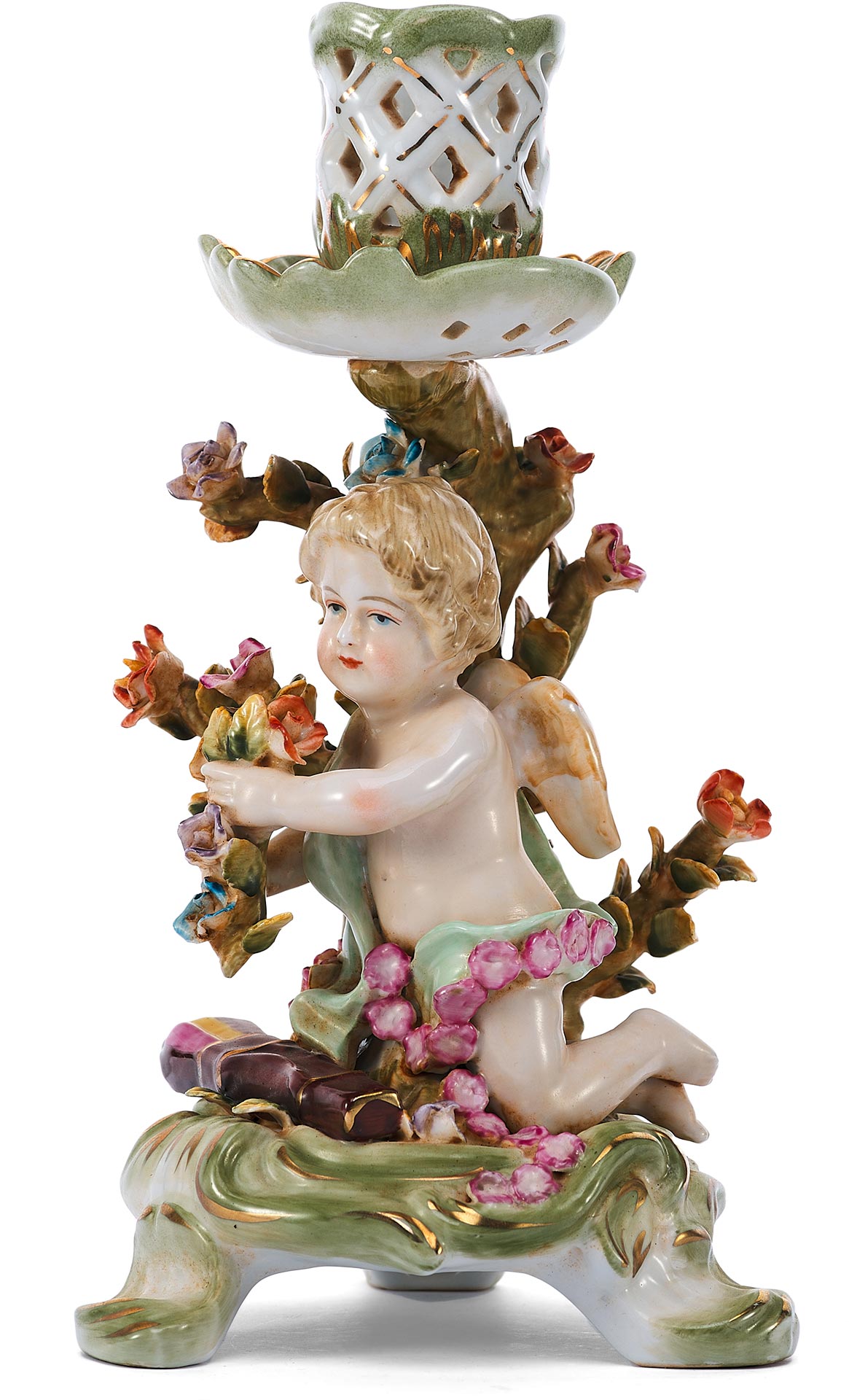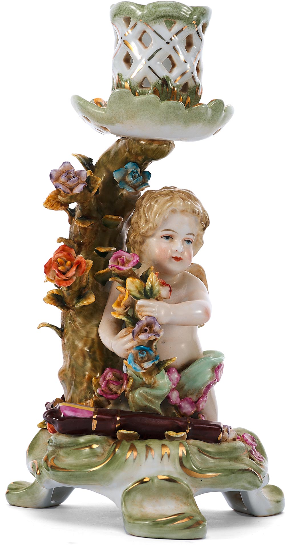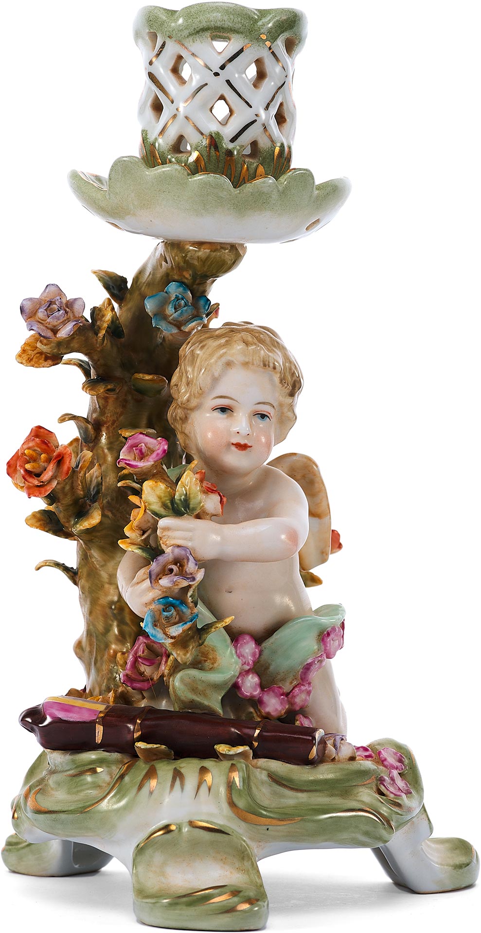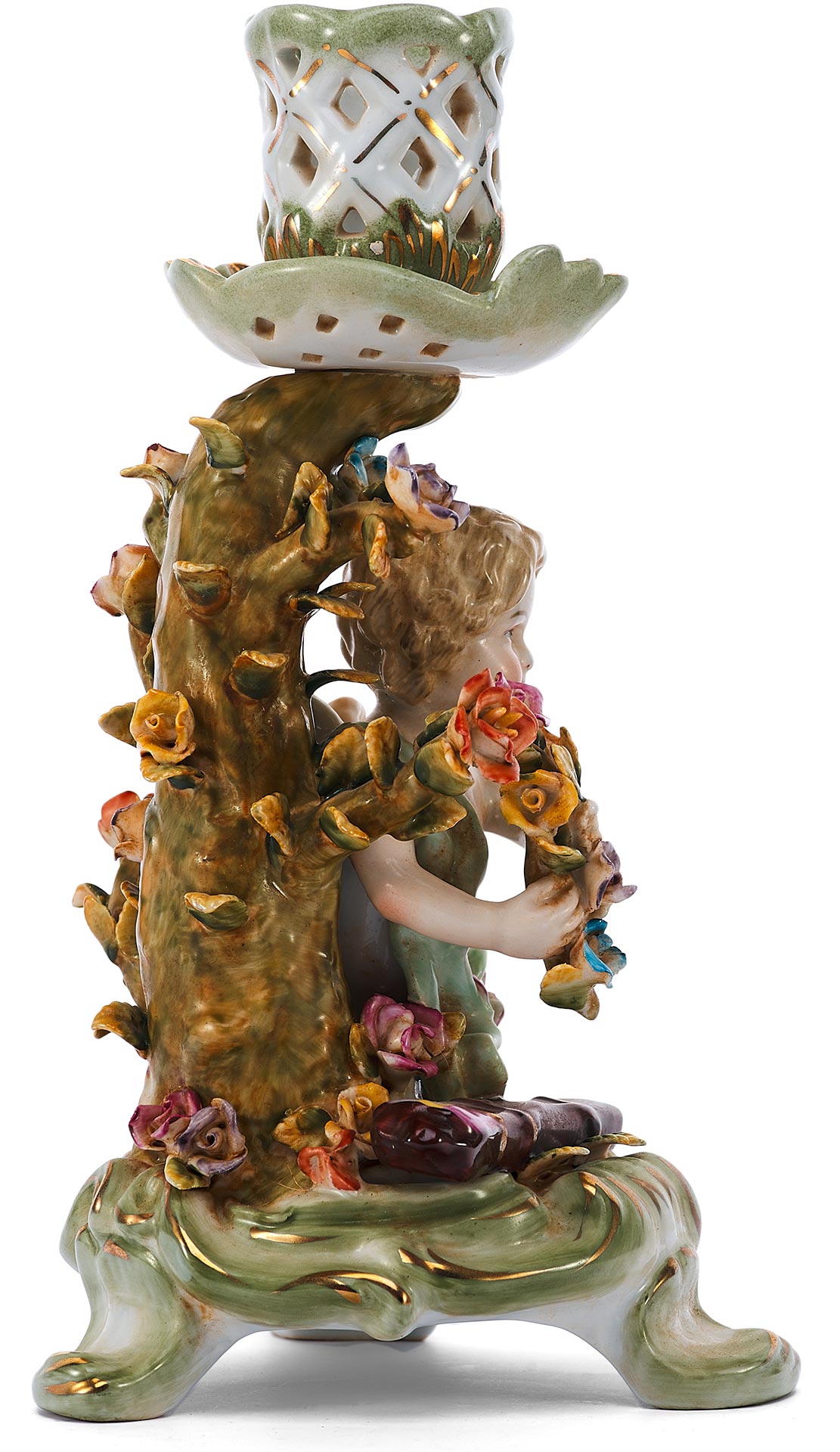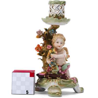 Фигурный подсвечник. В выполненный в виде скульптурной композиции древнеримского бога любви Амура, сидящего у ствола