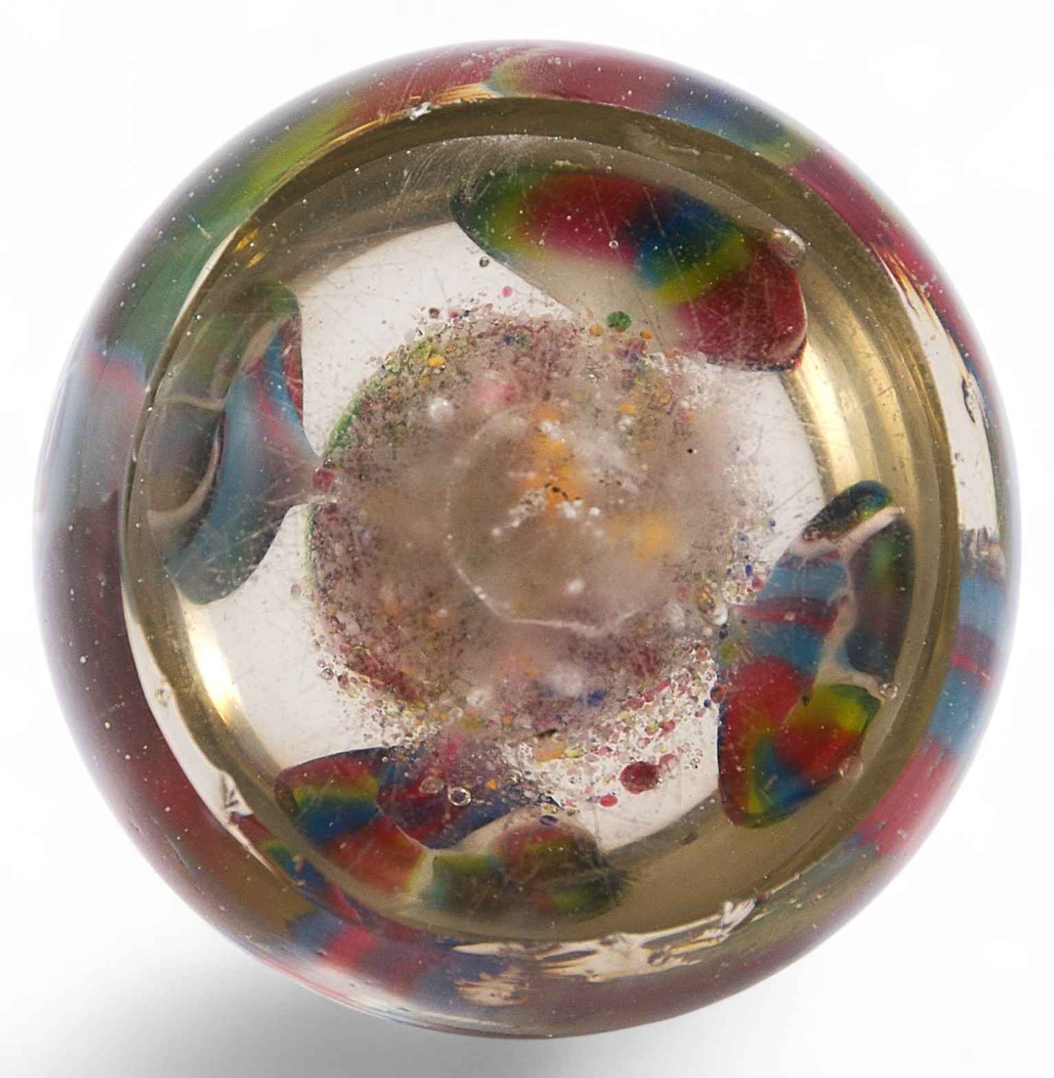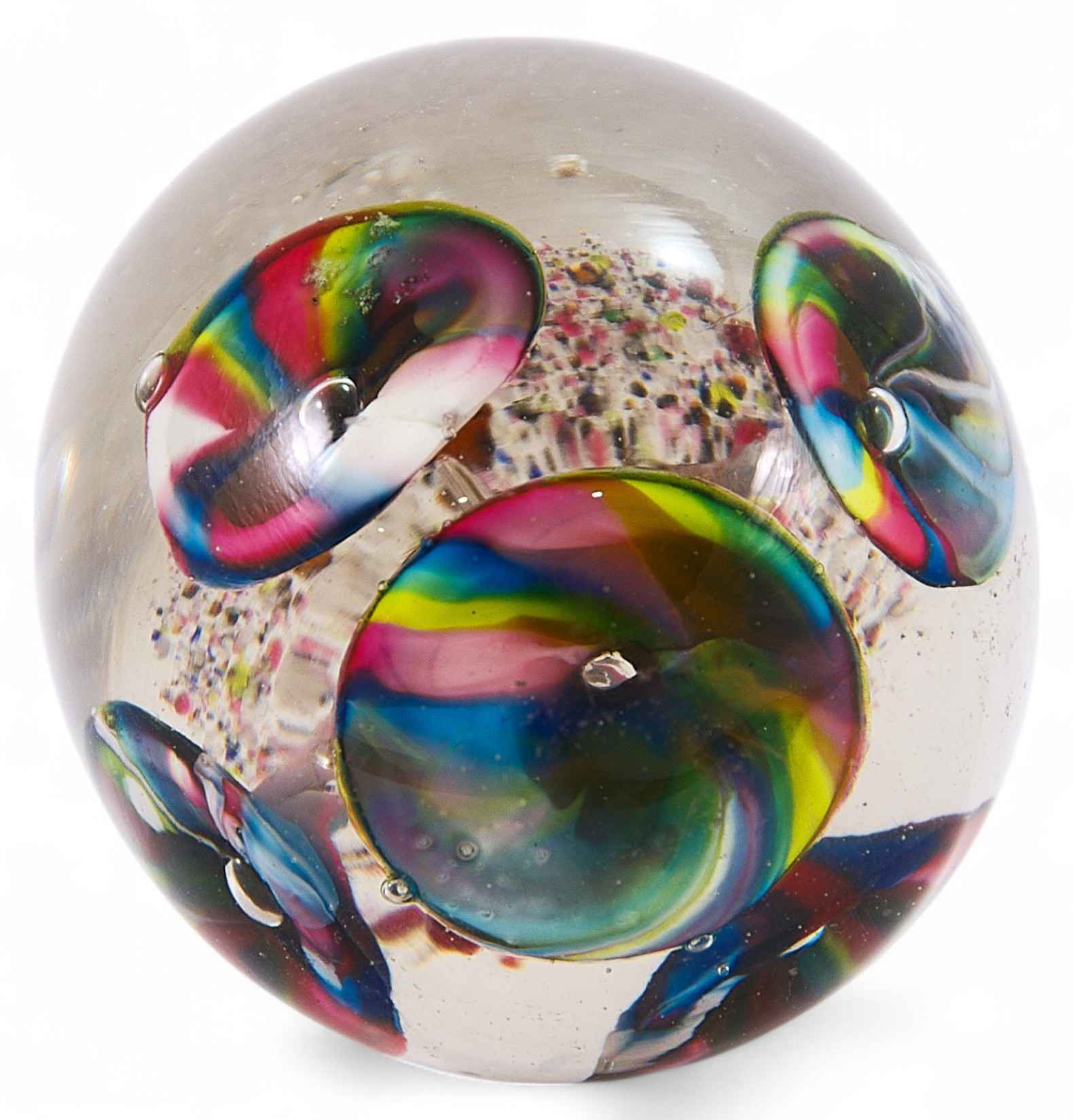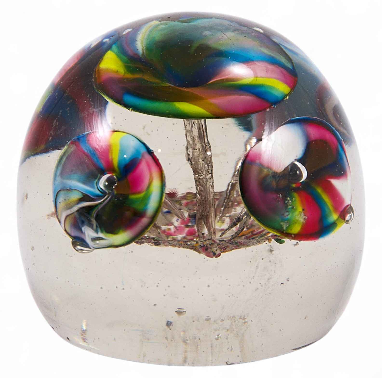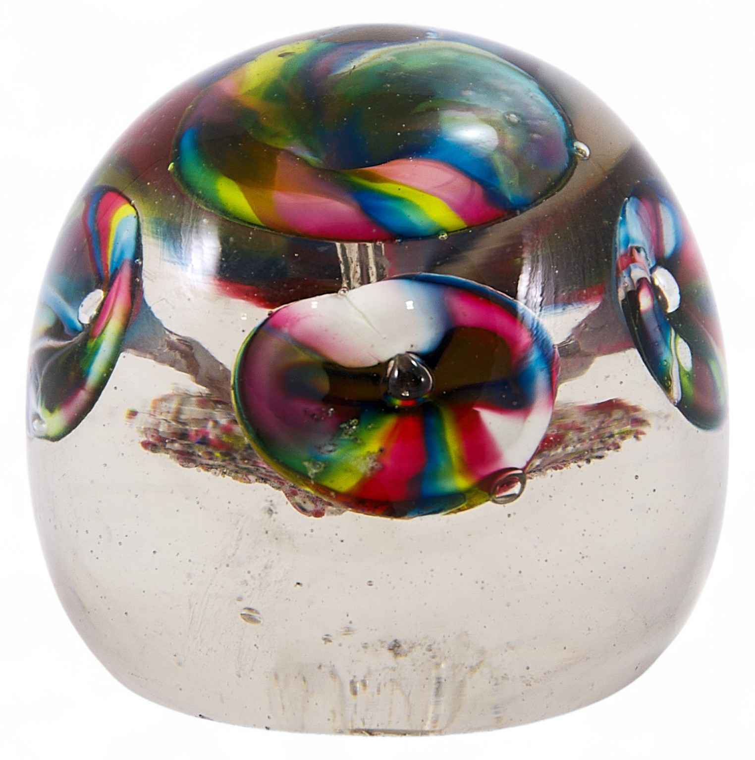 Пресс-папье представляет собой прозрачную стеклянную сферу с помещенными внутрь фигурными изображениями необычных цветов. Предмет отличается яркостью, неклассической трактовкой мотива букета и декоративностью. Пресс-папье из стекла начали изготавливать в XIX веке на острове Мурано и в Богемии; чуть позднее производство подобных предметов стало повсеместным по всей территории Европы, включая Россию, в силу своей привлекательности и необычности. В эпоху модерна, на рубеже XIX- XX вв., подобные вещи идеально выражали природную направленность стиля и его стремление к хрупким линиям и ярким цветам. Обычно пресс-папье используется не по своему прямому назначению, а в качестве декоративного элемента оформления стола. В настоящее время пресс-папье также стали желанным объектом для коллекционеров (в мире насчитывается свыше 200 000 коллекционеров пресс-папье), так как они чаще всего представляют собой целые произведения искусства.