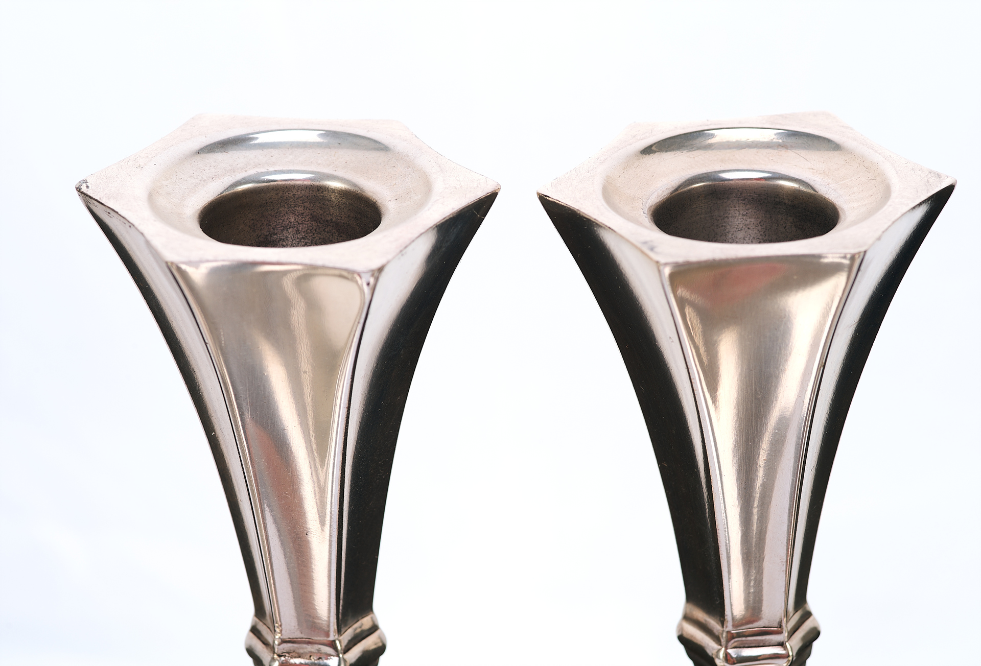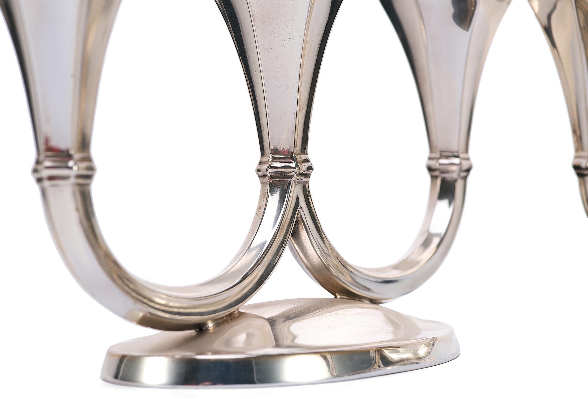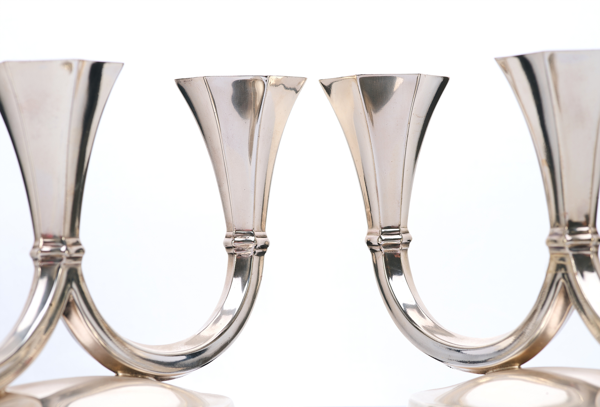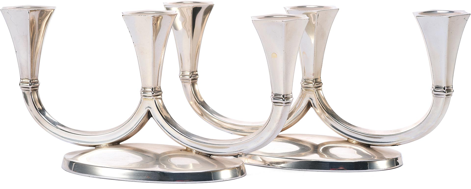 Канделябры отражают влияние ар-деко, с его тягой к геометризации форм, утончённой строгости и высокому качеству исполнения. Слегка скошенные грани гнёзд для свечей, сдержанная декоративность и обтекаемость форм придают этим предметам особое изящество, делая их как функциональными, так и эстетически ценными.