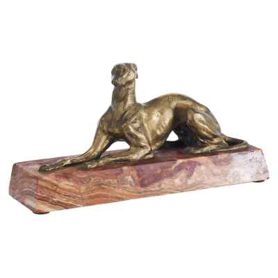 Основной материал — бронза, выполненная методом литья и покрытая патинированием для создания декоративного эффекта и защиты металла. Подставка изготовлена из мрамора, что характерно для подобных миниатюрных скульптур.