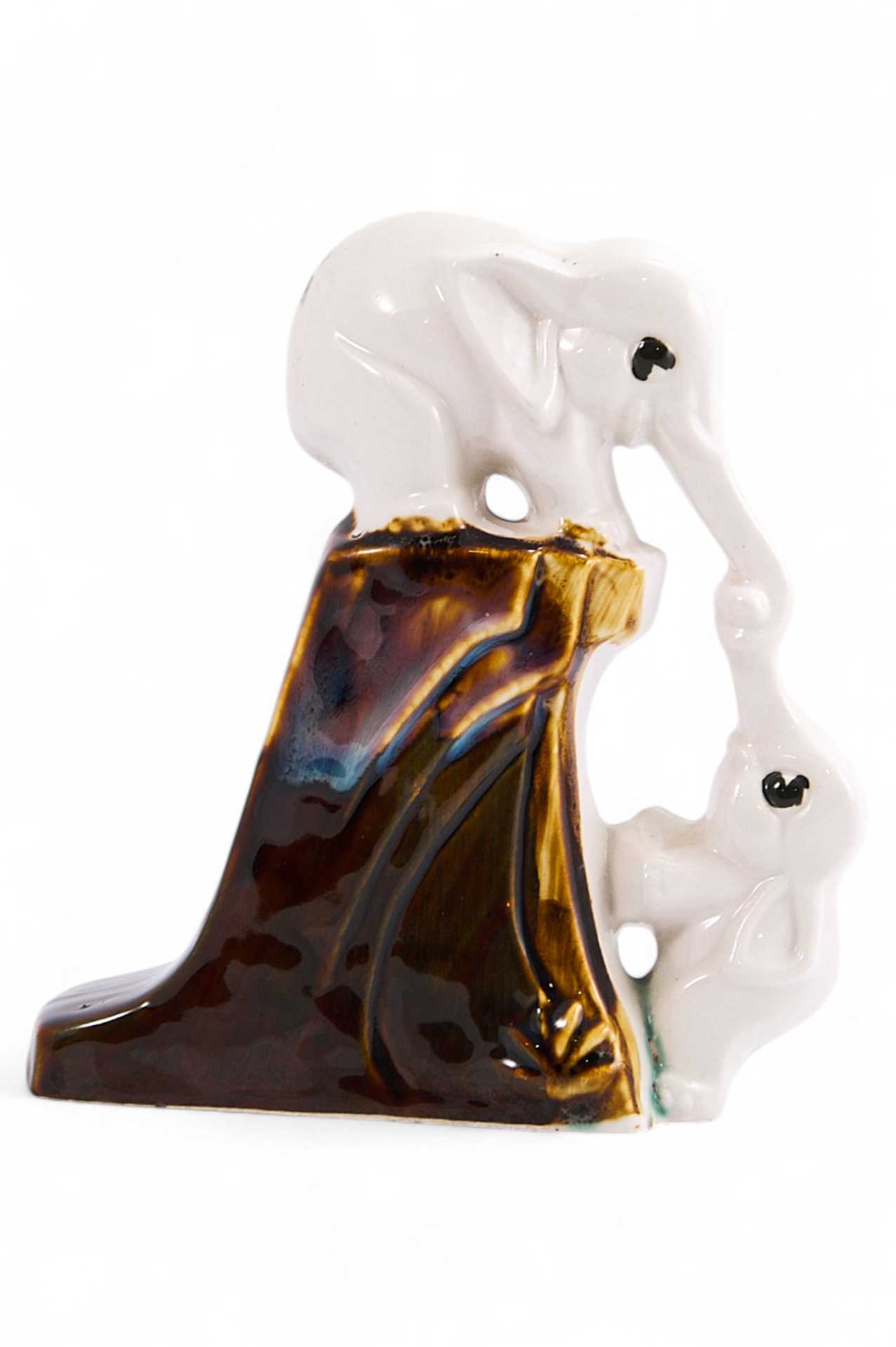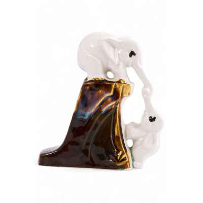 дружбы. Один из героев стоит на вершине уступа подняться хоботом второму слоненку. Статуэтка трогательностью, динамичностью композиции, цветовым сочетанием. Слоны выполнены анатомически верно, но вместе с тем в их характерах явно присутствует некоторая очеловеченность, что связанно именно с повествовательностью, басенной традицией демонстрируемой сцены. Кроме того, издавна на востоке белый слон считался символом удачи и благополучия, духовного знания и стабильности.