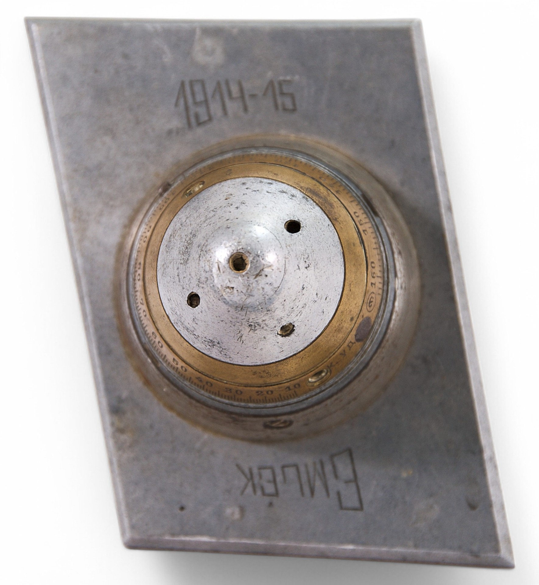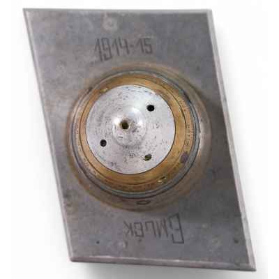 Сувенир - укрепленная на металлическую пластину головка от снаряда шрапнели с надписью по-венгерски «Ernlek»