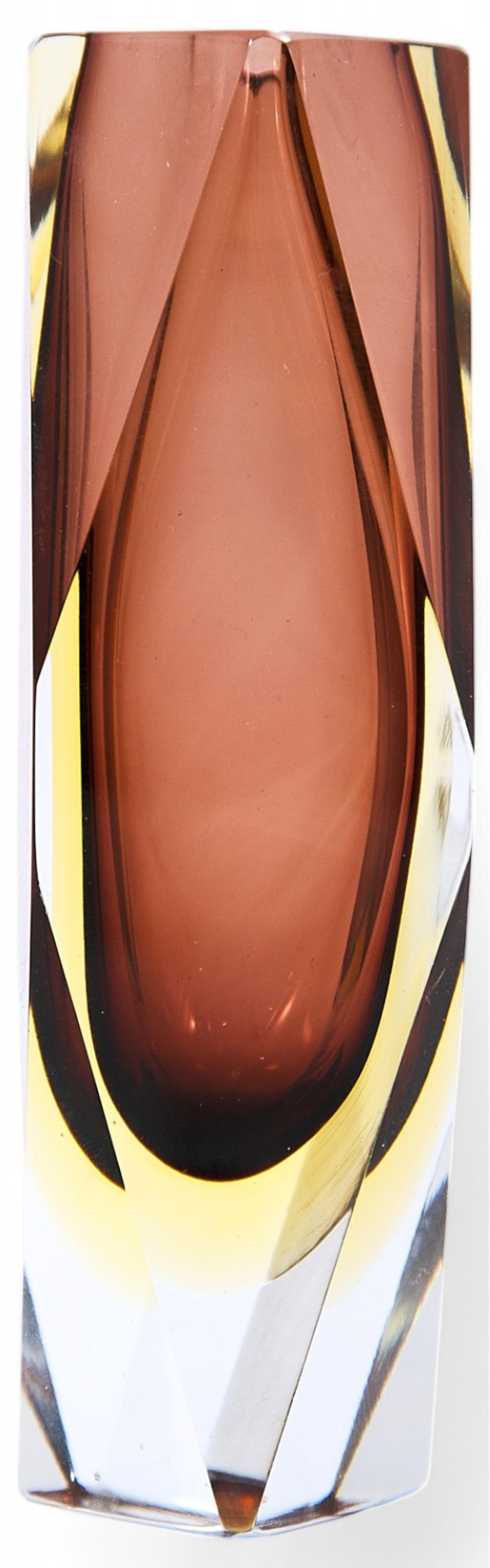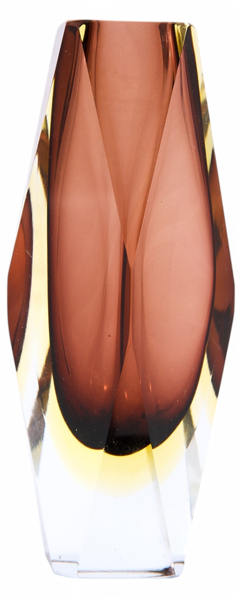 Ваза из бесцветного и цветного стекла. Поверхность вазы огранена. Огранка значительно усиливает явления преломления, отражения и дисперсии света, которые вызывают игру и блеск ограненного стекла. Так, в результате огранки ваза превращается в сверкающий самоцвет. По своим художественным признакам и качеству обработки материала ваза изготовлена в Мурано. Стеклоделие, как организованный промысел, зародилось в Венеции в VIII веке. В 1291 году городской совет решил вынести мастерские по производству украшений на остров Мурано, чтобы уберечь секреты мастеров от конкурентов и избавиться от пожаров, которые могли быть вызваны раскаленными горнами мастеров. Самым удобным местом для этого была признана группа островков в Венецианском заливе, объединенных в остров Мурано, он и стал идеальным местом для производства стекла с точки зрения контроля за ремесленниками и сохранением профессиональной тайны. С 1970-х годов муранское стекло по всему миру признается элитным товаром. Муранские стеклоделы смогли пережить немало исторических перипетий и экономических кризисов. Они сберегли большую часть старинных технологий, избежали и автоматизации производства в ходе промышленной революции. При этом современные стеклодувы широко используют и предметный дизайн, и авангардные формы.