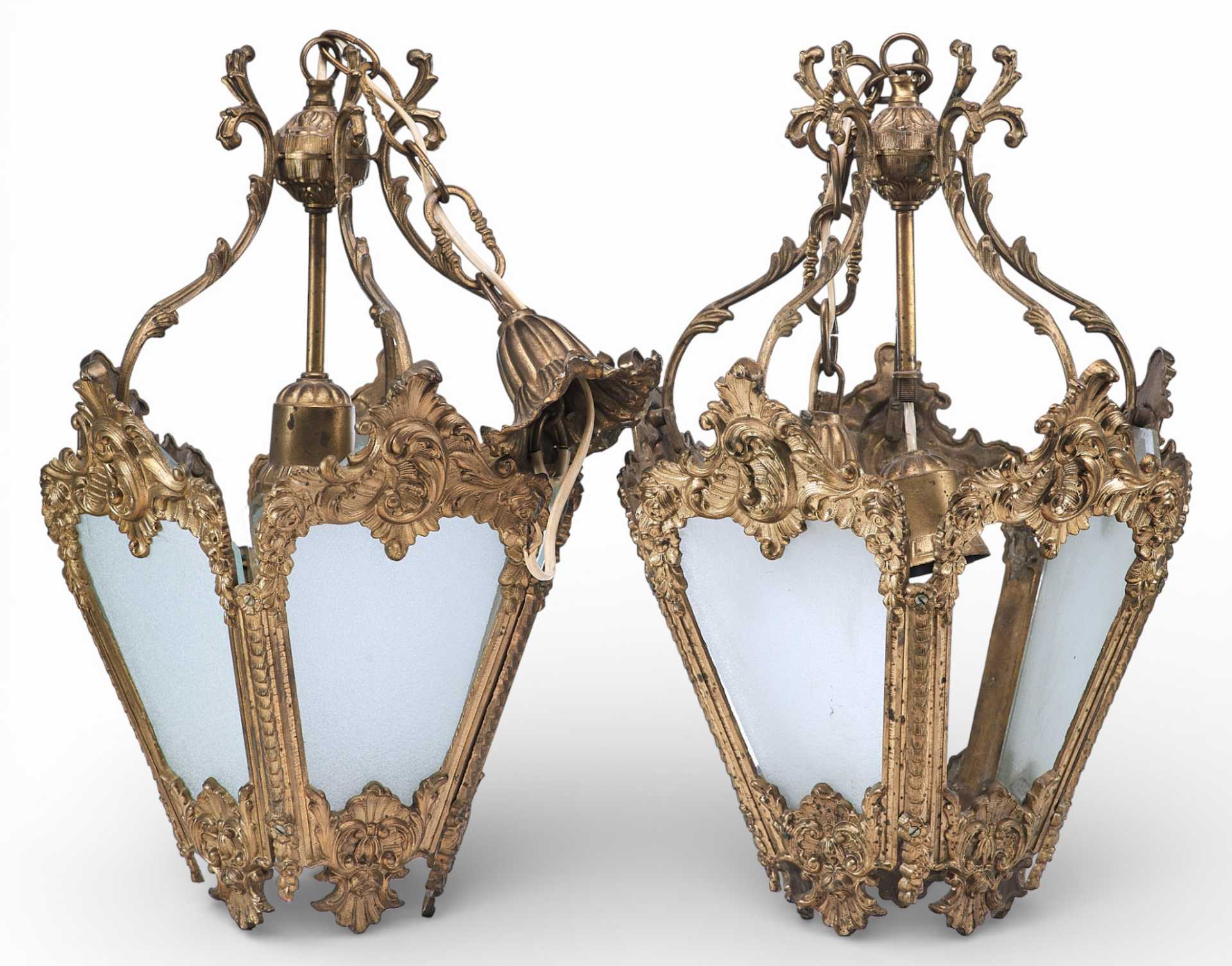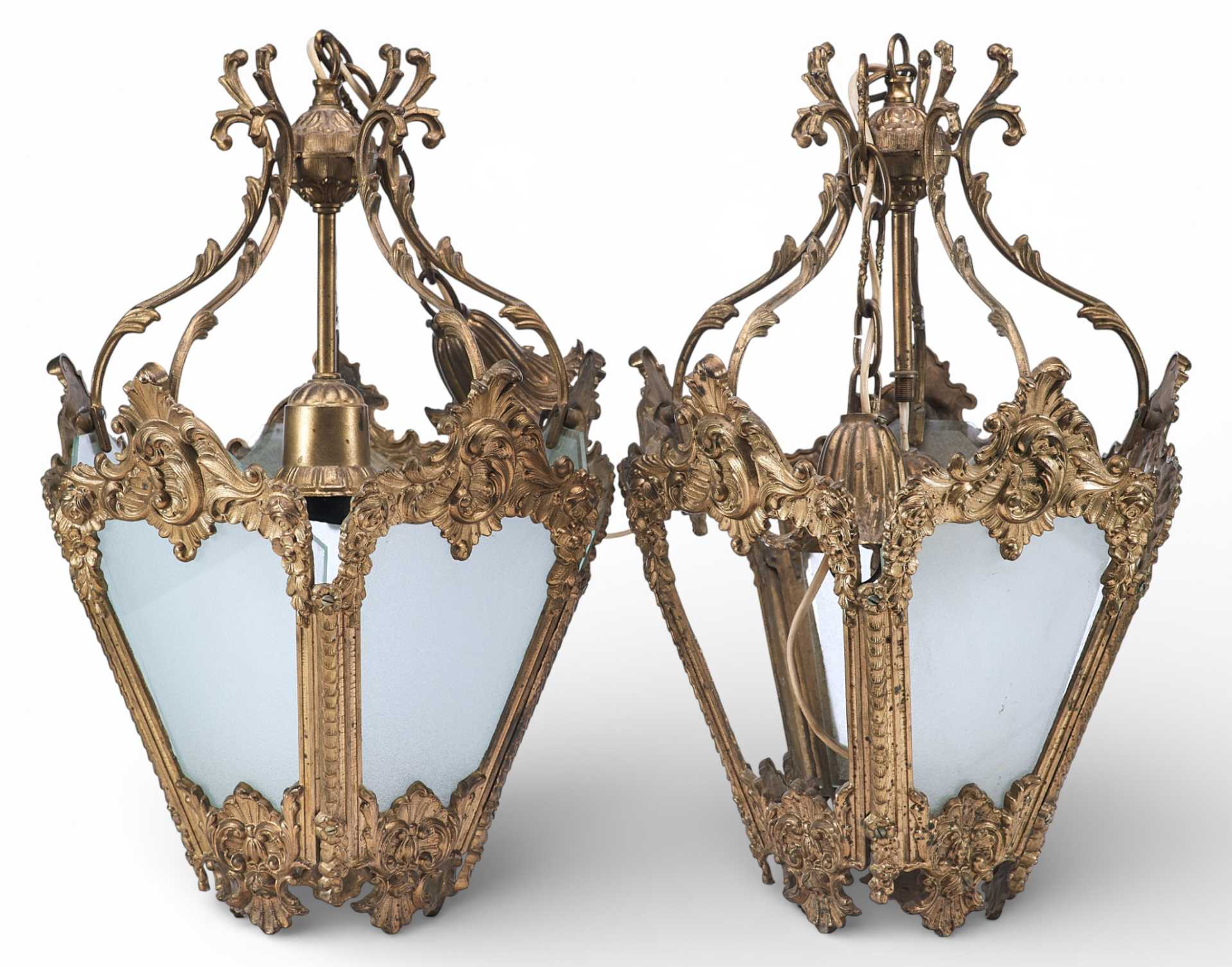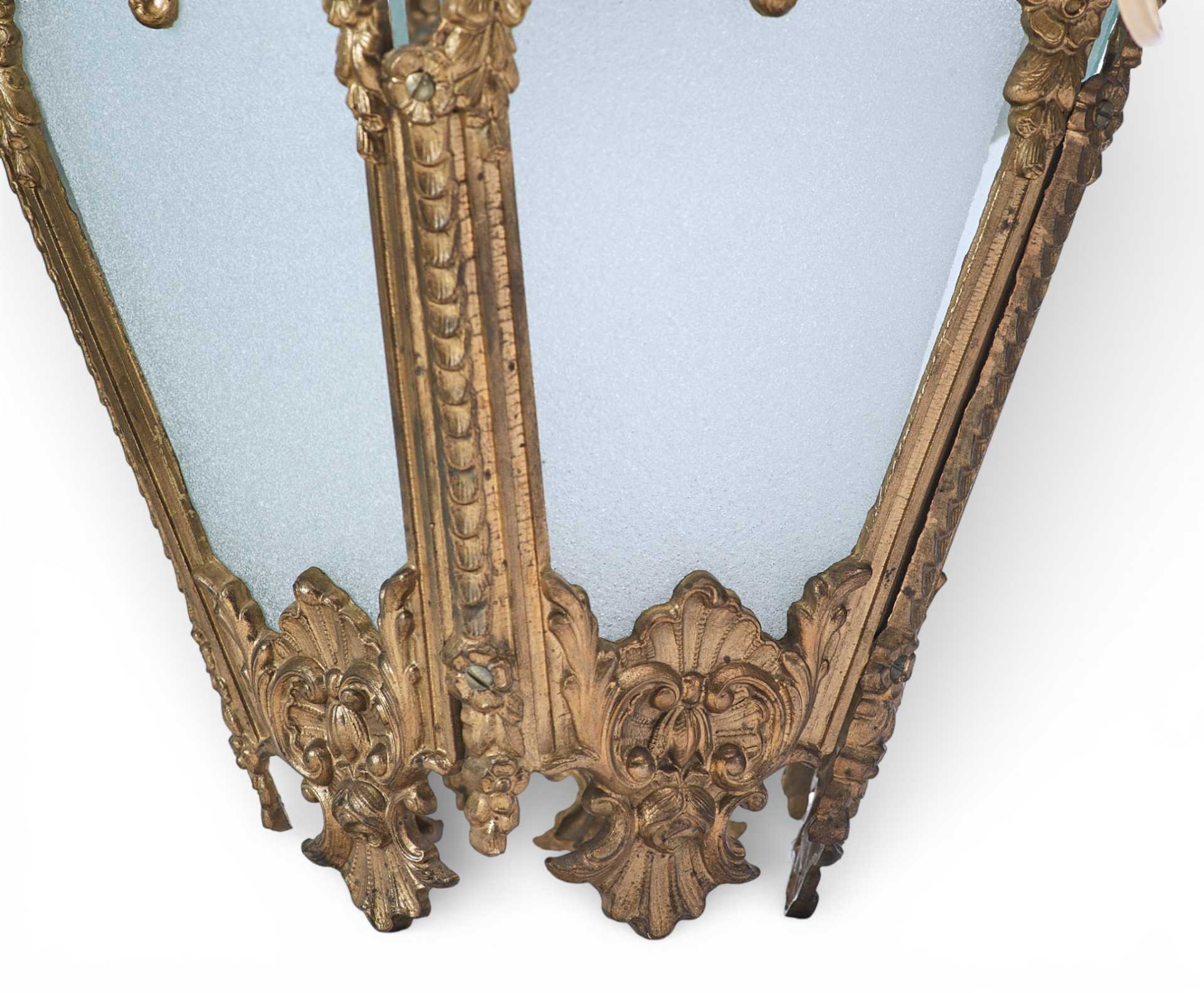 Бронзовые части светильника обильно украшены ажурными завитками-рокайлями, характерными для позднего варианта стиля «рококо» (третьего, распространенного в 1860-1870-е гг.). Фонарь — светильник (свечной, масляный, керосиновый, газовый, электрический), в котором огонь защищен со всех сторон от сквозняков или ветра стеклом (слюдой).